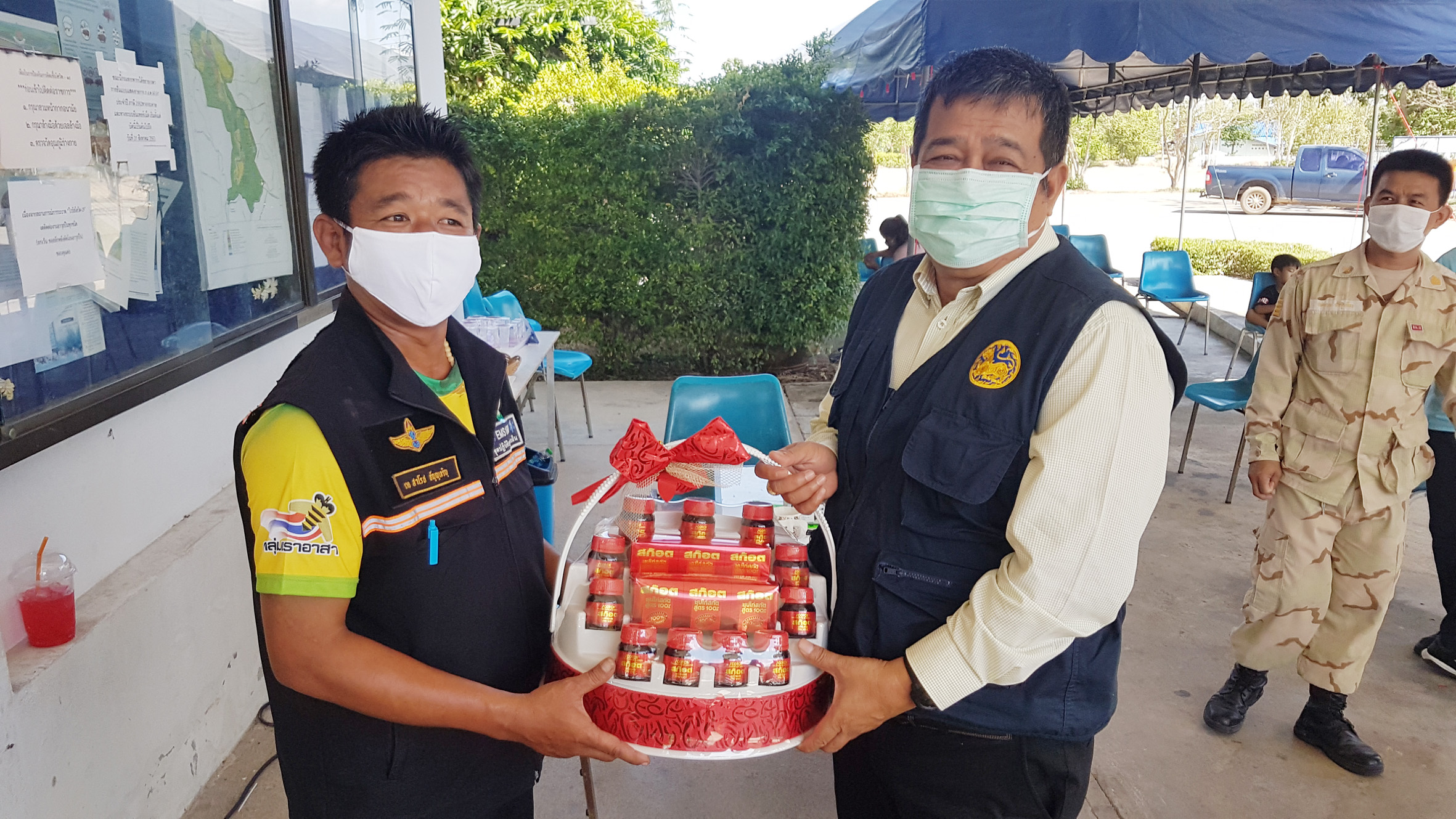 ทางด้านนายวัฒนา ยั่งยืน ปลัดจังหวัดสุพรรณบุรี และนายธนนท์ พรรพีภาส นายอำเภอเดิมบางนางบวช หลังเกิดเหตุได้มอบกระเช้าให้กำลังใจนายสาโรช ผู้บาดเจ็บ โดยนายวัฒนา ได้กล่าวว่าขอให้พี่น้องประชาชนให้ความร่วมมือกับเจ้าหน้าที่บ้านเมืองในการป้องกันการแพร่เชื้อ ไวรัสโควิด 19 การ์ดอย่าตกสำหรับเหตุการณ์ที่เกิดขึ้นครั้งนี้ความจริงเป็นการตั้งใจปฏิบัติหน้าที่ของเจ้าหน้าที่ตามคำสั่งของผู้บังคับบัญชาเพื่อที่จะให้ทุกคนปฏิบัติตามคำสั่งของทั้งของรัฐบาลและคำสั่งของจังหวัด เพราะฉะนั้นเจ้าพนักงานเทศบาลเขาพระก็ต้องกวดขันในการที่จะช่วยดูแล เราไม่อยากให้เกิดขึ้นเราไม่อยากให้เกิดการปะทะกับคนเหล่านี้เรามีชุดเคลื่อนที่เร็วที่จะเข้าไปจัดการและเหตุการณ์ครั้งนี้เจ้าหน้าที่ก็ระมัดระวังตัวไม่ได้ดำเนินการอะไรที่รุนแรงอาจจะมีข้อข้องใจที่อาจจะถูกดำเนินการมาก่อนก็เลยเกิดเหตุการณ์นี้ขึ้นมา ที่ผ่านมาทุกคนก็เดือดร้อนกันอยู่แล้วเราเจอครั้งแรกเราก็จะตักเตือนแต่เมื่อตักเตือนแล้วไม่เชื่อฟังก็ต้องดำเนินการตามกฎหมาย พรก.ฉุกเฉิน