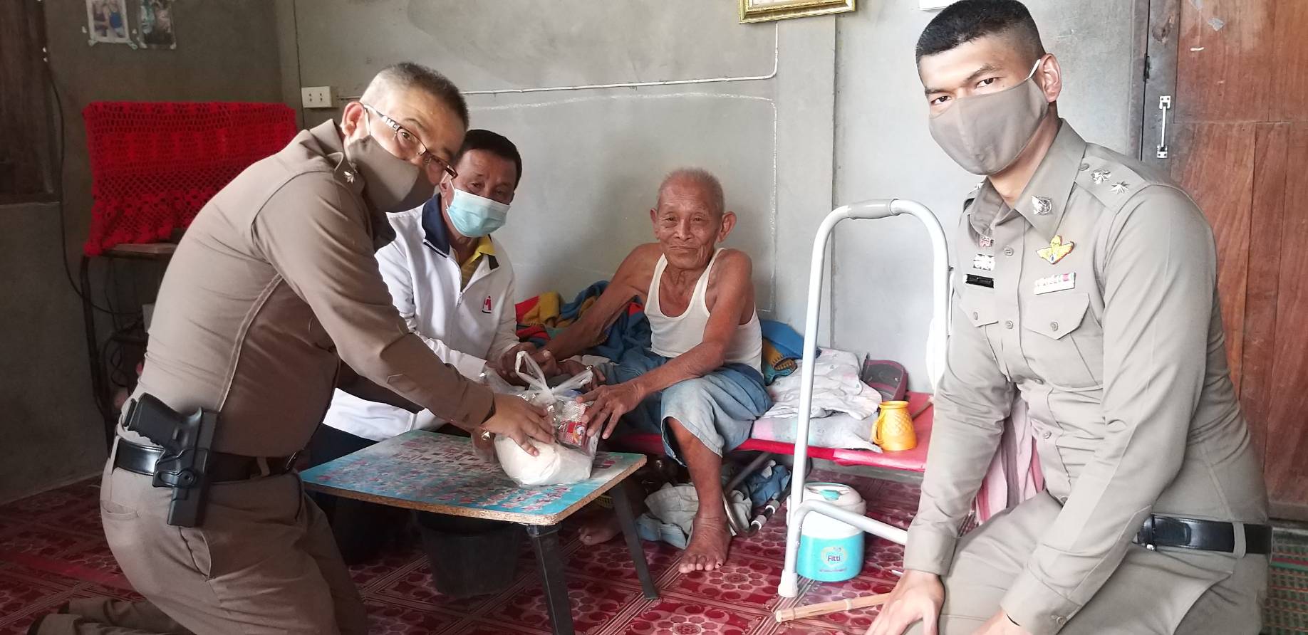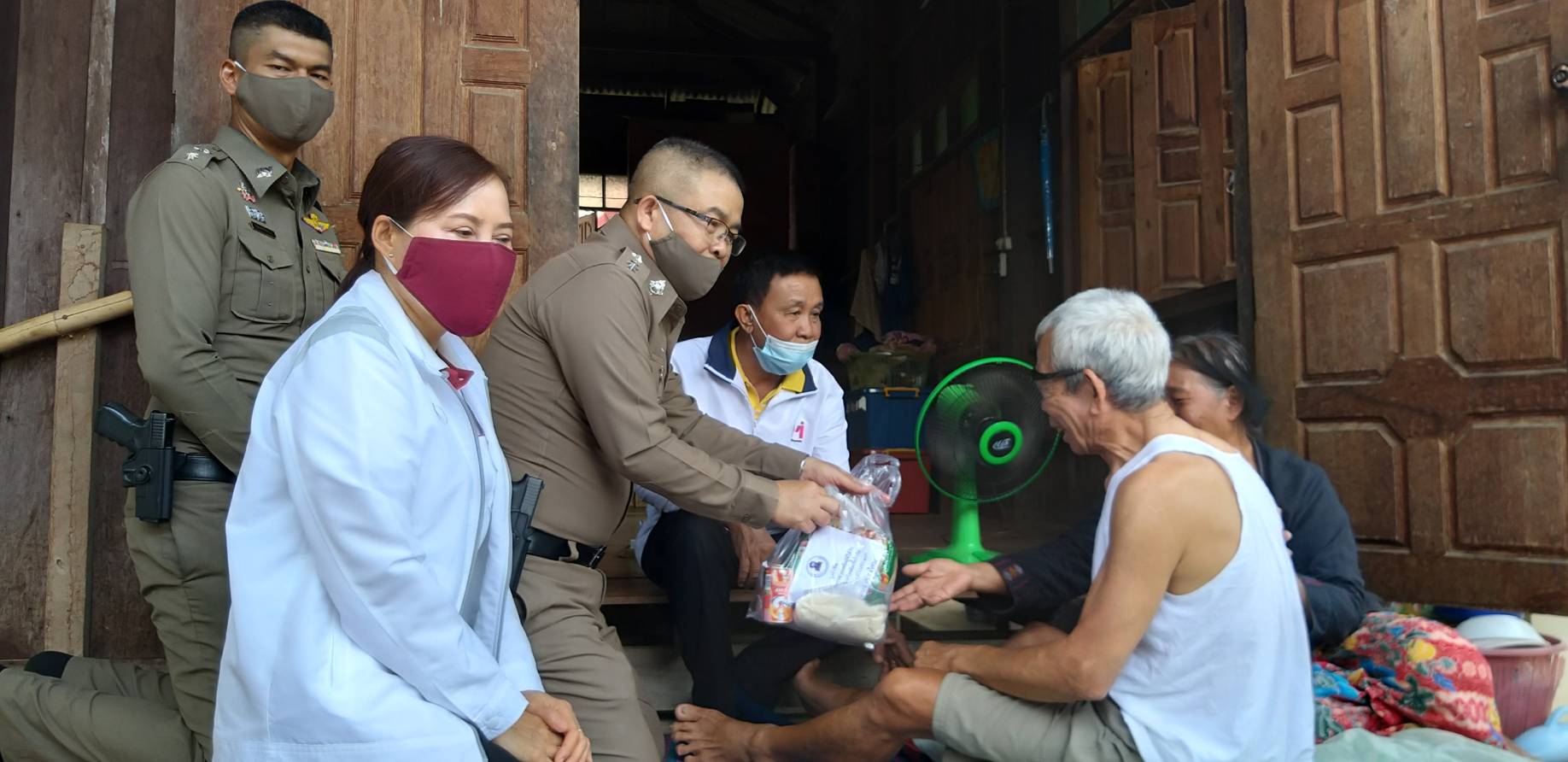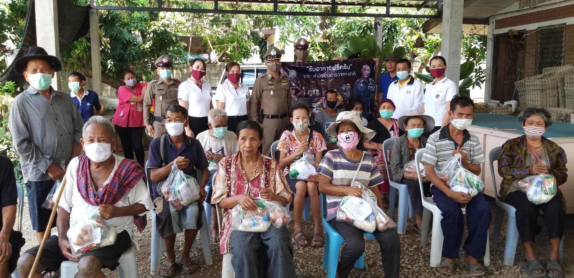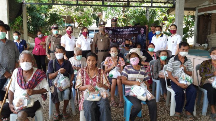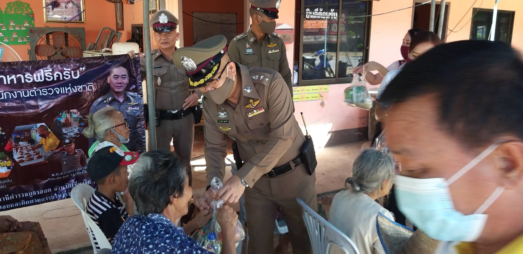 ตำรวจร่วมผู้ใจบุญแจกอาหารให้ชาวบ้าน