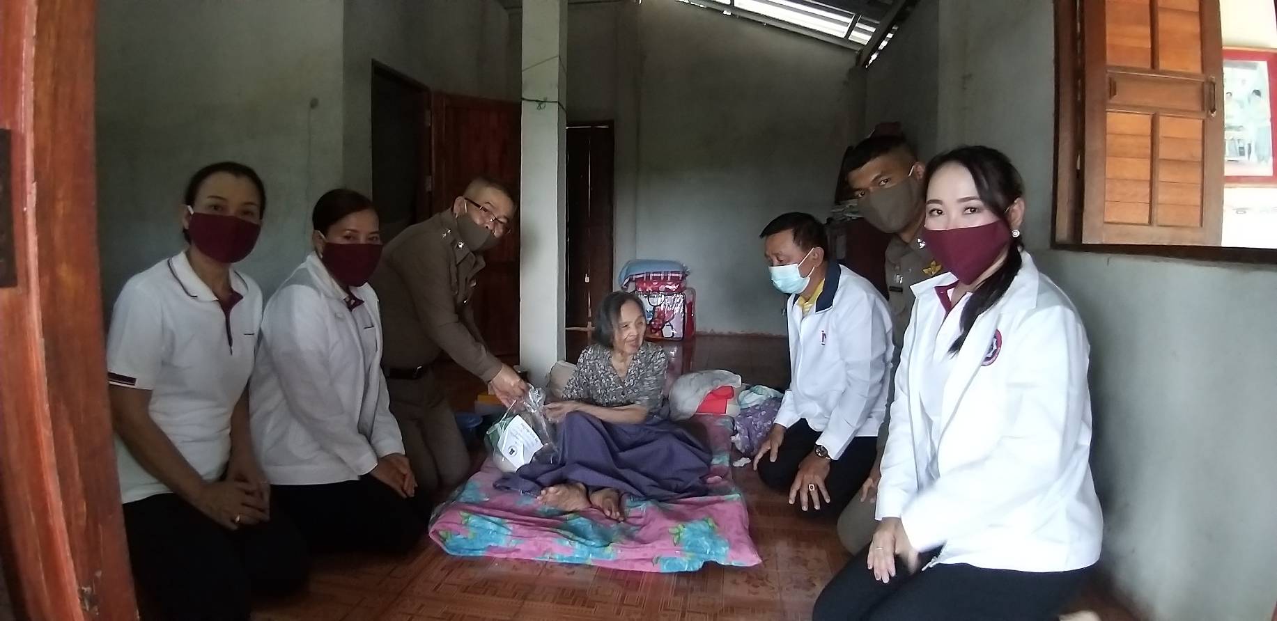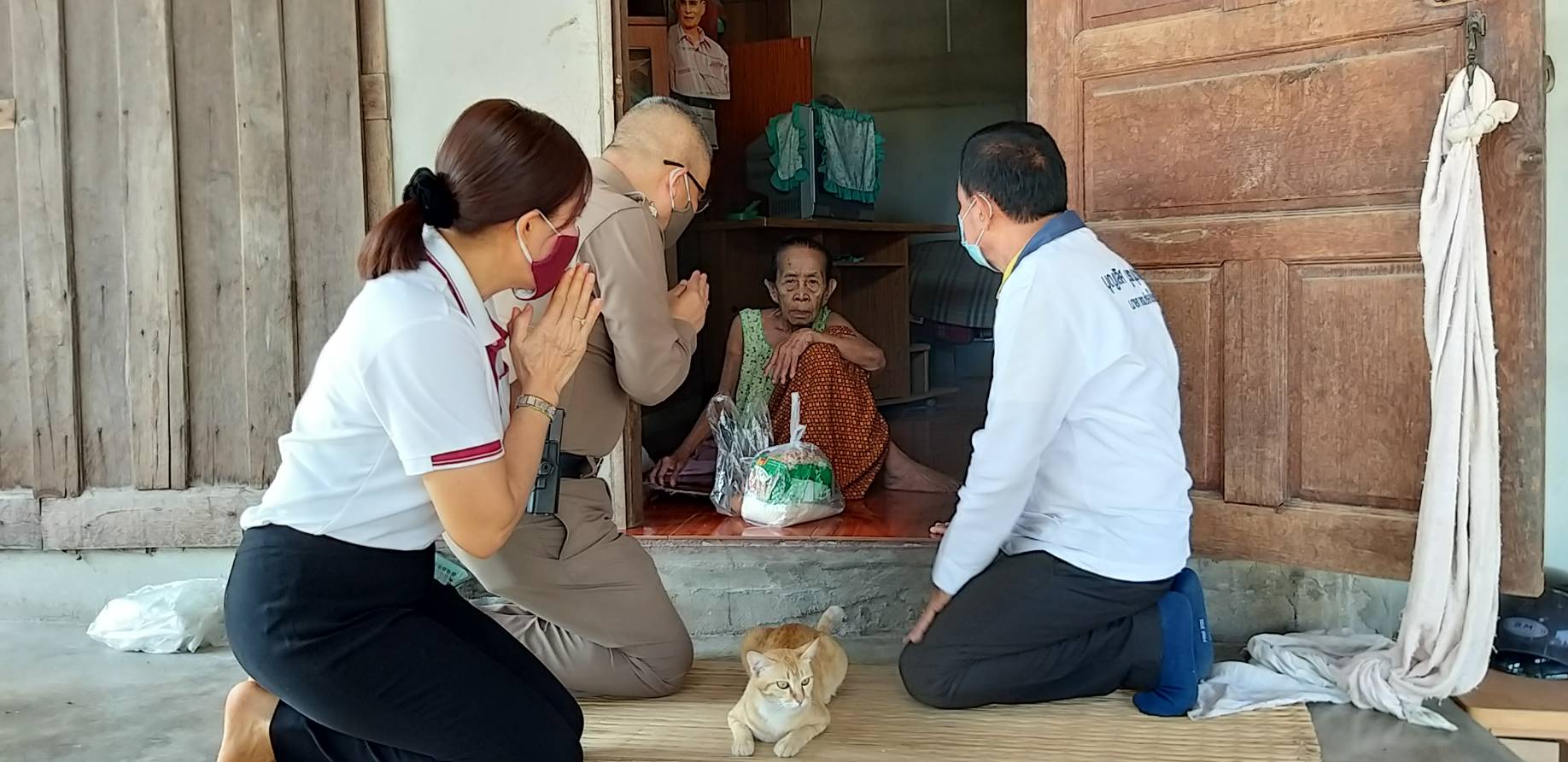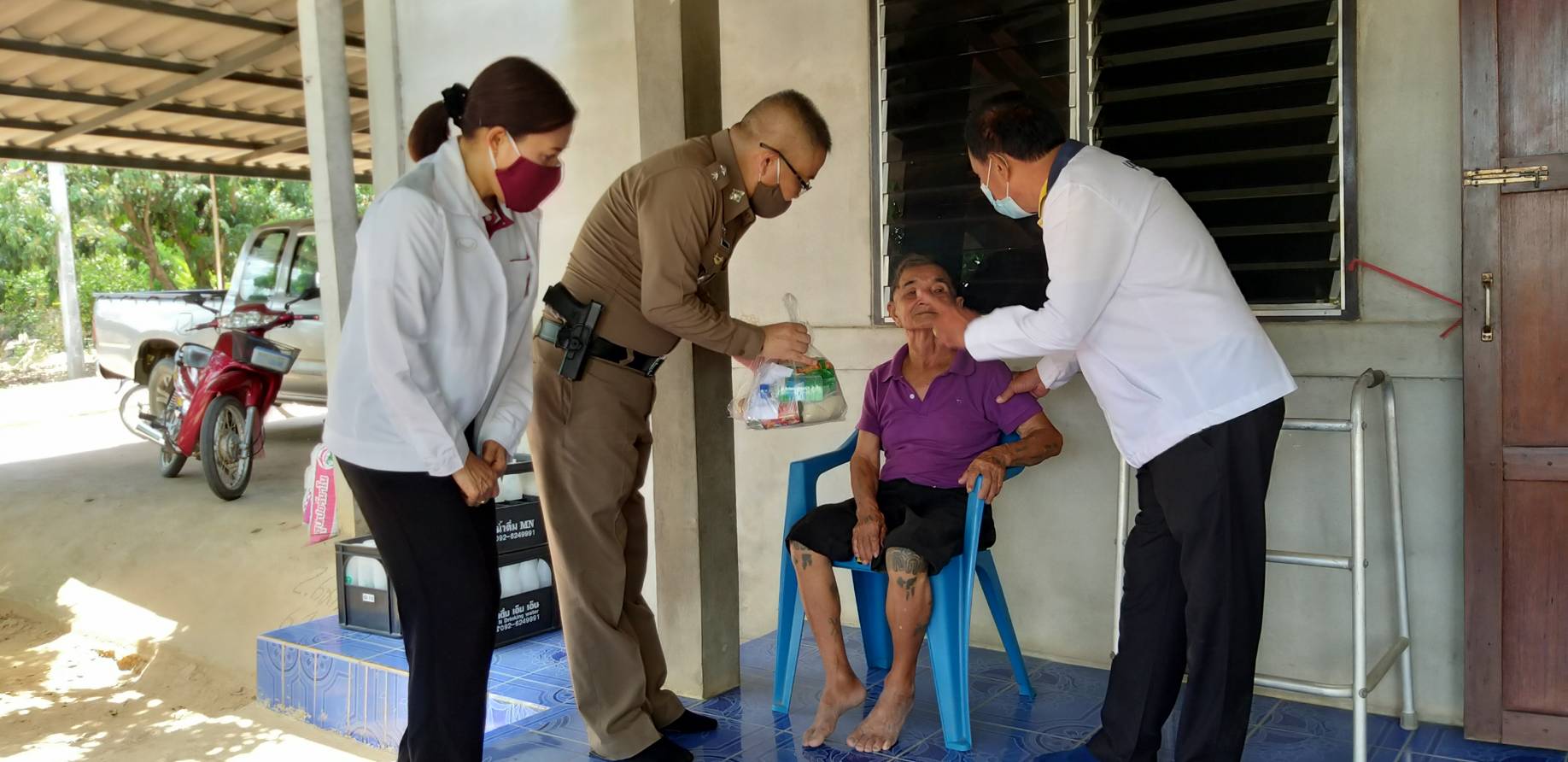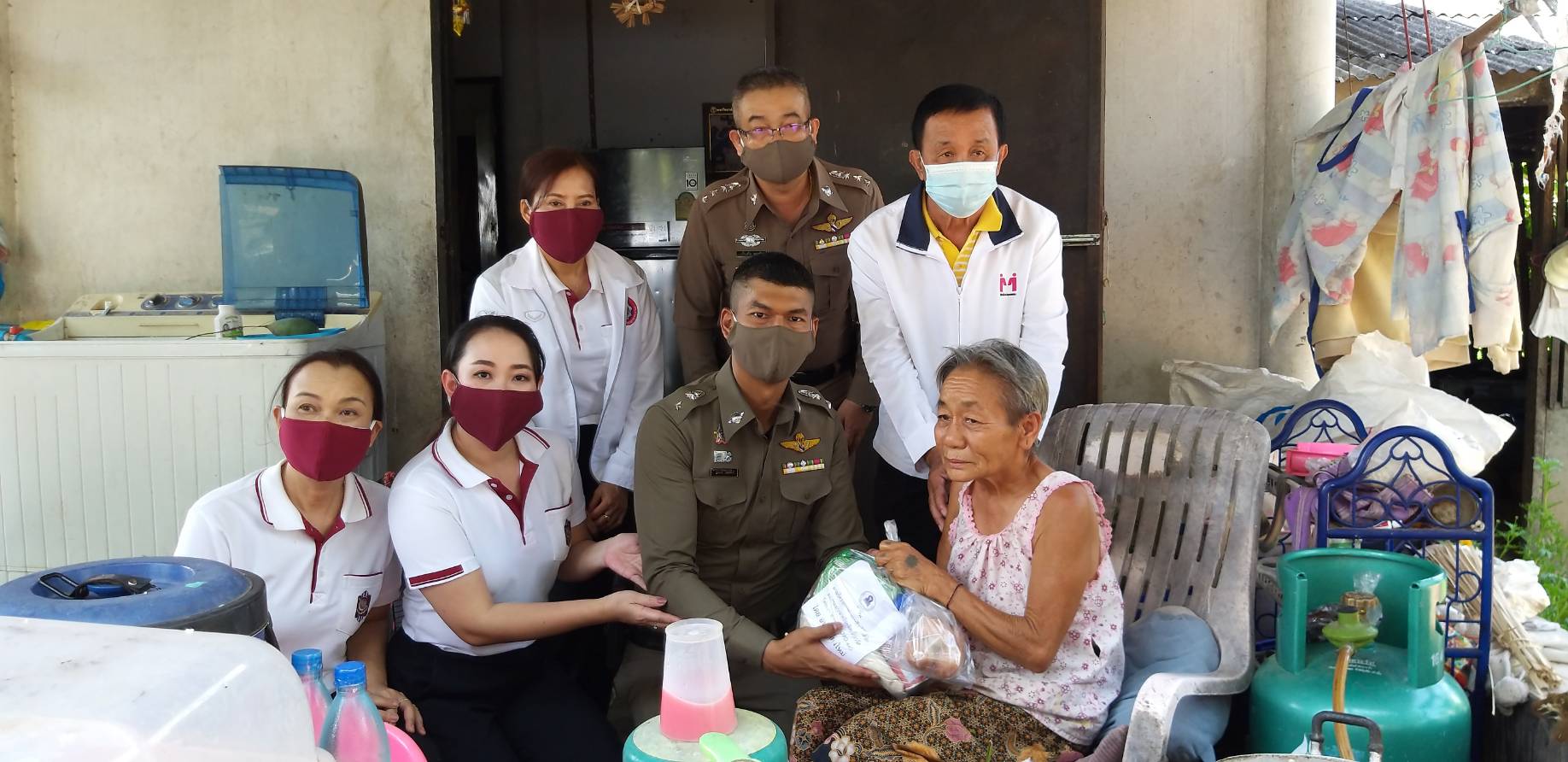 ตำรวจร่วมผู้ใจบุญแจกอาหารให้ชาวบ้าน