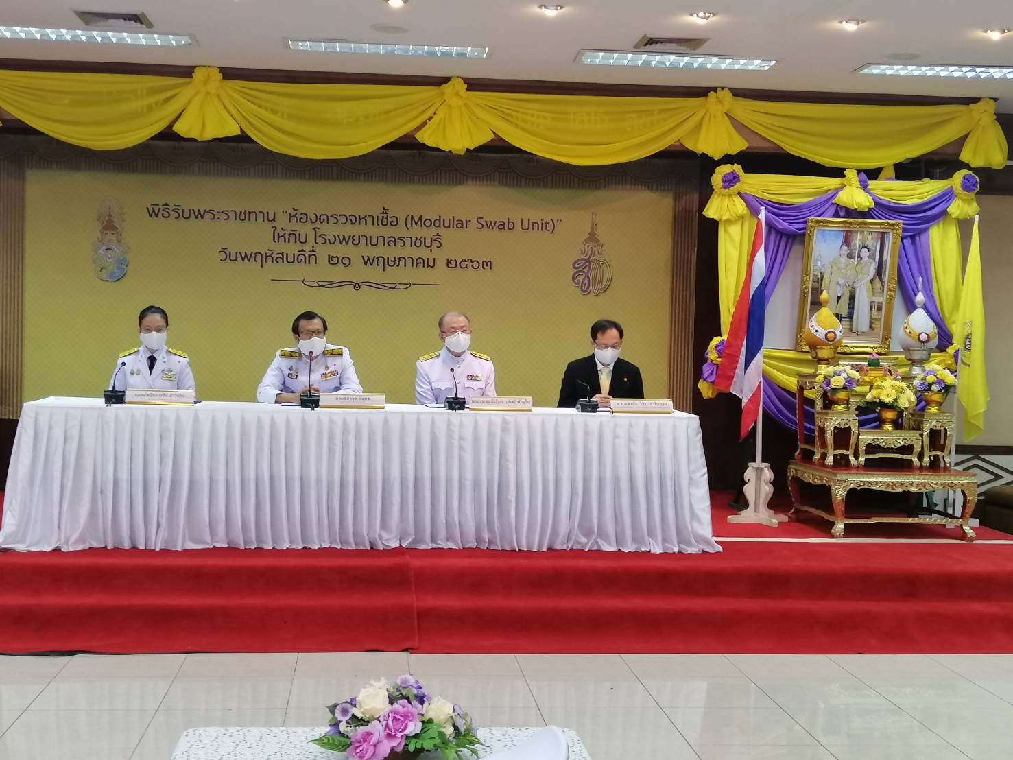 พระบาทสมเด็จพระวชิรเกล้าเจ้าอยู่หัว สมเด็จพระนางเจ้าสุทิดา พระบรมราชินี ทรงพระราชทานทรัพย์ส่วนพระองค์สนับสนุนอุปกรณ์ทางการแพทย์แก่โรงพยาบาลต่างๆทั่วประเทศ และ พระราชทาน”ห้องตรวจหาเชื้อ ModularSwadUnit” ให้โรงพยาบาลราชบุรี โดยมี นายชยาวุธ จันทร ผวจ.ราชบุรี เป็นประธานในพิธีรับพระราชทานฯ ซึ่งมีนายแพทย์สินชัย ตันติรัตนานนท์ นายแพทย์สาธารณสุขจังหวัดราชบุรี พร้อมด้วยนายแสงชัย วิริยะอำไพวงศ์ ประธานเจ้าหน้าที่ปฎิบัติการธุรกิจกระดาษบรรจุภัณฑ์ ธุรกิจแพคเกจจิ้งในเอสซีจี ร่วมแถลงรายละเอียดการรับพระราขทานห้องตรวจเชื้อModularSwadUnit