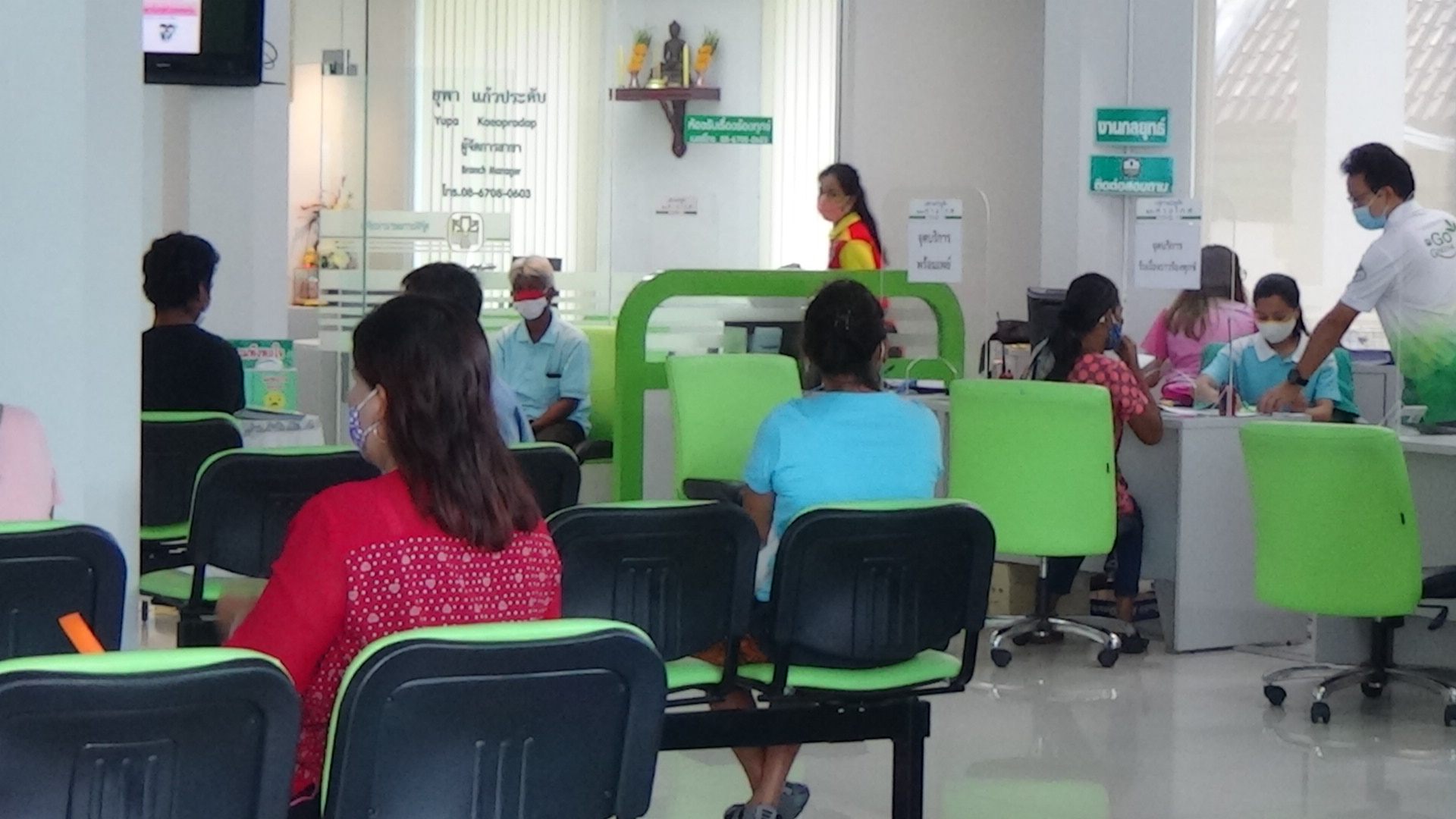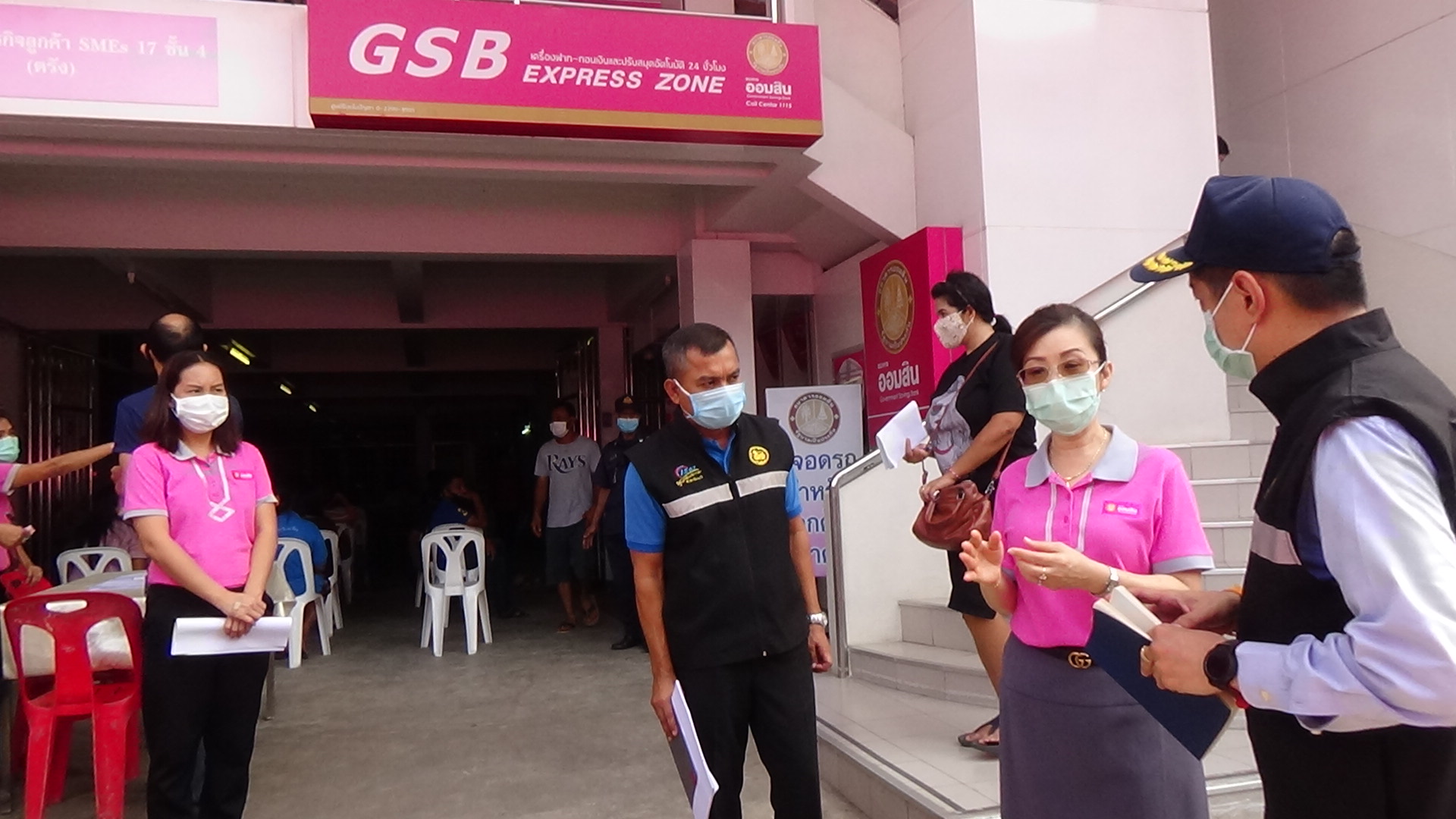 ได้มีการจัดเตรียมสถานที่ให้ประชาชนได้นั่งรอคิว และมีการแจกน้ำดื่มพร้อมขนม ให้กับประชาชนที่มารอบริการ ที่ธนาคารออมสินมีประชาชนมาใช้บริการ ประมาณ 500 คน และเดินทางไปที่ธนาคารเพื่อการเกษตรและสหกรณ์การเกษตร สาขาตรัง ซึ่งเป็นที่สุดท้ายของการลงพื้นที่ตรวจนั้น พบว่ามีประชาชนมาใช้บริการประมาณ 600 คน โดยทางธนาคารได้จัดสถานที่ เก้าอี้ให้ประชาชนได้นั่งรอ การแจกบัตรคิวให้ประชาชน รอเรียกตามคิว เพื่อความสะดวก