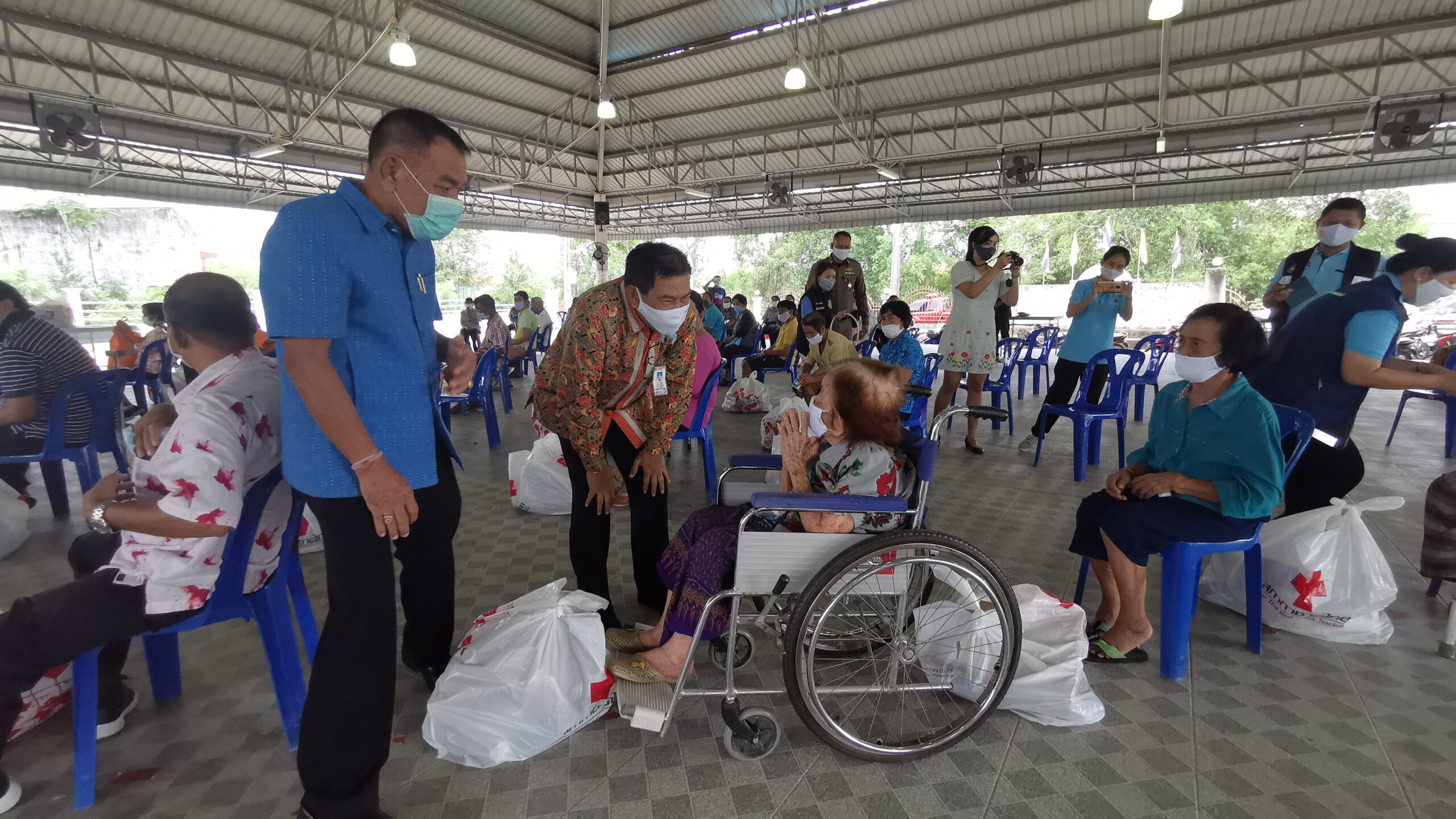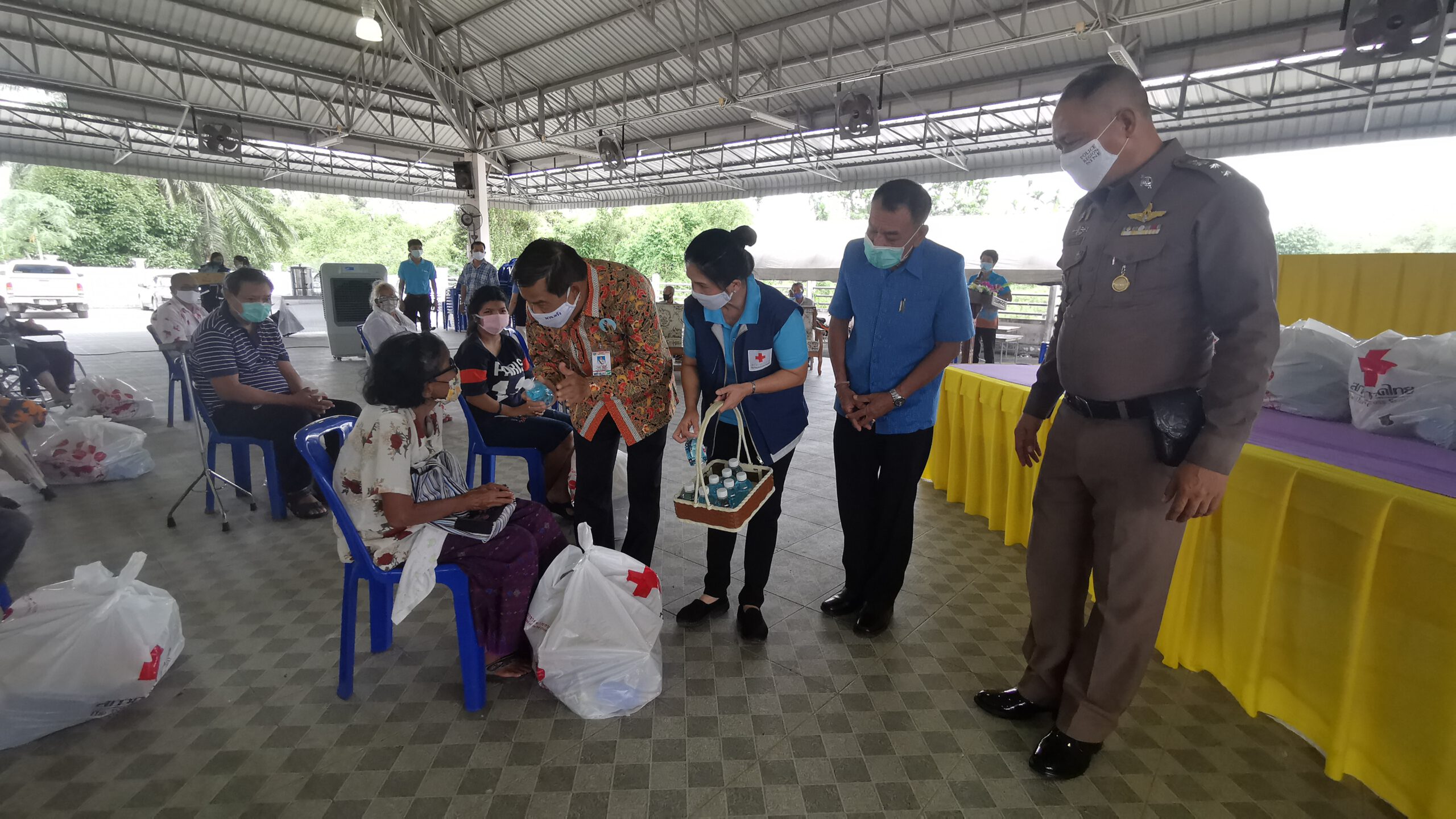 ผู้ว่าราชการจังหวัดตรัง พร้อมด้วยนายกเหล่ากาชาดจังหวัดตรัง มอบถุงยังชีพเครื่องอุปโภคบริโภคให้แก่ผู้ยากไร้ที่ได้รับผลกระทบโควิด-19 เพื่อเป็นการช่วยเหลือ บรรเทาความเดือดร้อน และลดค่าใช้จ่ายในครัวเรือน