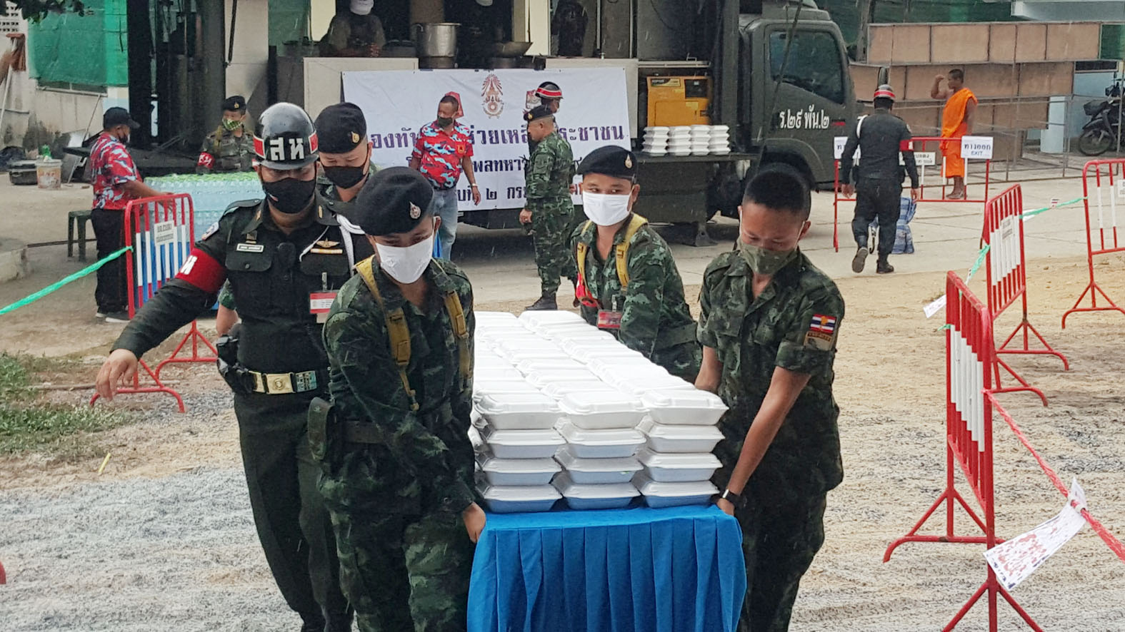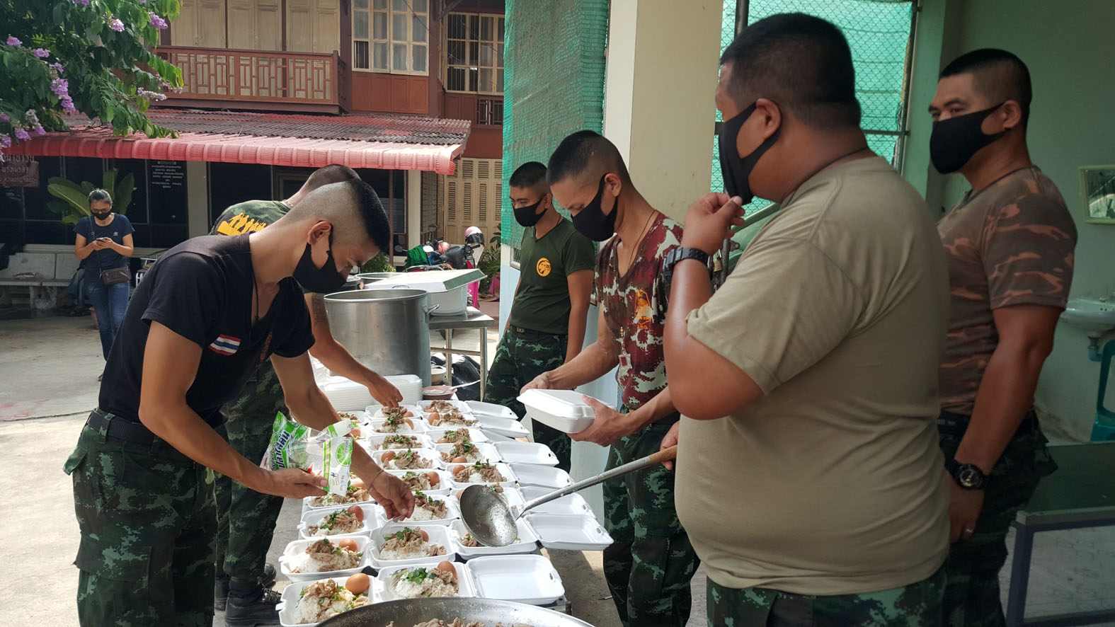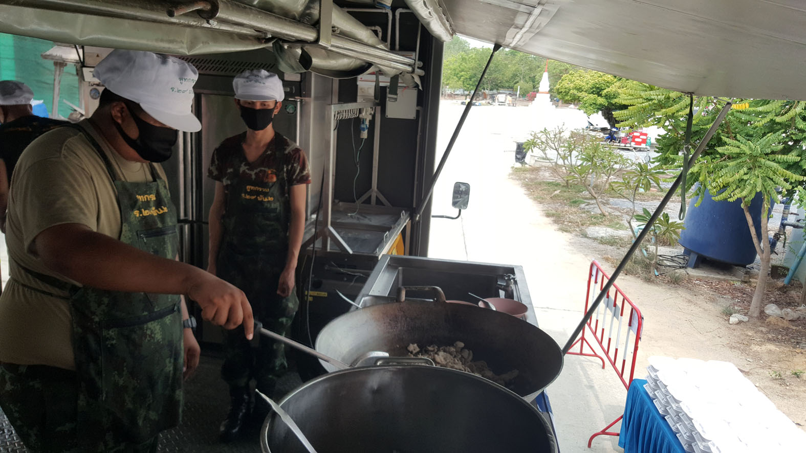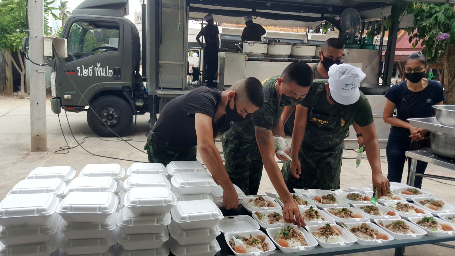 สุพรรณบุรี ทหารพล.ร.9มทบ.17ร่วมวัดบางปลาหมอทำข้าว500กล่องแจกชาวบ้าน