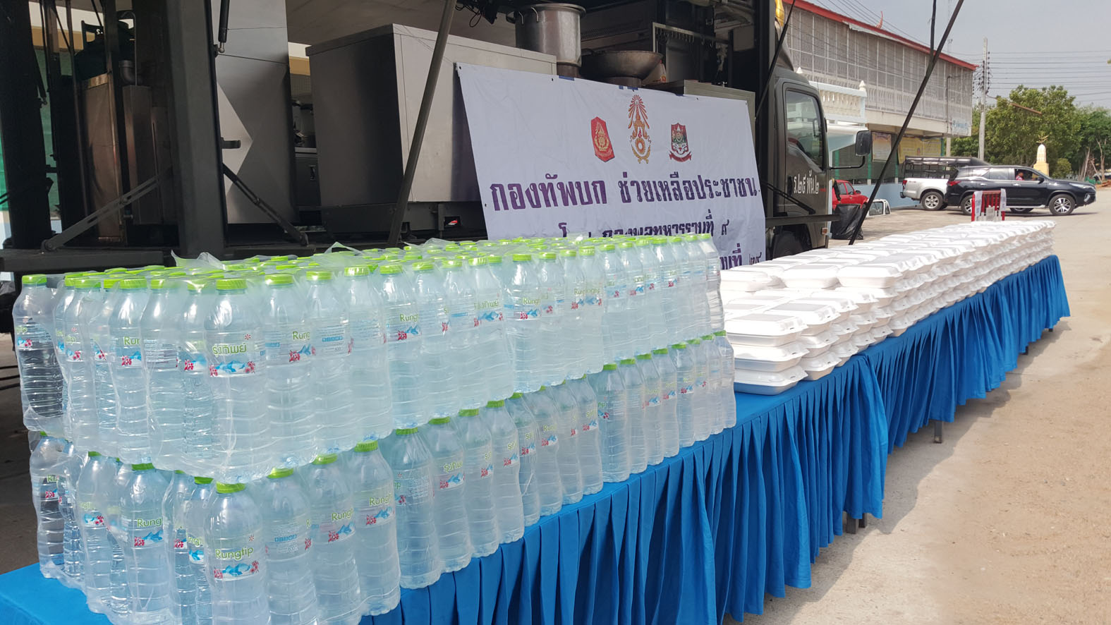 ที่ วัดบางปลาหมอ ต.ดอนกำยาน อ.เมือง จ.สุพรุรณบุรี พล.ต.วสุ เจียมสุข ผบ.มทบ.17 พล.ต.ฐกัด หลอดศิริ ผบ.พล.ร.9 มอบหมายให้ พันเอก กุญช์ภัสร์ หาญสมบูรณ์ รองเสนาธิการมณฑลทหารบกที่ 17 นำกำลังชุดปฏิบัติการจังหวัดสุพรรณบุรี กำลังเจ้าหน้าที่ทหารจากกองพันทหารราบที่ 2 กรมทหารราบที่ 29 ร่วมกับพระปลัดธนิตย์ จนฺทิโก (หลวงพี่เบียร์) เจ้าอาวาสวัดบางปลาหมอ รวมทั้งประชาชนผู้มีจิตศรัทธา จัดรถครัวสนาม มาประกอบอาหารกล่องจำนวน 500 กล่องพร้อมน้ำดื่มเพื่อแจกให้กับประชาชน พร้อมกันนี้ยังได้บริการตัดผมให้กับพี่น้องประชาชนฟรี