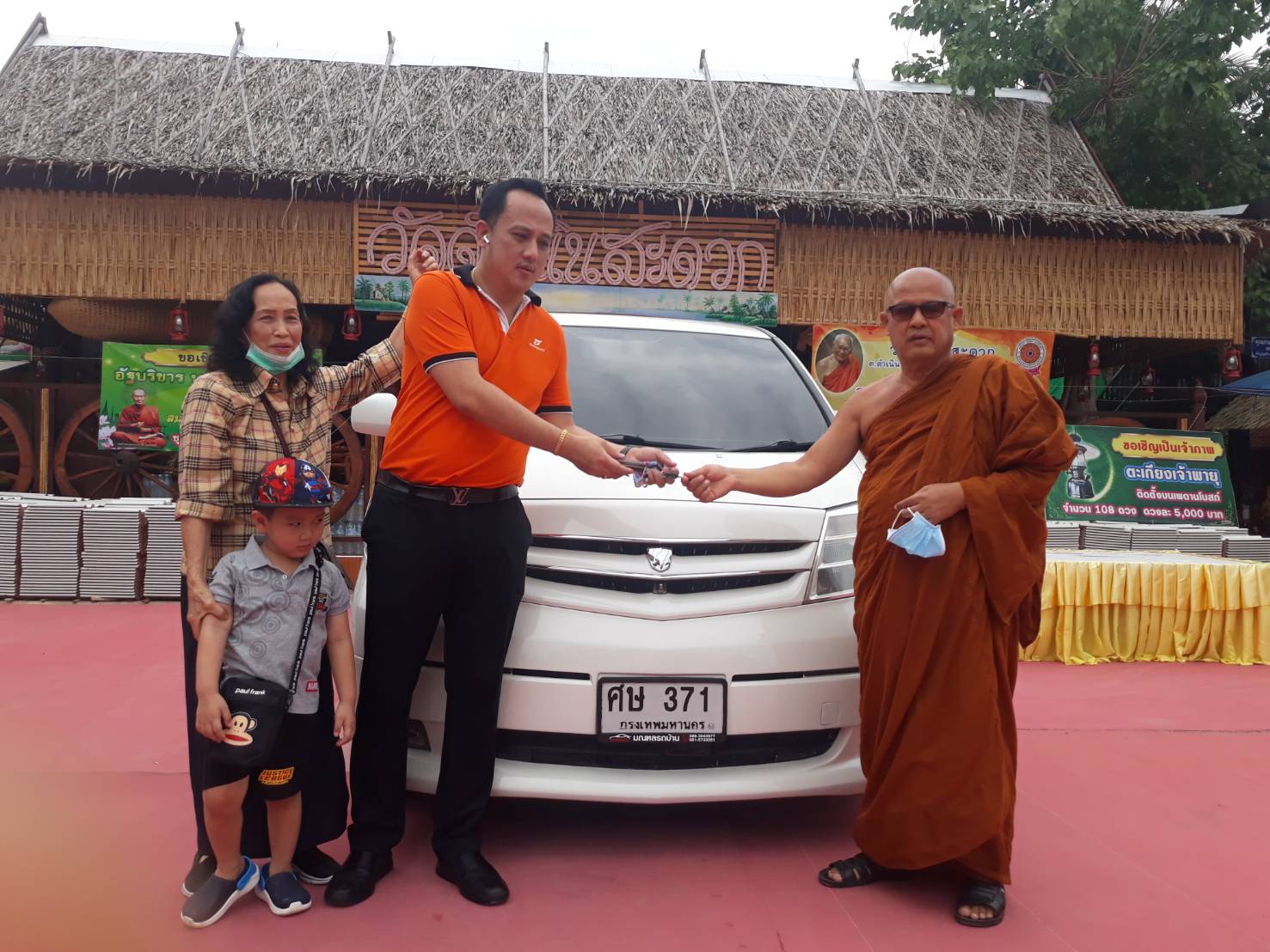 โดยคณะของคุณแม่อรพรรณ แซ่ลิ้ม และนายณัฑพล (แบงค์) พูลทองดีวัฒนา ผู้จัดการ.ธนาคารธชาติ สาขาดำเนินสดวก พร้อมครอบครัว ร่วมเดินทางมามอบรถยนต์ในวันนี้ ที่วัดดำเนินสดวก ซึ่งมีศรัทธาในตัวของพระวสันต์ พระอาจารย์เล็ก เจ้าอาวาสวัดดำเนิน อยากให้ท่านมีรถยนต์ เอาไว้ใช้ไปทำธุระได้อย่างสดวก เพราะเห็นว่าพระอาจารย์ ท่านเป็นพระที่ทำงานทุ่มใจให้กับพุทธศาสนาและปฎิบัติตนเป็นกันเองกับทุกคน ไม่ว่าจะอยากดีมีเงิน ท่านให้การต้อนรับเหมือนกันหมด และพูดจาตรงไปตรงมา อย่างนี้ที่ครอบครัวเกิดความศรัทราจึงได้นำรถมาถวายให้ใช้งานในวันนี้ และกล่าวปาวนาไว้ว่า หากท่านเจ้าอาวาสต้องการอะไร ก็ขอให้แจ้งมายังครอบครัวนี้ยินดีที่จะถวายให้สำหรับ เจ้าอาวาสได้กล่าวให้ญาติโยมได้ทราบว่า วันนี้ป็นวันคล้ายวันเกิดของท่านด้วยสิ่งที่ท่านได้ทำบุญไปในวันนี้ขอแผ่กุศลให้แก่ทุกท่านด้วยเทิอญ หลังจากนั้นท่านก็ออกเดินทางไปแจกของต่อจนครบ100ครัวเรือน