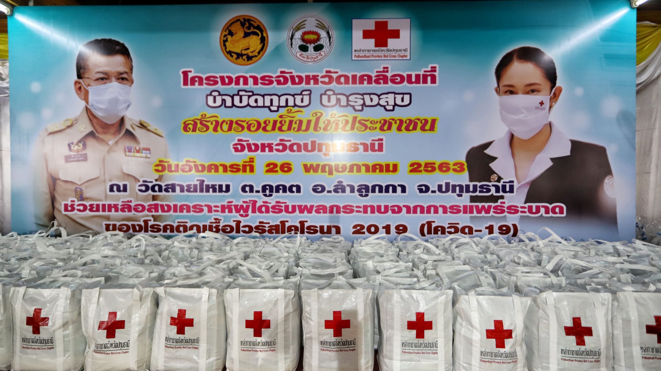 โดยมีหน่วยงานภาครัฐในจังหวัดและในพื้นที่ออกให้บริการประชาชนถึงตำบล เพื่อเป็นการช่วยเหลือ บรรเทา และแบ่งเบาภาระของประชาชนและ รองผู้ว่าราชการจังหวัดปทุมธานี นายกเหล่ากาชาดจังหวัดปทุมธานี หัวหน้าส่วนราชการประจำจังหวัด มอบเงินช่วยเหลือครอบครัวที่ประสบปัญหาความเดือดร้อน พร้อมมอบเครื่องอุปโภคบริโภคให้แก่ประชาชนในพื้นที่อำเภอลำลูกกา จังหวัดปทุมธานีทั้งนี้พระครูโสภณภัทรเวทย์ ดร.( พระอาจารย์อ๊อด )เจ้าอาวาสวัดสายไหม ได้แจกวัตถุมงคลผ้ายันต์กันโควิด19 ให้ประชาชนเอาไว้เป็นเครื่องยึดเหนี่ยวทางใจเพื่อสร้างขวัญกำลังใจ เพื่อเตือนสติ ไม่ให้ตื่นตระหนกจนเกินเหตุในสถานการณ์การแพร่ระบาดของโรคติดเชื้อไวรัสโคโรนา 2019