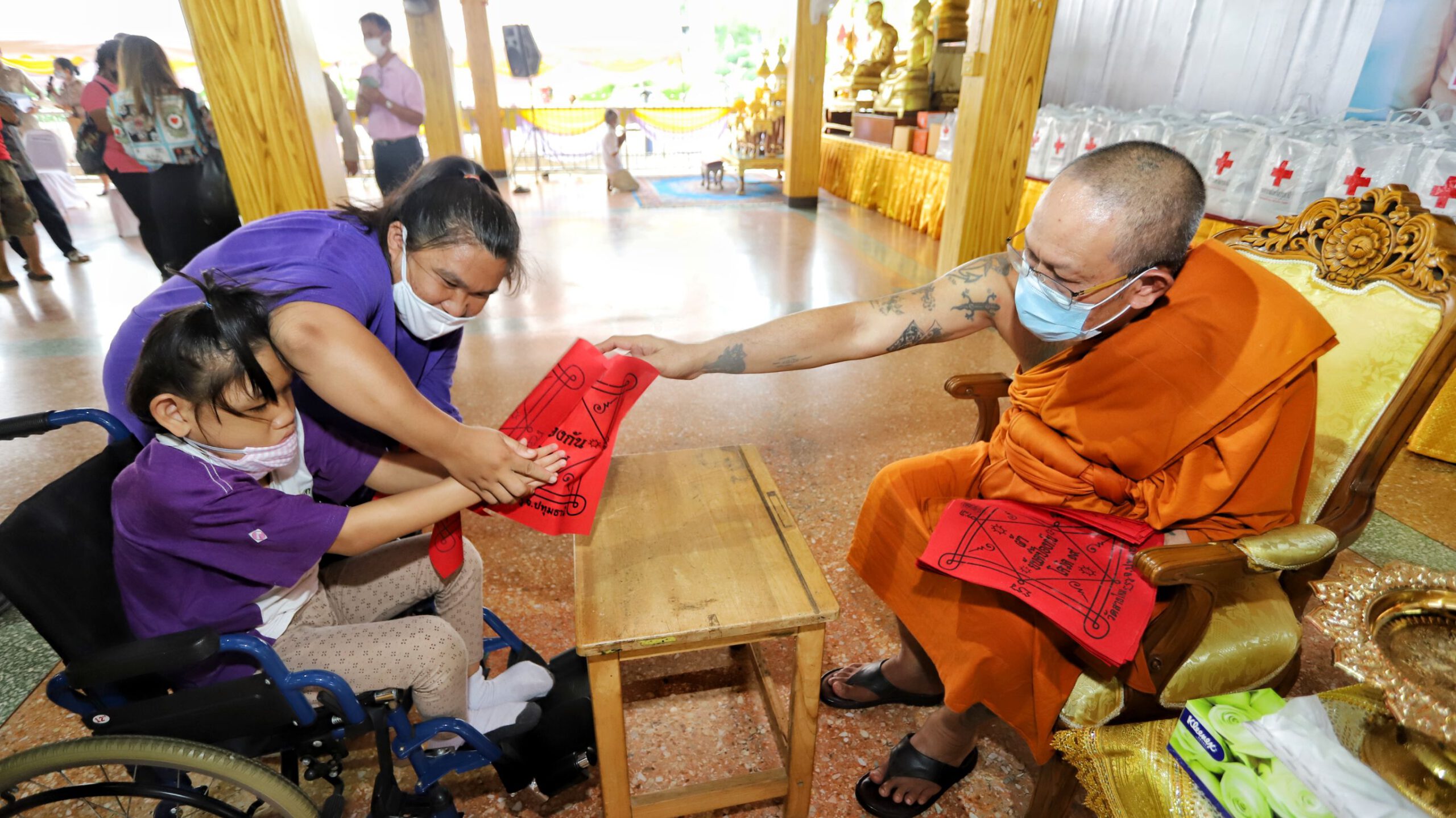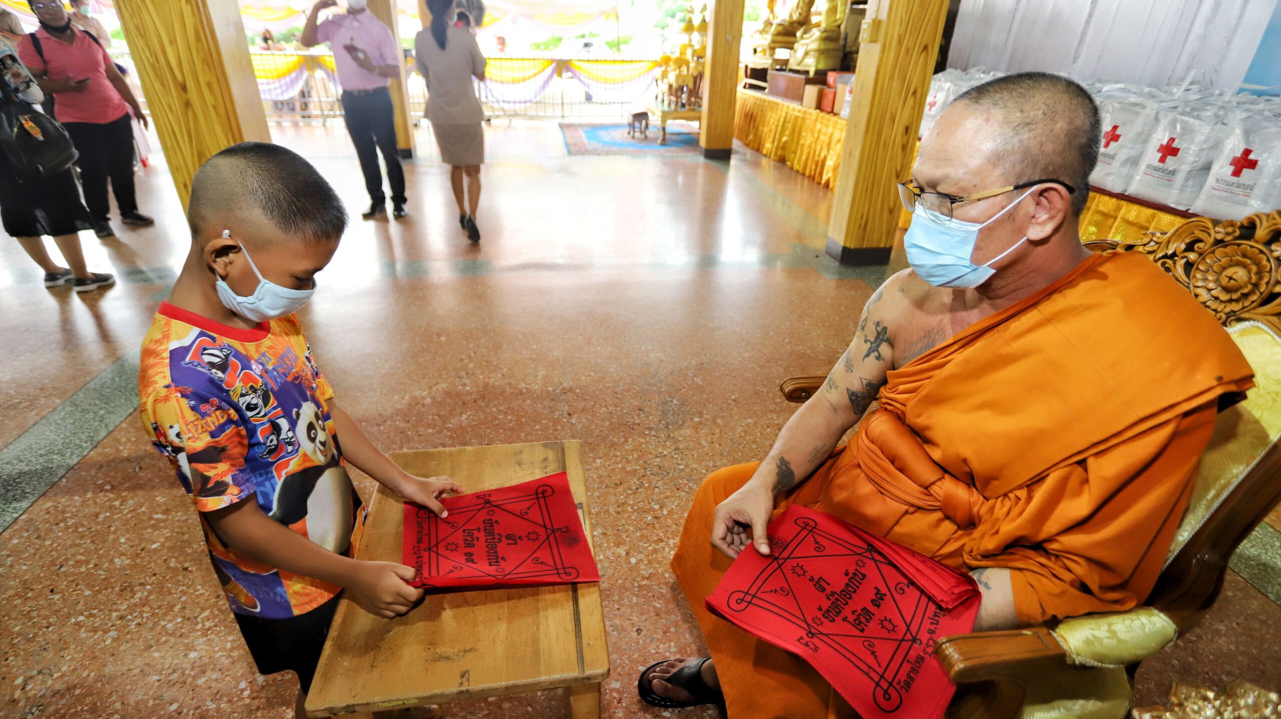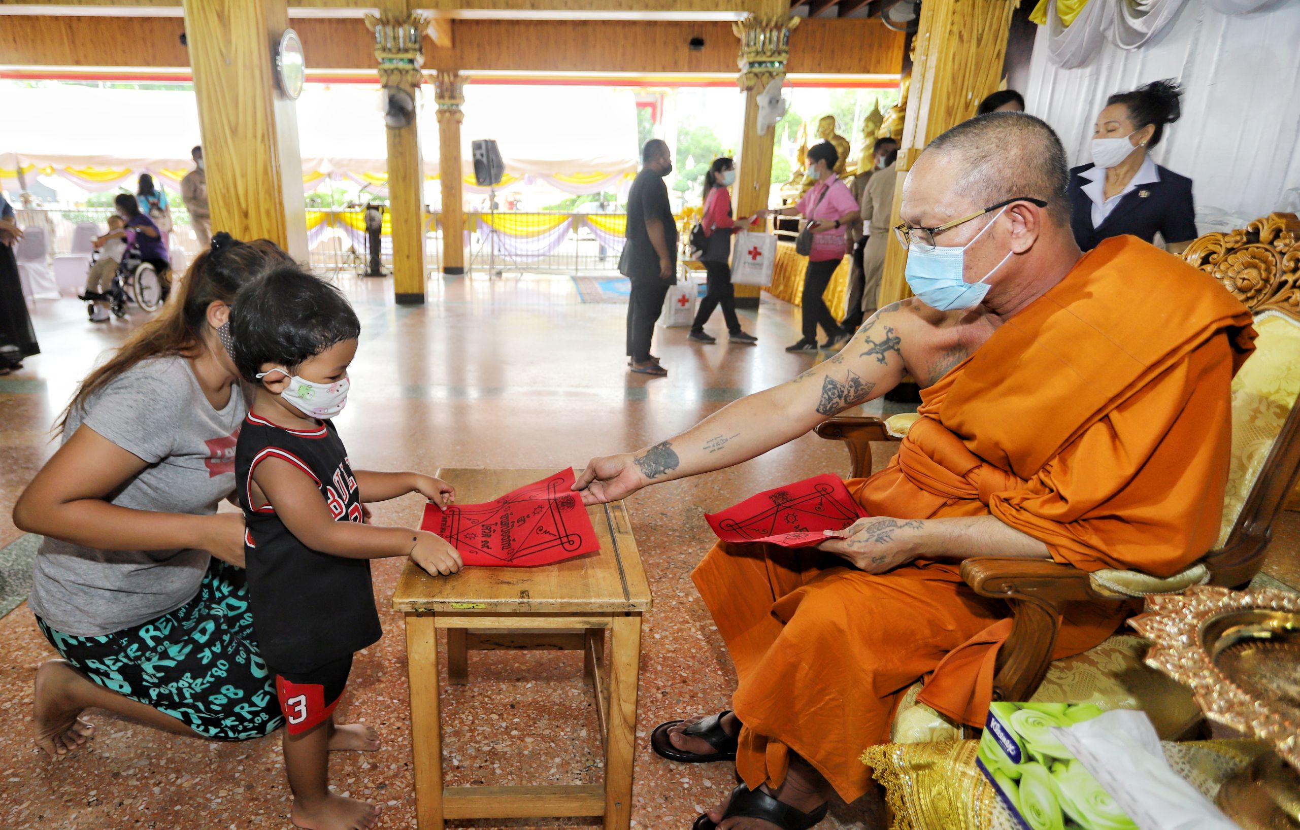 หลวงพ่ออ๊อดวัดสายไหม แจกผ้ายันต์กันโควิด19 งานออกหน่วยบริการจังหวัดเคลื่อนที่ ข้าราชการชาวบ้านแห่รับ เผยเป็นที่พึ่งทางใจ