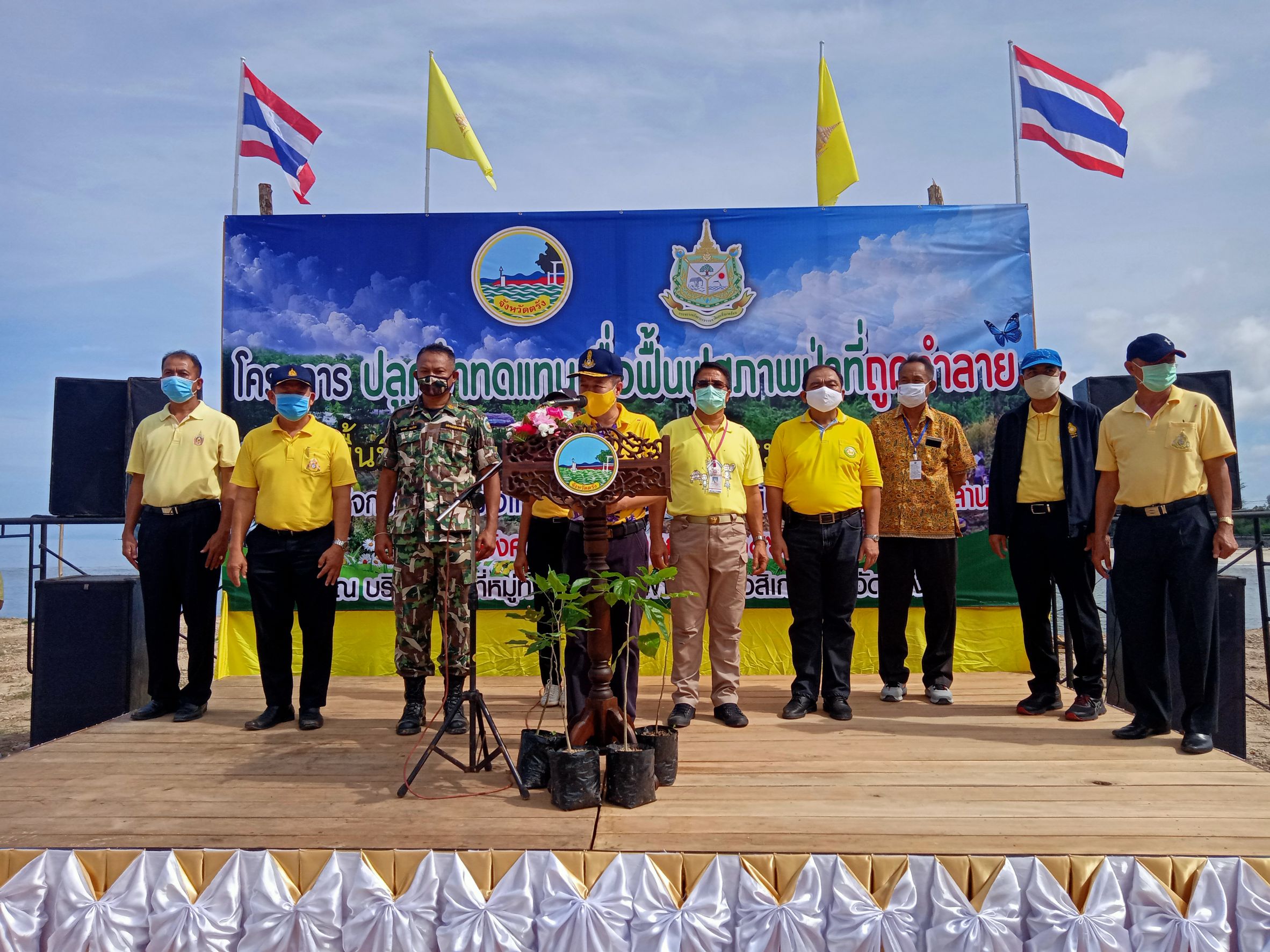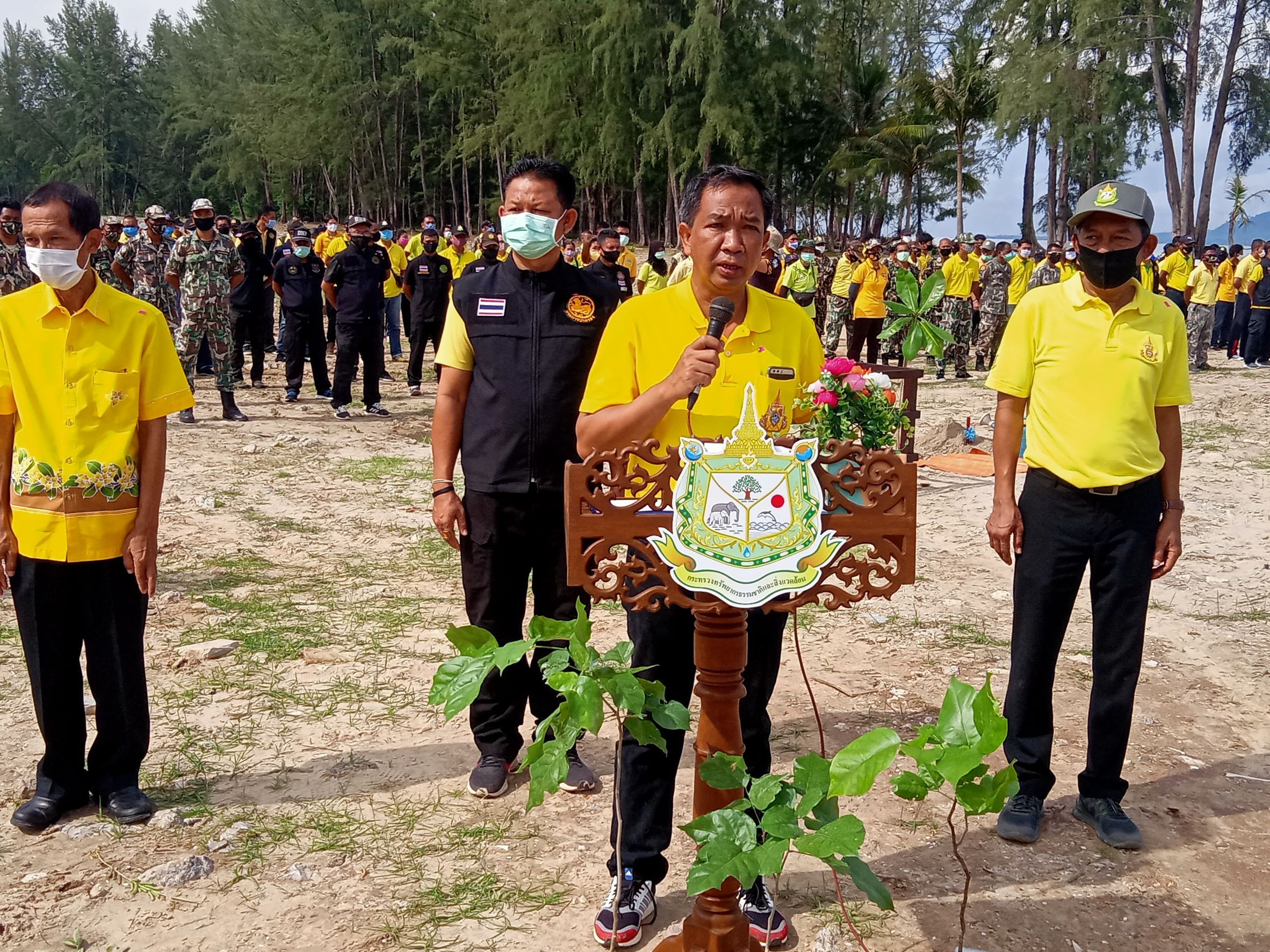นายไพบูลย์ โอมาก รองผู้ว่าราชการจังหวัดตรัง ได้กล่าวว่า การปลูกต้นไม้ในวันนี้ เป็นการปลูกต้นไม้ทดแทนในพื้นที่ที่เคยถูกบุกรุกทำลาย เนื้อที่ประมาณ 37 ไร่ ซึ่งเคยเป็นโรงแรมที่มีชื่อเสียง มูลค่ากว่าพันล้านบาท ซึ่งถูกเจ้าหน้าที่ฟ้องร้องและทำการยึดคืนพื้นที่ มีการรื้อโครงสร้างที่เป็นโรงแรมทั้งหมดก่อที่จะมีการปลูกต้นไม้ทดแทน โดยมีการนำพันธุ์ไม้ที่ปลูกได้แก่ หยีทะเล จิกทะเล กระทิง และพันธุ์ไม้ประจำถิ่น จำนวน 2,000 ต้น และมีกิจกรรมเก็บขยะทะเลบริเวณชายหาดดังกล่าว ระยะทางประมาณ 200 เมตร เพื่อฟื้นฟูสภาพป่าชายหาด ให้กลับสู่ความอุดมสมบูรณ์ เกิดความหลากหลายทางชีวภาพ และเป็นการเพิ่มพื้นที่สีเขียวให้กับจังหวัด ภายใต้วิสัยทัศน์ “เมืองแห่งคุณภาพชีวิตที่ดีและยั่งยืน” ของจังหวัดตรัง และขอเชิญชวนพี่น้องชาวจังหวัดตรัง และประชาชนชาวไทยได้มีส่วนร่วมในการปลูกต้นไม้ตามโครงการฯ และลงทะเบียนการปลูกต้นไม้ในระบบทางเว็บไซต์ของโครงการฯ “รวมใจไทย ปลูกต้นไม้ เพื่อแผ่นดิน” https://plant.forest.go.th เข้าลงทะเบียนปลูกต้นไม้ โดยทุกท่านสามารถดาวน์โหลดใบประกาศนียบัตรได้จากระบบเมื่อท่านปลูกและลงทะเบียนแล้วเสร็จ