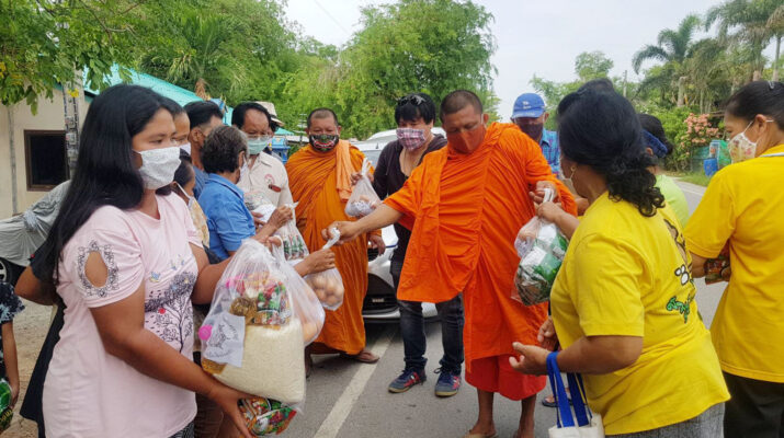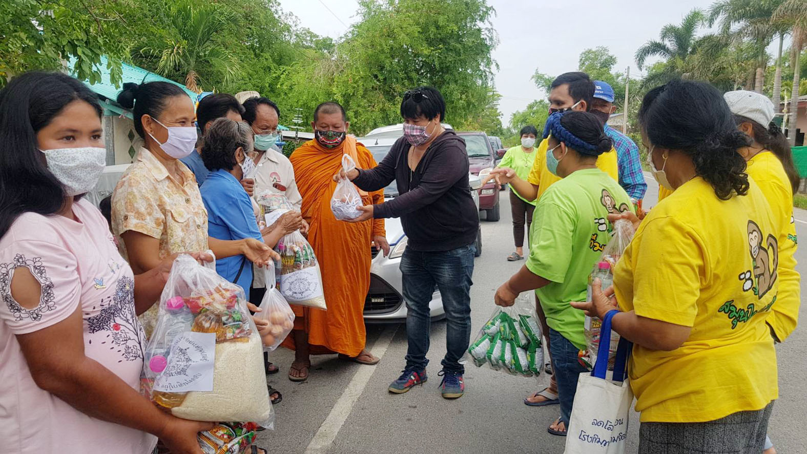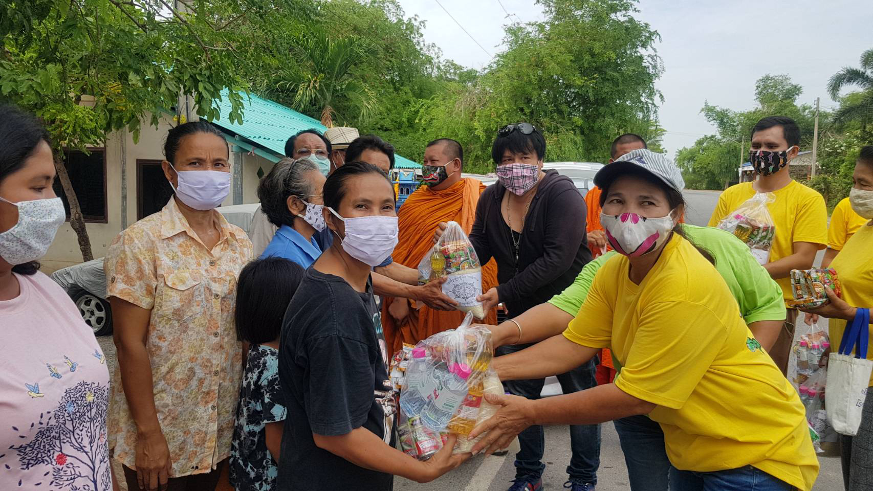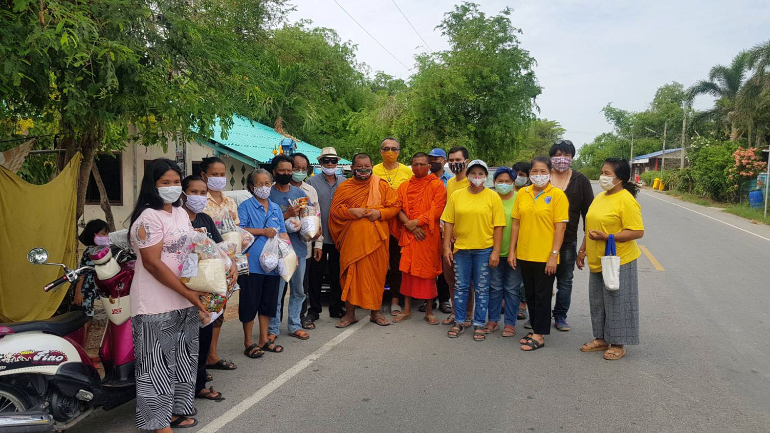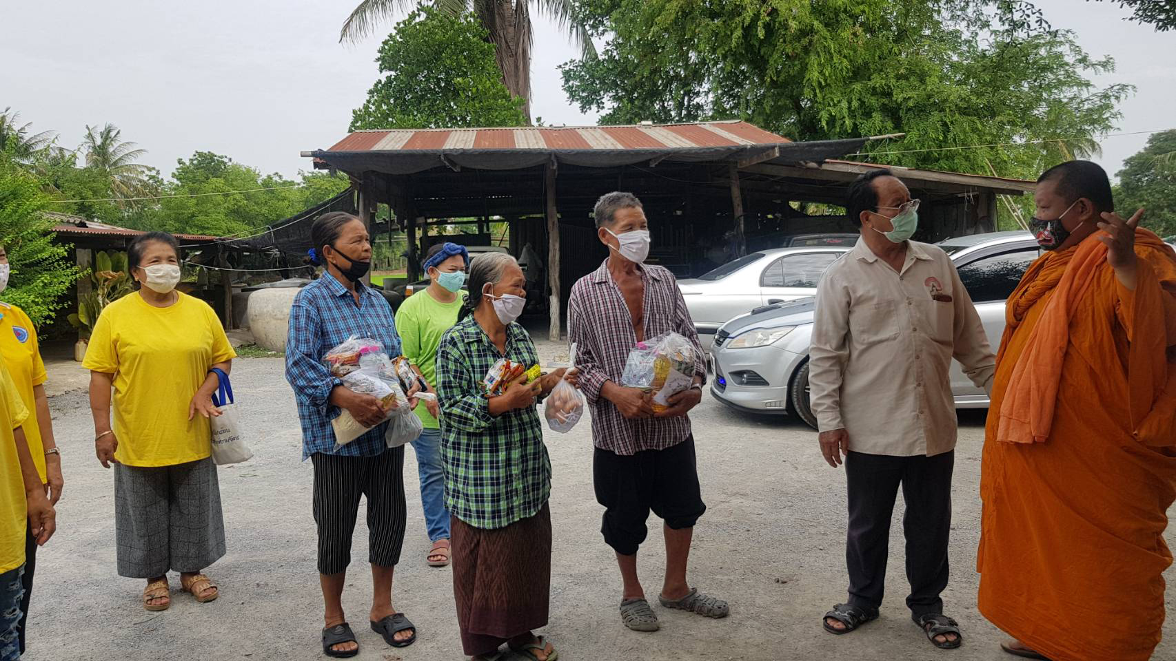 ที่ จ.สุพรรณบุรี พระปลัดธนิตย์ จนฺทิโก (หลวงพี่เบียร์)เจ้าอาวาสวัดบางปลาหมอ ต.ดอนกำยาน อ.เมืองสุพรรณบุรี พร้อมพระลูกวัด ทีมงานจิตอาสาอารมณ์ดีวัดบางปลาหมอ กลุ่มเพื่อสื่อมวลชนจังหวัดสุพรรณบุรี นายมงคล สว่างศรี นายธนกฤต แตงโสภา นายไพรัช ภมรพล นายโสภณ สว่างศรี นายนิกร สิงห์พิมาตร นายนพดล แก้วเรือง นายดนัยภพ สังข์สุวรรณ นายทองขาว วิญญากุล สมาชิก อบต หมู่ 3 หมู่ 7 และ หมู่ 9 น.ส. เจียมใจ มีปิ่น เจ้าหน้าที่โรงพยาบาลส่งเสริมสุขภาพตำบลสวนแตง นำถุงยังชีพประกอบด้วยข้าวสาร อาหารแห้ง ปลากระป๋อง บะหมี่กึ่งสำเร็จรูป ไข่ไก่ น้ำมันพืช น้ำดื่ม เดินทางลงพื้นที่หมู่ 3-7-9 เพื่อแจกจ่ายให้กับชาวบ้านผู้สูงอายุ ผู้พิการ ยากไร้ กว่า 100 ชุด