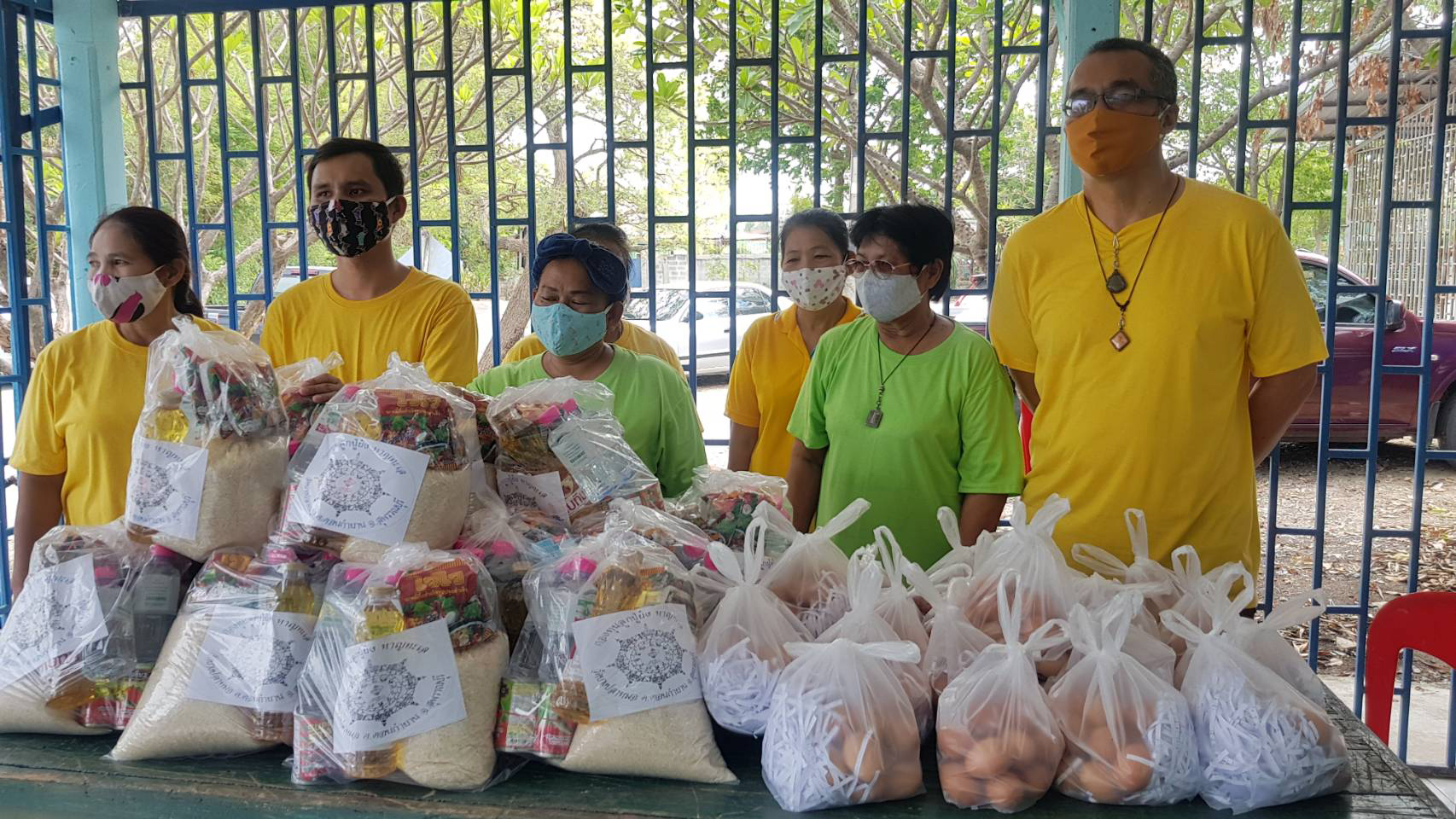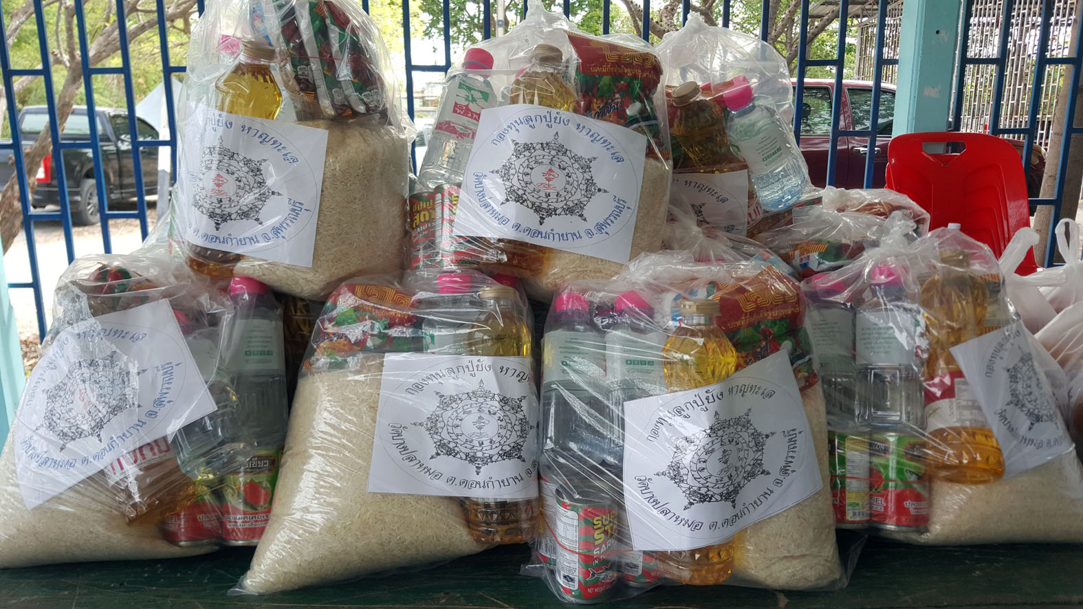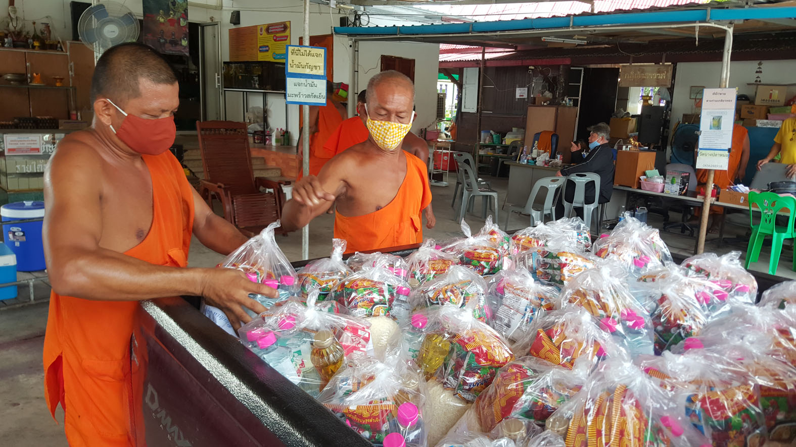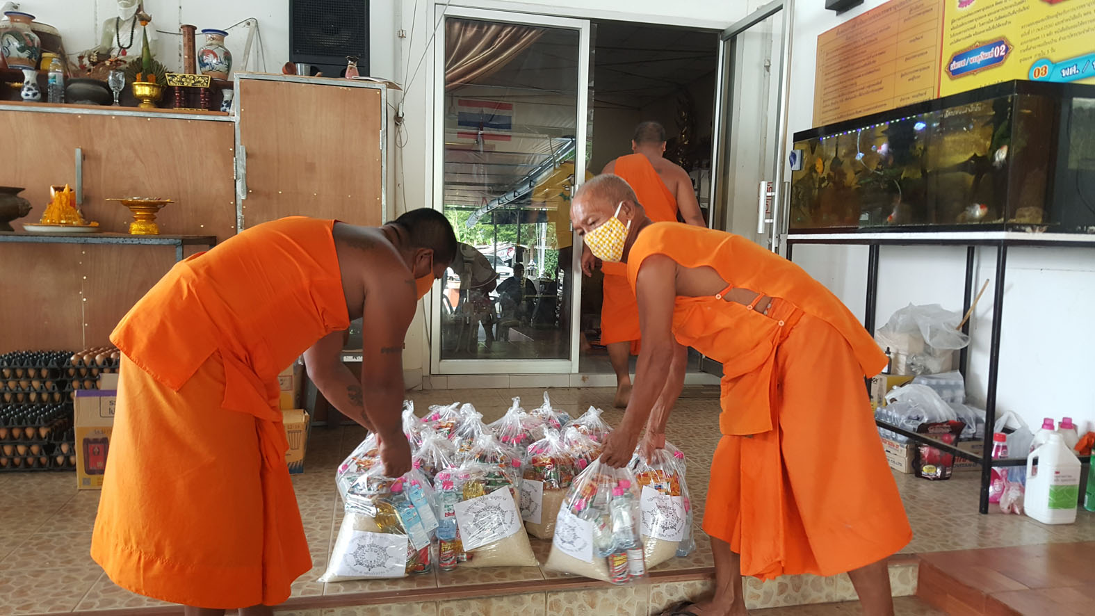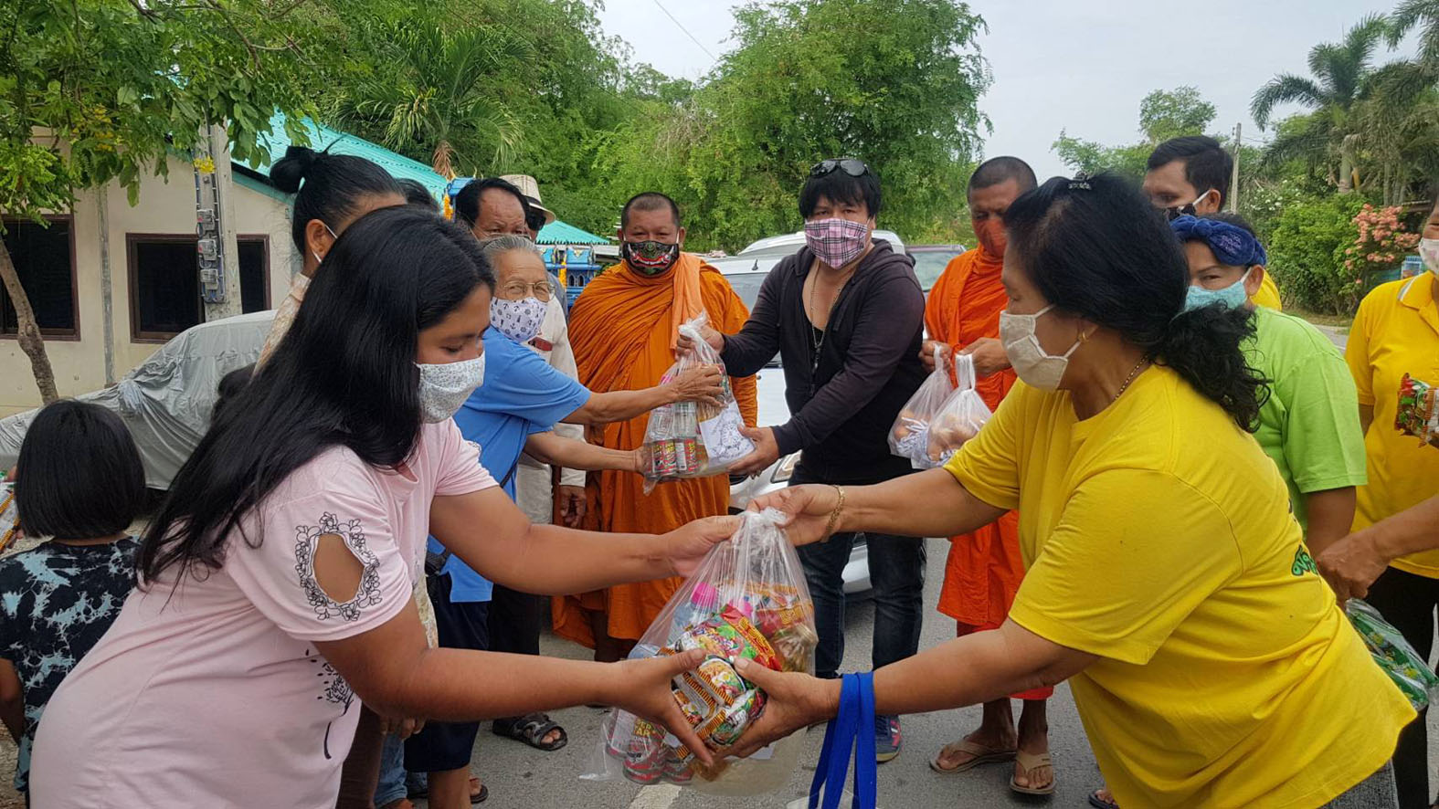 ที่ จ.สุพรรณบุรี พระปลัดธนิตย์ จนฺทิโก (หลวงพี่เบียร์)เจ้าอาวาสวัดบางปลาหมอ ต.ดอนกำยาน อ.เมืองสุพรรณบุรี พร้อมพระลูกวัด ทีมงานจิตอาสาอารมณ์ดีวัดบางปลาหมอ กลุ่มเพื่อสื่อมวลชนจังหวัดสุพรรณบุรี นายมงคล สว่างศรี นายธนกฤต แตงโสภา นายไพรัช ภมรพล นายโสภณ สว่างศรี นายนิกร สิงห์พิมาตร นายนพดล แก้วเรือง นายดนัยภพ สังข์สุวรรณ นายทองขาว วิญญากุล สมาชิก อบต หมู่ 3 หมู่ 7 และ หมู่ 9 น.ส. เจียมใจ มีปิ่น เจ้าหน้าที่โรงพยาบาลส่งเสริมสุขภาพตำบลสวนแตง นำถุงยังชีพประกอบด้วยข้าวสาร อาหารแห้ง ปลากระป๋อง บะหมี่กึ่งสำเร็จรูป ไข่ไก่ น้ำมันพืช น้ำดื่ม เดินทางลงพื้นที่หมู่ 3-7-9 เพื่อแจกจ่ายให้กับชาวบ้านผู้สูงอายุ ผู้พิการ ยากไร้ กว่า 100 ชุด