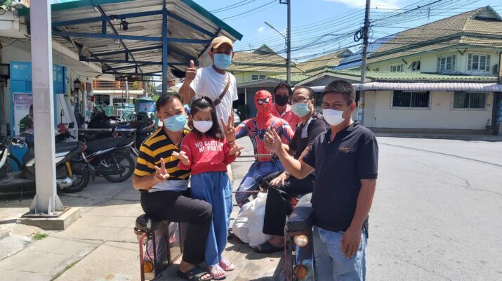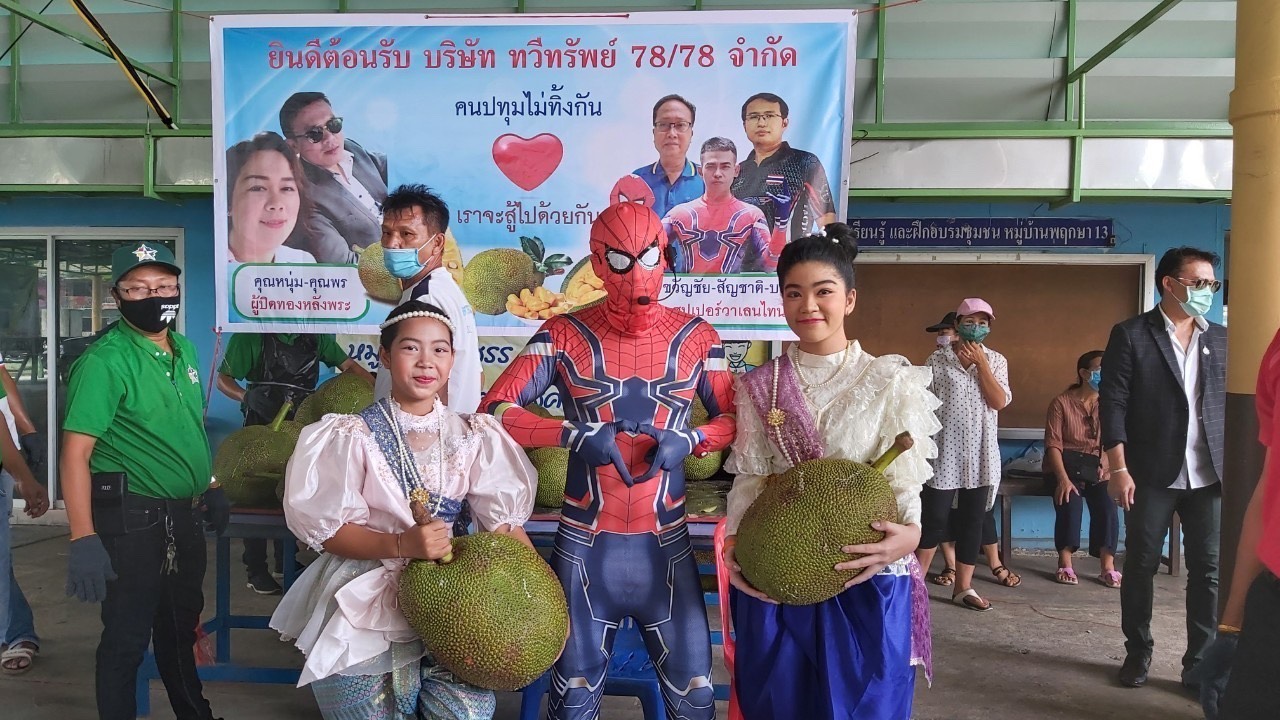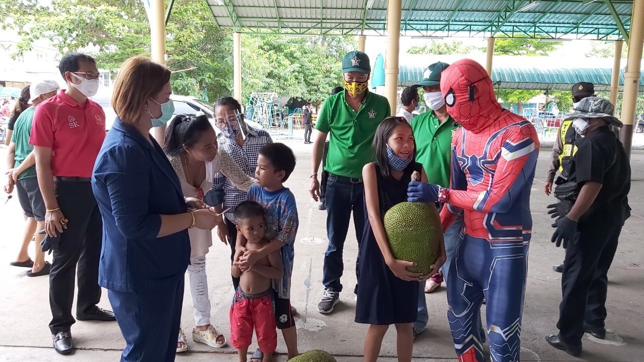 ปทุมธานี ฮือฮาซูเปอร์ฮีโร่โผล่แจกขนุนแก่ชาวบ้านในตำบลคลองสาม