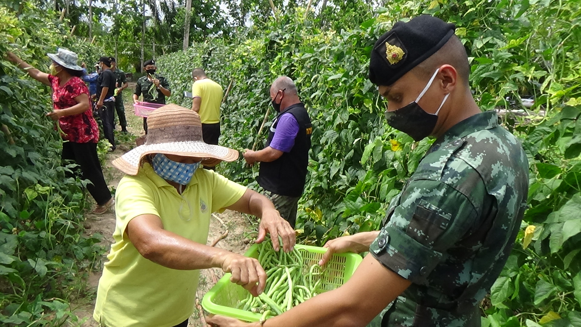 ซึ่งเป็นบ้านของนายภควัฒน์และนางอัจจิมา ปานจันทร์ เกษตรกรปลูกผัก เพื่อต้องการซื้อพืชผักของเกษตรกร ซึ่งกองทัพบกและกองทัพภาคที่ 4 มีนโยบายช่วยเหลือเกษตรกรที่ได้รับความเดือดร้อนจากการแพร่ระบาดของโควิด -19 โดยให้หน่วยทหารทุกจังหวัดออกซื้อผลผลิตของเกษตรกรโดยตรง ไม่ผ่านพ่อคนกลาง ในส่วนของกองพันทหารราบที่ 4 กรมทหารราบที่ 15 ค่ายพระยารัษฎานุประดิษฐ์ สนองนโยบายของกองทัพบกและกองทัพภาคที่ 4 ในการออกซื้อพืชผักของเกษตรกร ในตำบลนาท่ามเหนือ อำเภอเมืองตรัง โดยซื้อถั่วฝักยาว มะเขือเปราะ มะเขือยาว ผักบุ้ง เกษตรกรช่วยกันเก็บผลผลิตจำหน่ายให้กับทหารที่ไปรับซื้อถึง ซึ่งถั่วฝักยาว กิโลกรัมละ 25 บาท มะเขือเปราะและมะเขือยาว กิโลกรัมละ 15 บาท ผักบุ้ง กำละ 8 บาท โดยนำพืชผักที่รับซื้อจากเกษตรกรนำไปทำอาหารให้กับกำลังภายในค่ายฯ การรับซื้อผลผลิตของเกษตรกร เป็นการช่วยเหลือเกษตรกรได้อีกทางหนึ่ง