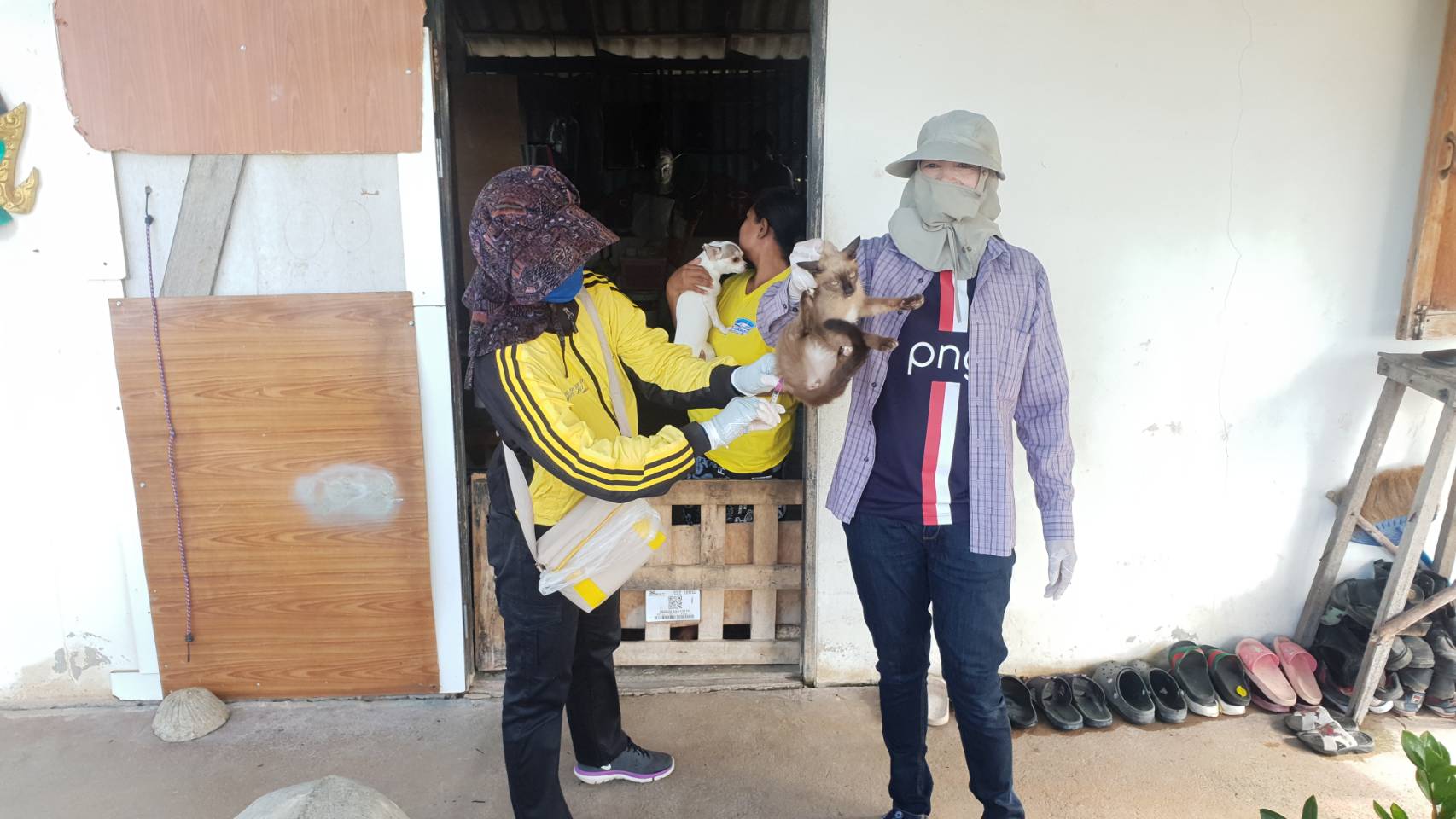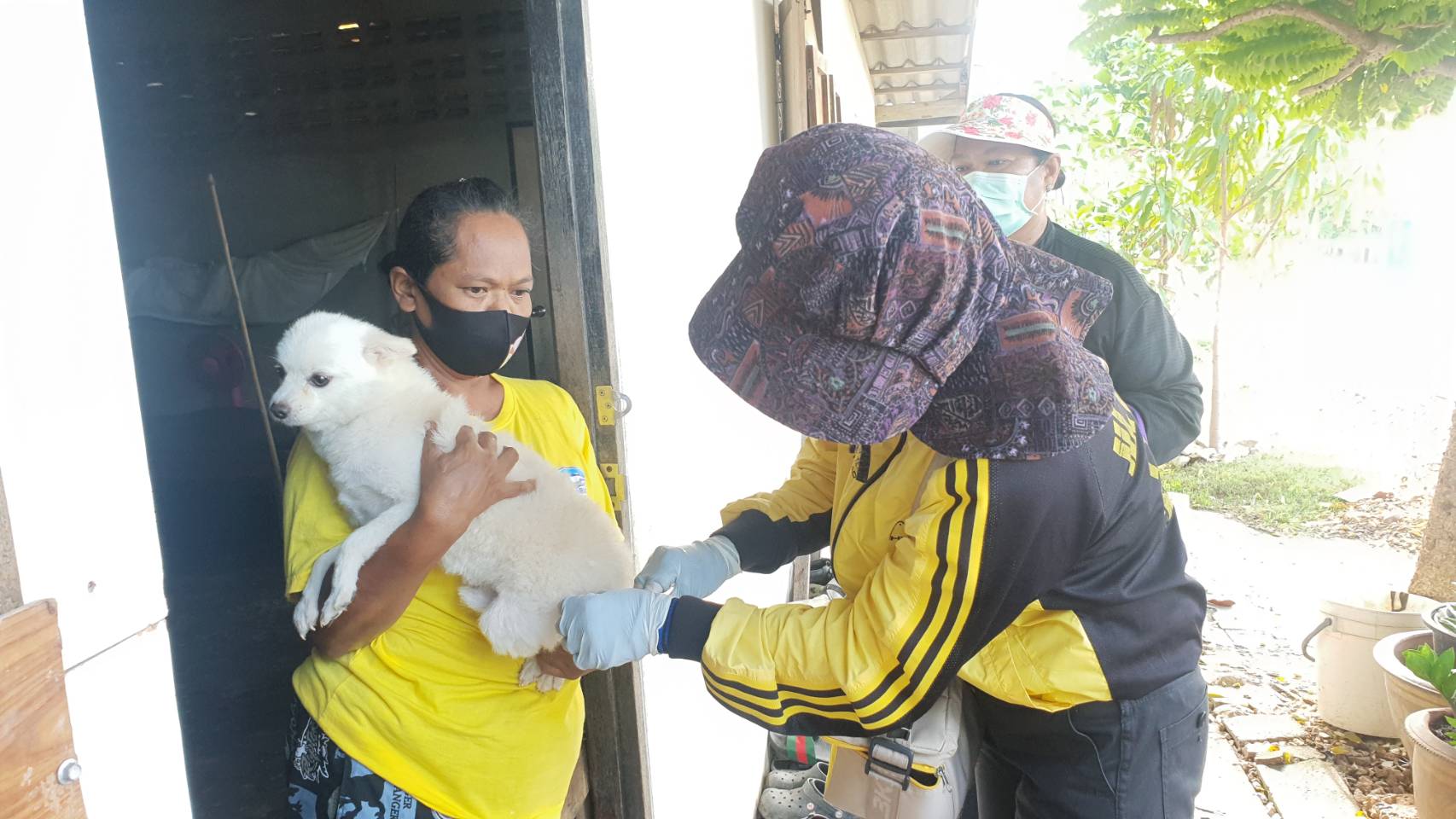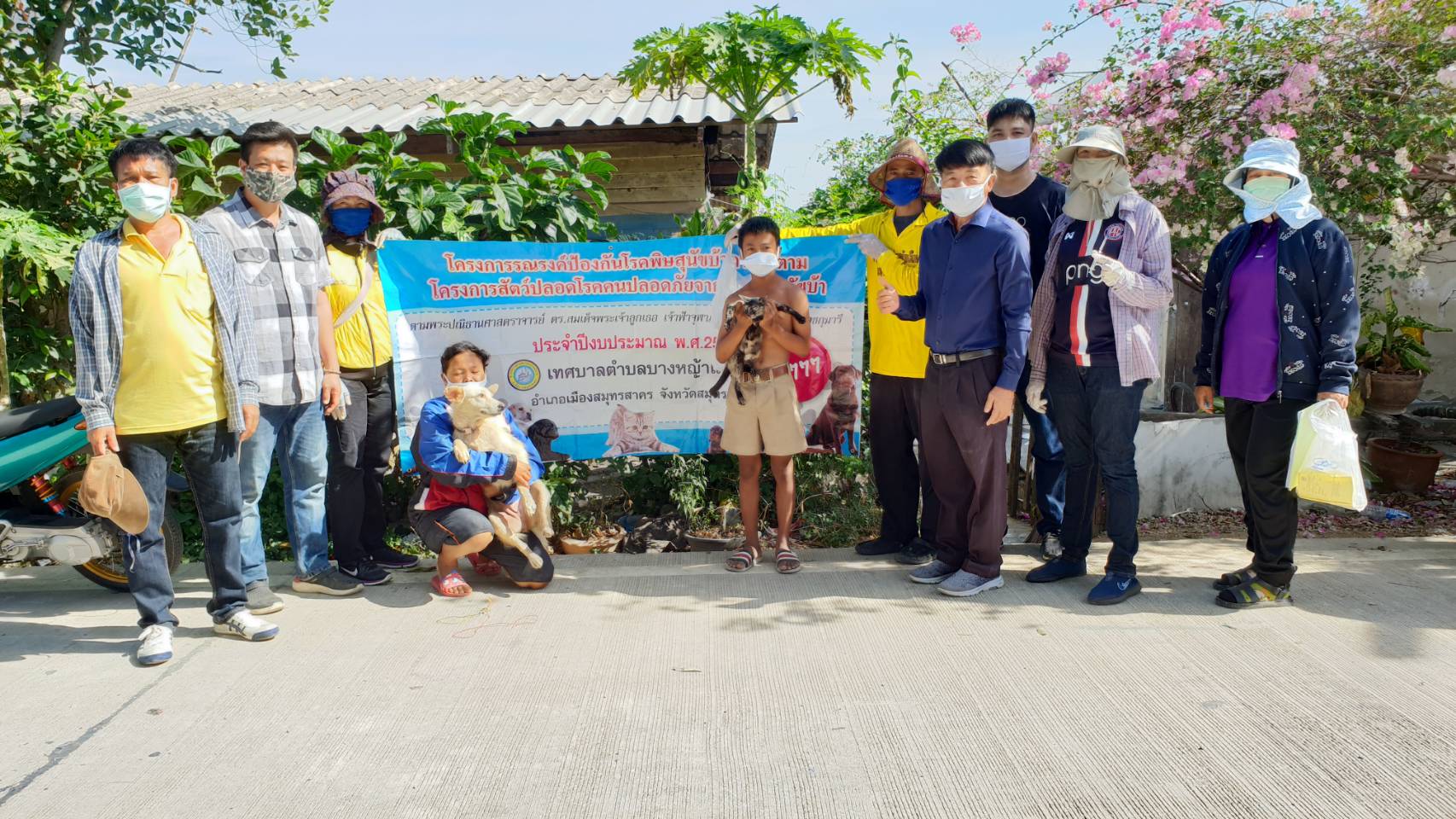 เทศบาลตำบลบางหญ้าแพรก ออกฉีดวัคซีนสุนัขและแมว ตามโครงการรณรงค์ป้องกันและควบคุมโรคพิษสุนัขบ้า