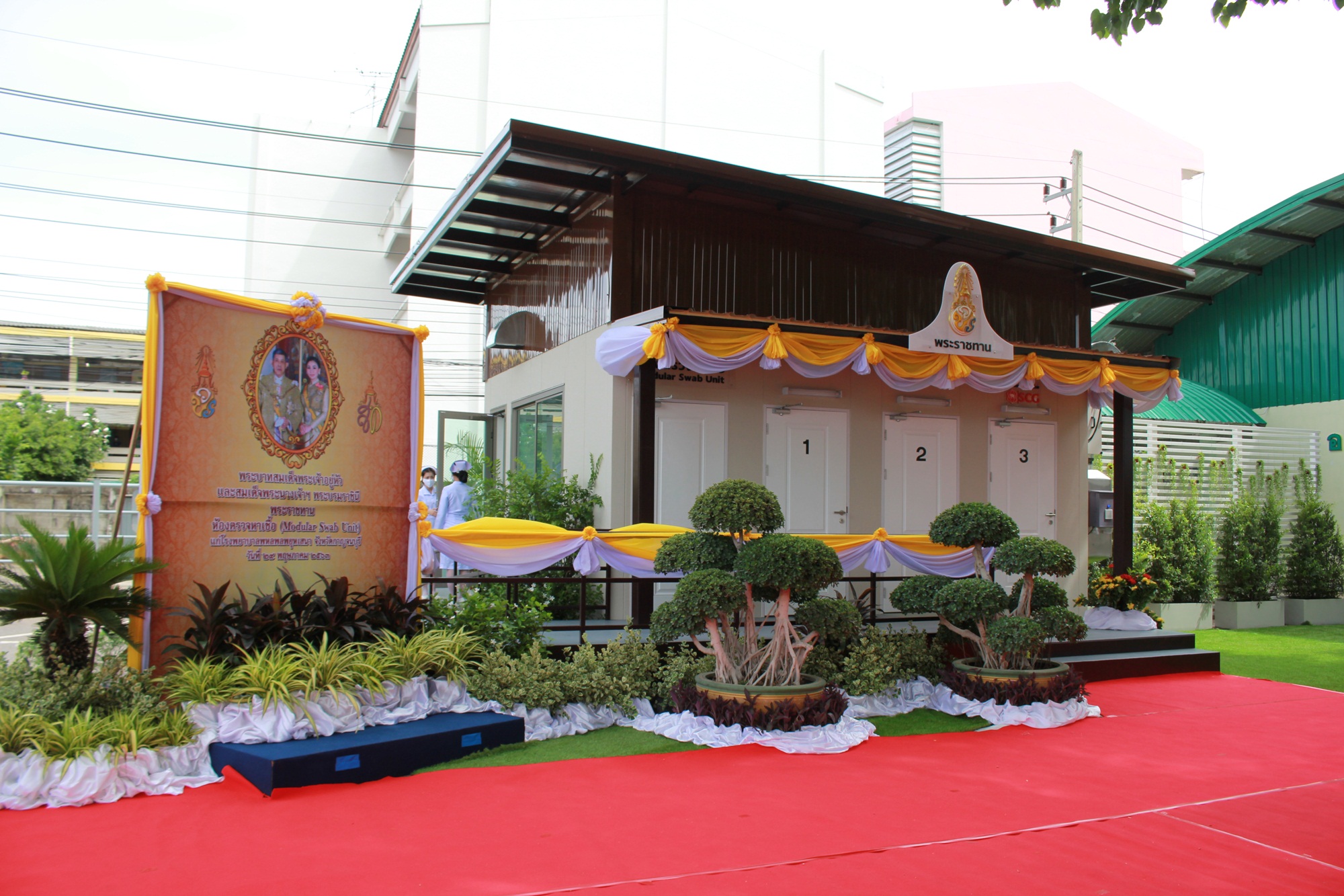 ขณะที่นายประกอบ พิกุลกานตเลิศ กรรมการผู้จัดการ บริษัทไทยเคนเปเปอร์ จำกัด (มหาชน) ในเอสซีจี แพคเกจจิ้ง กล่าวว่า “เอสซีจี รู้สึกปลาบปลื้มเป็นอย่างยิ่งที่ได้รับพระมหากรุณาธิคุณให้มีส่วนร่วมในการผลิตนวัตกรรมห้องตรวจหาเชื้อ (Modular Swab Unit) เพื่อช่วยปกป้องแพทย์ พยาบาล และบุคลากรทางการแพทย์ ขณะปฏิบัติหน้าที่ อันเป็นการตอบแทนความเสียสละและอุทิศตนของท่านทั้งหลายที่ได้ช่วยกันดูแลรักษาผู้ป่วย และยังช่วยปกป้องประชาชนจากการแพร่ระบาดของเชื้อไวรัสนี้ โดยห้องตรวจหาเชื้อดังกล่าวพัฒนาจากเทคโนโลยีของ SCG HEIM และ Living Solution ซึ่งได้ออกแบบให้มีระบบที่จะช่วยควบคุมแรงดันและการหมุนเวียนของอากาศให้สะอาด ปลอดภัย มีระบบการป้องกันอากาศรั่วไหล ที่ทำให้ห้องปิดสนิท ป้องกันอากาศเข้า-ออกตัวอาคาร ทำให้ภายในอาคารสามารถควบคุมแรงดันอากาศได้เป็นอย่างดี ช่วยเพิ่มความมั่นใจในความปลอดภัยแก่บุคลากรทางการแพทย์ ขณะปฏิบัติหน้าที่ได้มากขึ้น สำหรับห้องตรวจหาเชื้อที่โรงพยาบาลพหลพลพยุหเสนา ได้ติดตั้งในบริเวณหน้าอาคารผู้ป่วยนอก 2 เพื่อให้ขั้นตอนการตรวจคัดกรองผู้ป่วยและการตรวจหาเชื้อดำเนินไปอย่างราบรื่น แม้ว่าพื้นที่ติดตั้งจะมีข้อจำกัด เนื่องจากเป็นพื้นที่แคบ แต่ด้วยความร่วมมืออย่างดียิ่งของทางโรงพยาบาล ประกอบกับประสบการณ์และความชำนาญของทีมติดตั้ง จึงทำให้การดำเนินการต่าง ๆ สำเร็จลงภายในเวลาเพียง 3 วัน พร้อมที่จะให้บริการแก่บุคลากรทางการแพทย์และประชาชนได้ในทันที”