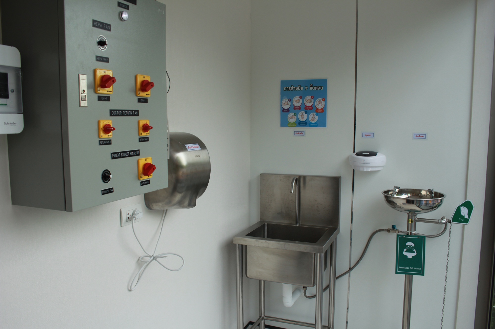 นวัตกรรมห้องตรวจหาเชื้อ (Modular Swab Unit) นี้ พัฒนาจากเทคโนโลยีของ SCG HEIM และ Living Solution ภายในห้องตรวจผู้ที่มีความเสี่ยงติดเชื้อโควิด-19 ได้ออกแบบให้มีระบบ Smart Indoor Air Quality (IAQ Smart) ที่ช่วยควบคุมแรงดันและการหมุนเวียนของอากาศให้สะอาด ปลอดภัย และระบบการป้องกันอากาศรั่วไหล (Air Tightness) ที่ทำให้ห้องปิดสนิท ป้องกันอากาศเข้า-ออกตัวอาคาร ทำให้ในตัวอาคารสามารถควบคุมแรงดันอากาศได้เป็นอย่างดี โดยทีมแพทย์จะอยู่ในห้องความดันบวก ที่ไม่มีอากาศเสียจากภายนอกเข้าไป อากาศภายในจึงบริสุทธิ์ปลอดภัย ส่วนผู้ป่วยที่มีความเสี่ยงติดเชื้อจะอยู่ในห้องความดันลบ และมีระบบดูดอากาศเสียออกไปกำจัดอย่างต่อเนื่อง จึงป้องกันไม่ให้มีอากาศฟุ้งกระจายออกไปภายนอก เพื่อสร้างความมั่นใจในความปลอดภัยให้แก่ทีมแพทย์ ซึ่งการเก็บตัวอย่าง (Swab) จะทำผ่านแผ่นอะคริลิกที่เจาะเป็นช่อง โดยแพทย์สามารถสอดมือผ่านช่องที่มีถุงมือคลุมด้วยพลาสติกแบบใช้ครั้งเดียวทิ้งเพื่อเก็บตัวอย่าง จึงลดความเสี่ยงในการปนเปื้อนจากผู้ที่เข้ารับการตรวจพร้อมใช้แสงยูวีเข้มข้นสูง ฆ่าเชื้อโรคต่าง ๆ (UV Germicide) หลังจากการใช้งานในห้องทุกครั้ง ทั้งนี้ โครงสร้างกว่าร้อยละ 80 ประกอบขึ้นรูปภายในโรงงานที่มีการควบคุมคุณภาพและความสะอาดตลอดกระบวนการผลิต และยังสามารถติดตั้งได้รวดเร็ว