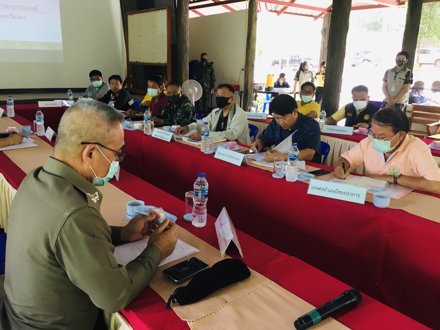 พระครูสถิตธรรมาภิรักษ์ เจ้าคณะอำเภอไชยปราการ จังหวัดเชียงใหม่ ที่ปรึกษาอุทยานแห่งชาติดอยเวียงผา นายธวัฒน์ จิตต์กาวิน ปลัดอำเภอไชยปราการทำการแทนนายอำเภอไชยปราการ นายโอภาส บัวศรี ปลัดอำเภอฝาง แทนนายอำเภอฝาง นายจิตรกร คูรินไทย ปลัดอำเภอแม่สรวย นายสิทธิ์ วิมาลา หัวหน้าอุทยานแห่งชาติดอยเวียงผา พร้อมส่วนราชการนายช่วย มนัส กำนันผู้ใหญ่บ้าน ตำบลแม่ทะลบ นายสมเกียรติ อยุ่ศิริ กำนันผู้ใหญ่บ้าน ตำบล ศรีดงเย็นนายชัยธีรณัฏฐ์ สกุลธัญพรปลัดองค์การบริหารส่วนตำบลศรีดงเย็น นายวรชัย อินต๊ะแก้ว แทนนายกเทศมนตรีแม่ข่า นาย นรินทร์ รินทร์ฟองนายกองค์การบริหารส่วนตำบลแม่คะ นายดวงจันทร์ คะติ แทนนายกองค์การบริหารส่วนตำบลป่าแดดพตท เรืองเดช คันธรส สถานีตำรวจภูธรไชยปราการในพื้นที่ ทหารกองบังคับการควบคุมที่2หน่วยเฉพาะกิจกรมทหารม้าที่4กองกำลังผาเมือง หน่วยจัดการต้นน้ำขุนน้ำฝาง หัวหน้าส่วนราชการ อำเภอฝาง อำเภอไชยปราการ จังหวัดเชียงใหม่ อำเภอแม่สรวย จังหวัดเชียงราย ฯลฯ ได้ร่วมประชุมที่ห้องประชุมเอนกประสงค์อุทยานแห่งชาติดอยเวียงผา อำเภอไชยปราการ จังหวัดเชียงใหม่