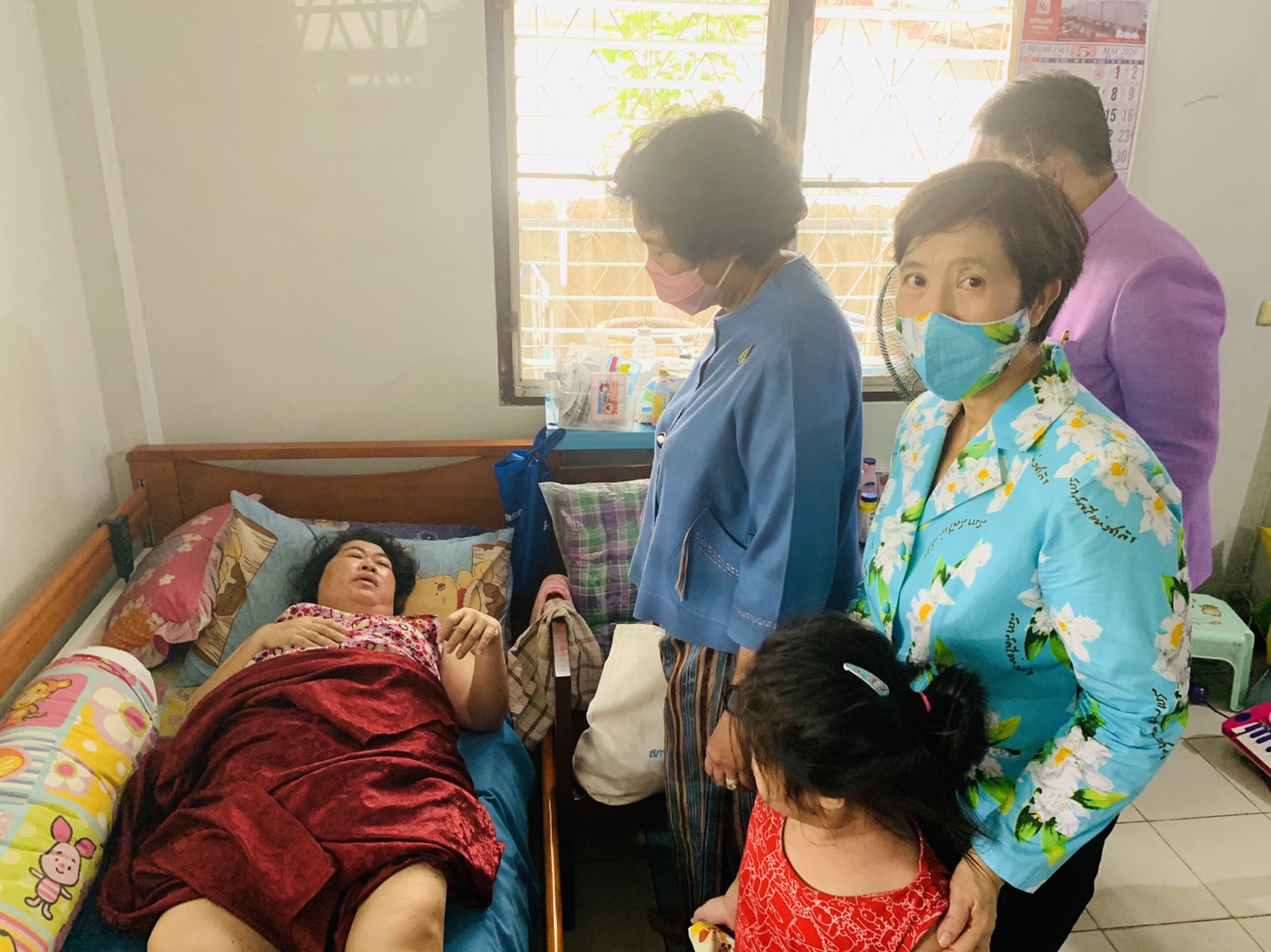 จากนั้น ประธานในพิธี และคณะ เดินทางไปมอบถุงยังชีพเยี่ยมเยียนให้กำลังใจบ้านผู้พิการติดเตียงจำนวน ๓ ราย คือ นางนพวรรณ มานะ กับนางนางบุญเริ่ม มานะวะ และนายเล็ก แซ่หว่อง บริเวณ ถนนพระยาสุเรนทร์ ๑๖ แยก ๑ บางชัน คลองสามวา กทม.