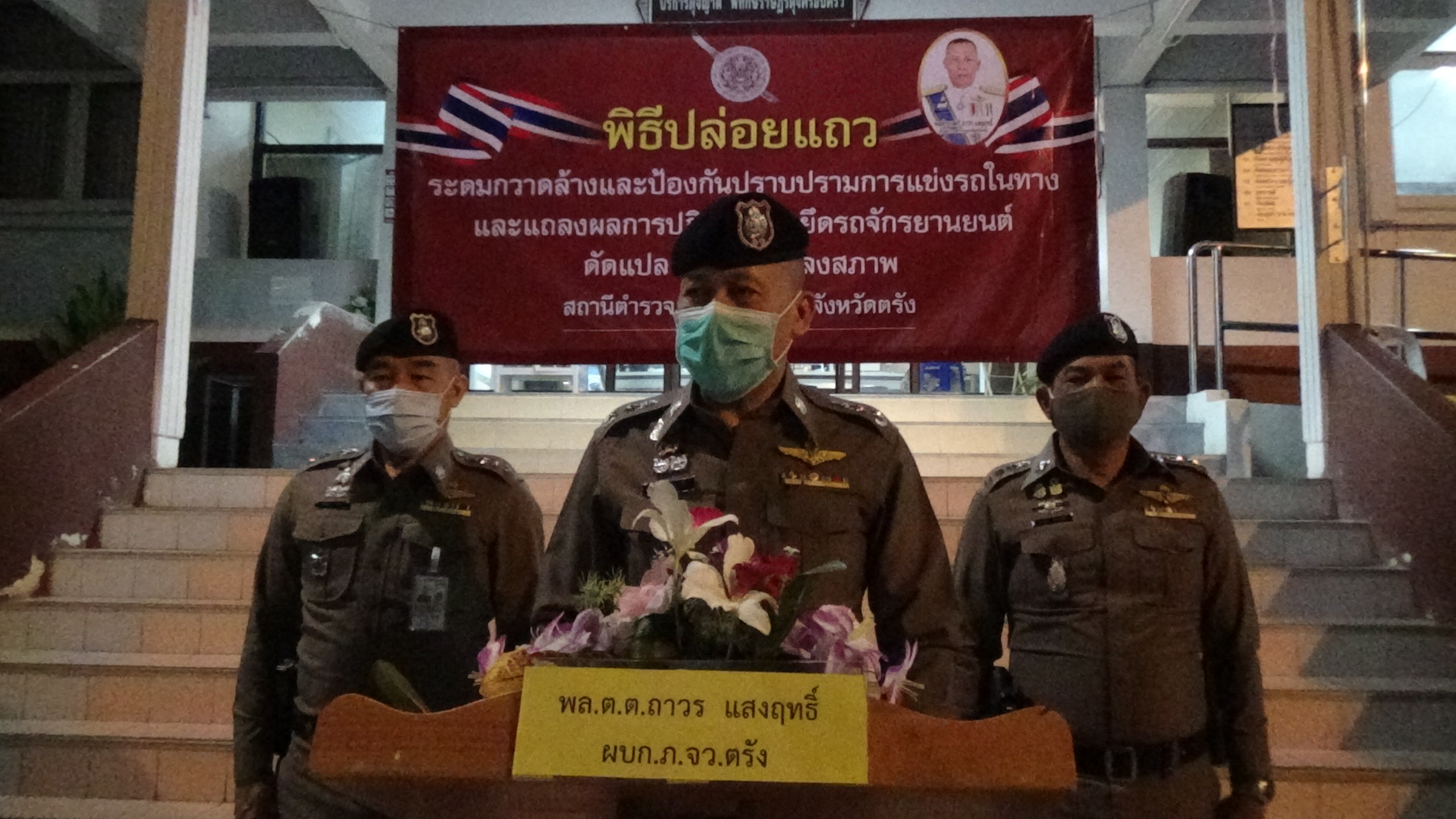 พล.ต.ต.ถาวร แสงฤทธิ์ ผู้บังคับการตำรวจภูธรจังหวัดตรัง กล่าวว่า ในช่วงเดือนเมษายน จนถึงปัจจุบัน รัฐบาลได้มีการประกาศ พ.ร.ก.สถานการณ์ฉุกเฉินและประกาศเคอร์ฟิว ห้ามประชาชนออกจากเคหะสถาน เพื่อเป็นการป้องกันการแพร่ระบาดของเชื้อไวรัสโคโรนา 2019 (โควิด 19) แต่ยังมีกลุ่มวัยรุ่นที่ไม่เกรงกลัวกฎหมาย ขี่รถจักรยานยนต์โดยเฉพาะรถจักรยานยนต์แต่งท่อเสียงดัง รบกวนประชาชน ทางประชาชนได้แจ้งมายังเจ้าหน้าที่ตำรวจเพื่อให้ดำเนินการติดตามจับกุม ทางเจ้าหน้าที่ตำรวจสามารถจับกุมจำนวน 189 คดี แบ่งเป็น เปลี่ยนแปลงสภาพรถ 115 คัน อุปกรณ์ส่วนควบไม่ครบ 39 คัน และไม่ติดแผ่นป้ายทะเบียน 32 คัน ทางเจ้าหน้าที่ได้เปรียบเทียบปรับ หากมีการแข่งรถบนถนนหลวงก็จะดำเนินการส่งฟ้องศาลและทำการยึดรถ อย่างไรก็ตามทางผู้บังคับการตำรวจภูธรจังหวัดตรัง ได้สั่งการให้เจ้าหน้าที่ติดตามไปถึงร้านจำหน่ายท่อรถ ร้านจำหน่ายอุปกรณ์ตกแต่งรถ หากพบการกระทำผิด ให้จับกุมดำเนินคดีทันที รวมถึงการขายสินค้าออนไลน์ด้วย ดังนั้นหากประชาชนได้รับความเดือดร้อนจากการแข่งขันรถบนถนนหลวง การแต่งรถที่มีเสียงดัง และขอความร่วมจากประชาชนช่วยแจ้งเบาะแสหรือจากกล้องหน้ารถ บันทึกภาพแล้วส่งให้เจ้าหน้าที่ตำรวจ ทางเจ้าหน้าที่ตำรวจจะได้ติดตามจับกุมตัวมาดำเนินคดี หรือแจ้งมาที่ พ.ต.อ.สานิตย์ พลเพชร ผู้กำกับการสถานีตำรวจภูธรเมืองตรัง โทร 081-2710193 หรือ 075-211311
