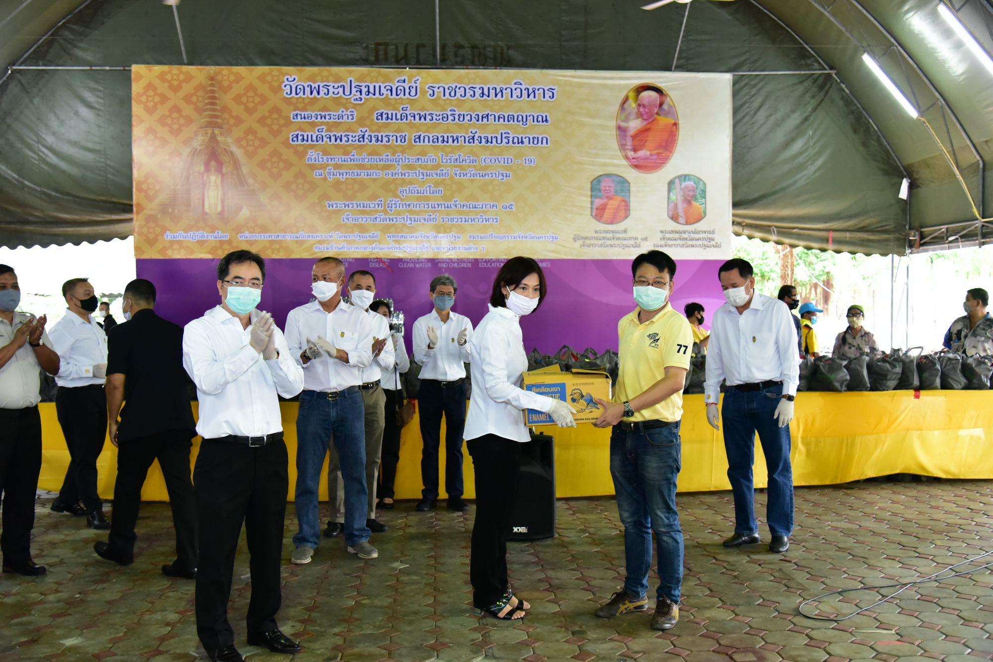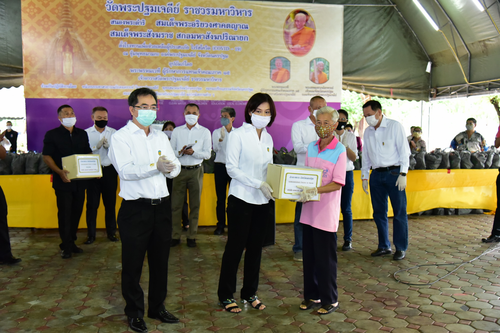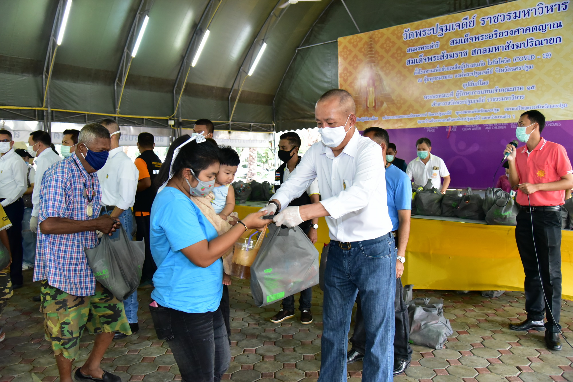 วันที่ 30 พฤษภาคม 2563 ที่บริเวณซุ้มพุทธมามกะ องค์พระปฐมเจดีย์ อำเภอเมือง จังหวัดนครปฐม นายสุพจน์ ยศสิงห์คำ รองผู้ว่าราชการจังหวัดนครปฐม พร้อมด้วย คณะนักศึกษาวิทยาลัยป้องกันราชอาณาจักร หรือ วปอ. ปี 2561 ร่วมจัดกิจกรรมส่งกำลังใจให้ชุมชน สู้ภัย COVID-19 โดยร่วมแจกข้าวสาร อาหารแห้ง และน้ำดื่ม จำนวน 300 ชุด แก่ประชาชนในพื้นที่ตำบลพระปฐมเจดีย์ อำเภอเมืองนครปฐม รวมทั้งมอบพัดลมผนัง ขนาด 18 นิ้ว จำนวน 20 ตัว ให้เรือนจำกลางนครปฐม ตลอดจนมอบเงิน นมผง และสิ่งของจำเป็นให้กับมูลนิธิเด็กโครงการบ้านทานตะวัน เพื่อสร้างขวัญและกำลังใจ อีกทั้งเป็นส่วนหนึ่งในการช่วยเหลือและบรรเทาความเดือดร้อน แก่ประชาชนที่ได้รับผลกระทบจากสถานการณ์การแพร่ระบาดของโรคติดเชื้อไวรัส COVID-19