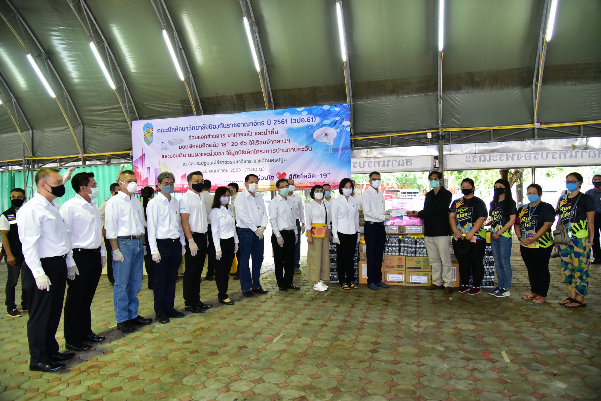 คณะนักศึกษาวิทยาลัยป้องกันราชอาณาจักร ปี 2561 จัดกิจกรรมส่งกำลังใจให้ชุมชน สู้ภัย COVID-19 โดยร่วมแจกอาหารปรุงสำเร็จ อาหารแห้ง และน้ำดื่ม แก่ประชาชนในพื้นที่ตำบลพระปฐมเจดีย์ อำเภอเมือง จังหวัดนครปฐม