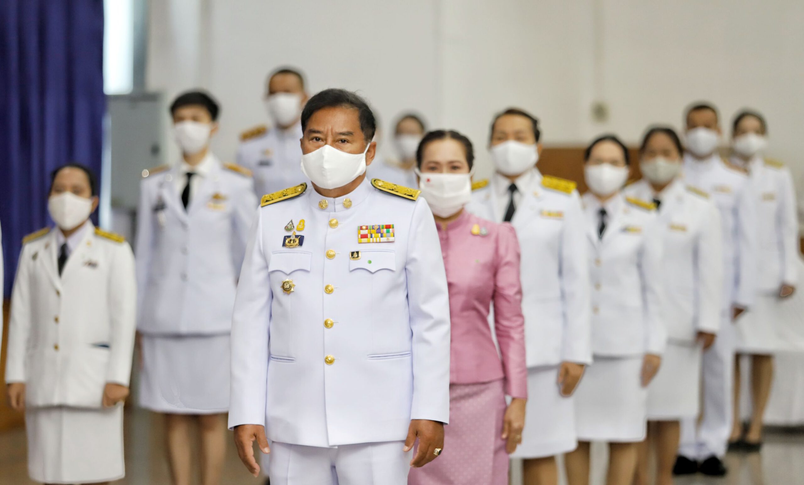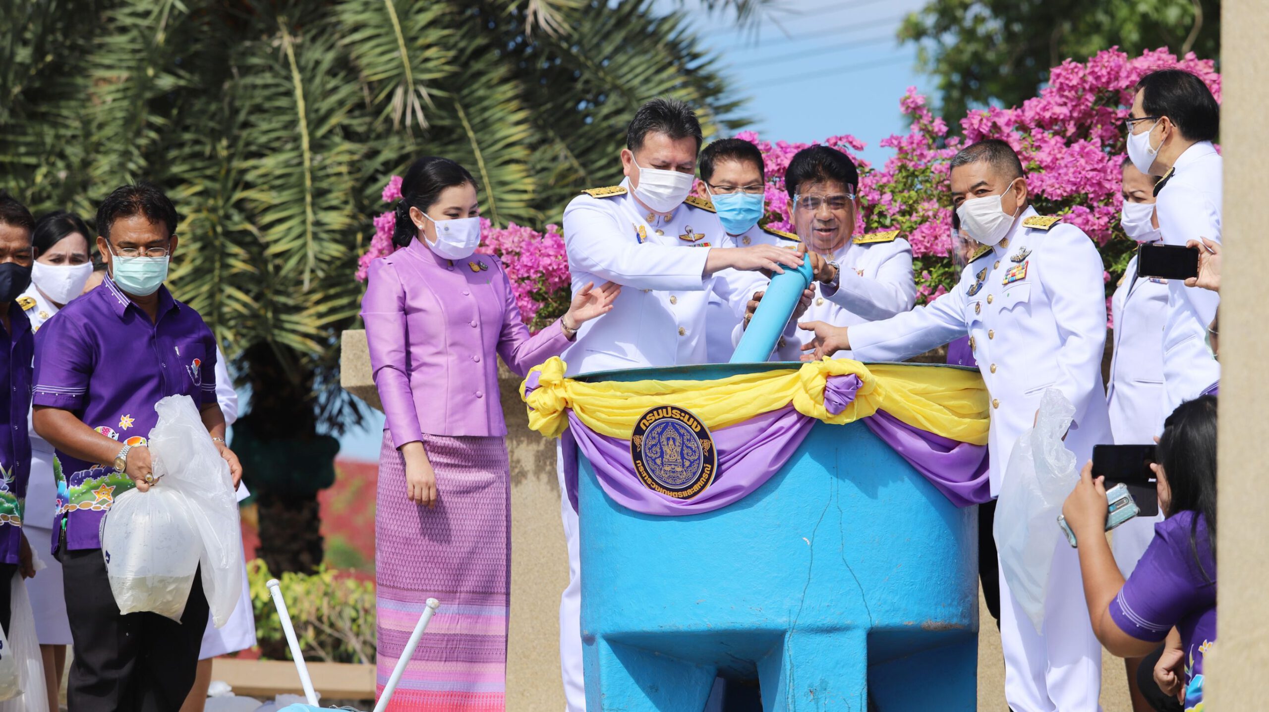 โดยมี นายกิตติพงศ์ ทองปุย ผู้พิพากษาหัวหน้าศาลจังหวัดปทุมธานี นางดลวสา บุญเลิศ นายกเหล่ากาชาดจังหวัดปทุมธานี นายชาธิป รุจนเสรี รองผู้ว่าราชการจังหวัดปทุมธานี นายจรูญศักดิ์ สิงหเดช รองผู้ว่าราชการจังหวัดปทุมธานี พ.อ. สัญญาลักขณ์ ทั่งศิริ รอง ผอ.รมน.จังหวัดปทุมธานี นายสิทธิชัย สวัสดิ์แสน ปลัดจังหวัดปทุมธานี หัวหน้าส่วนราชการ ข้าราชการ ทหาร ตำรวจ เข้าร่วมในพิธี
