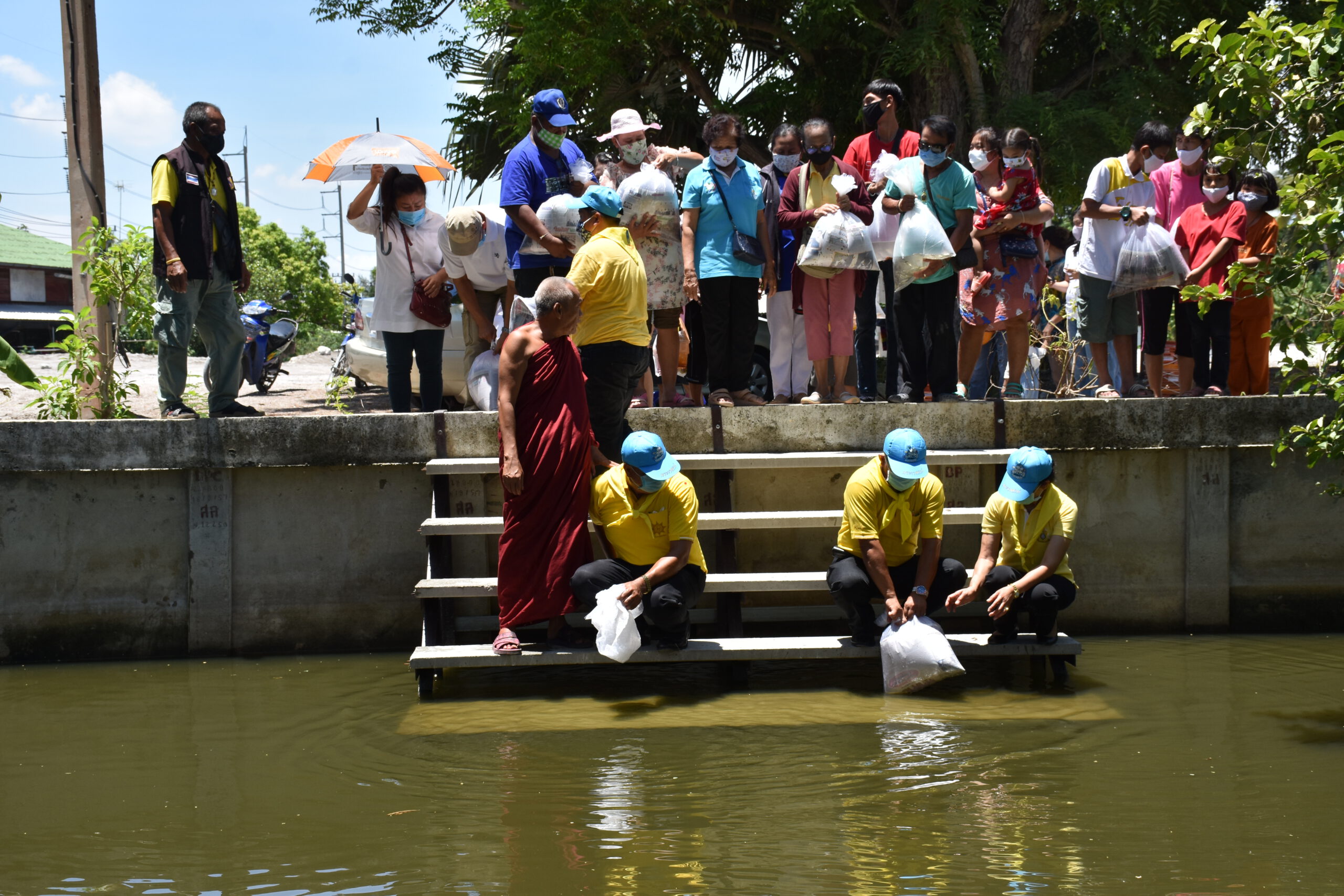 นครปฐม วัดสว่างอารมณ์ ปล่อยพันธุ์ปลานานาชนิด5พันตัวและมอบสิ่งของให้เจ้าหน้าที่ปฎิบัติงานด่านโควิด-19