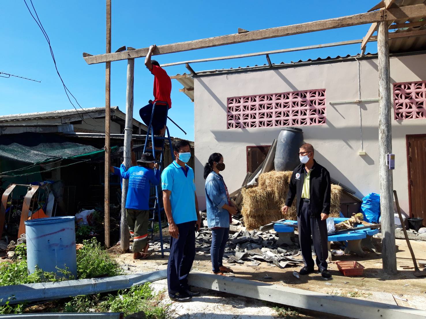 โดยมี นายอัมพร เรืองสว่าง ผู้ช่วยผู้ใหญ่บ้าน หมู่ที่ 5 ต.สามกระทาย อ.กุยบุรี นำพาสำรวจความเสียหายอาคารบ้านเรือนของลูกบ้าน ซึ่งจากการสำรวจเบื้องต้นพบว่ามีอาคารบ้านเรือนได้รับความเสียหายบางส่วนกระเบื้องมุงหลังคาบ้านแตกหักปลิวหลุดออก จำนวน 6 หลัง ประกอบด้วย 1.นางสาวจำลอง เกตุเตี้ย บ้านเลขที่ 90/3 ต.สามกระทาย 2.นายสำเภา เกตุเตี้ย บ้านเลขที่ 91 ต.สามกระทาย 3.นายเล็ก ภูสาย บ้านเลขที่ 96 ต.สามกระทาย 4.นางวรรณา บุญประเสริฐ บ้านเลขที่ 88 ต.สามกระทาย 5.นายนุช พวงเพ็ชร บ้านเลขที่ 210 ต.สามกระทาย และ 6.นางสังวร สดใส บ้านเลขที่ 91/2 ต.สามกระทาย