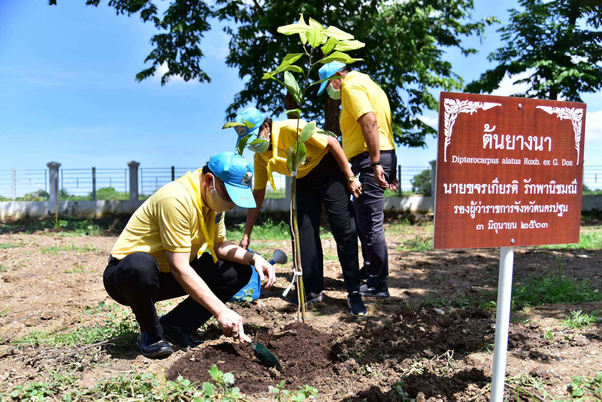 วันที่ 3 มิถุนายน 2563 ที่บริเวณศาลากลางจังหวัดนครปฐม นายชาญนะ เอี่ยมแสง ผู้ว่าราชการจังหวัดนครปฐม เป็นประธานถวายความเคารพ เปิดกรวยกระทงดอกไม้ธูปเทียนแพ หน้าพระบรมฉายาลักษณ์พระบาทสมเด็จพระเจ้าอยู่หัว และสมเด็จพระนางเจ้าฯ พระบรมราชินี และกล่าวคำปฏิญาณ พร้อมด้วยรองผู้ว่าราชการจังหวัด ปลัดจังหวัด หัวหน้าส่วนราชการ ทหาร ตำรวจ จิตอาสาพระราชทาน และประชาชนชาวจังหวัดนครปฐม ร่วมกิจกรรมจิตอาสาพัฒนา ในโอกาสมหามงคลเฉลิมพระชนมพรรษาสมเด็จพระนางเจ้าสุทิดา พัชรสุธาพิมลลักษณ พระบรมราชินี วันที่ 3 มิถุนายน พุทธศักราช 2563 โดยผู้ว่าราชการจังหวัดนครปฐม ได้นำข้าราชการร่วมปลูกต้นยางนา ต้นรวงผึ้ง กิจกรรมทำความสะอาด ปรับปรุงภูมิทัศน์ โดยรอบศาลากลางจังหวัดนครปฐม เพื่อถวายความจงรักภักดี และสำนึกในพระมหากรุณาธิคุณ