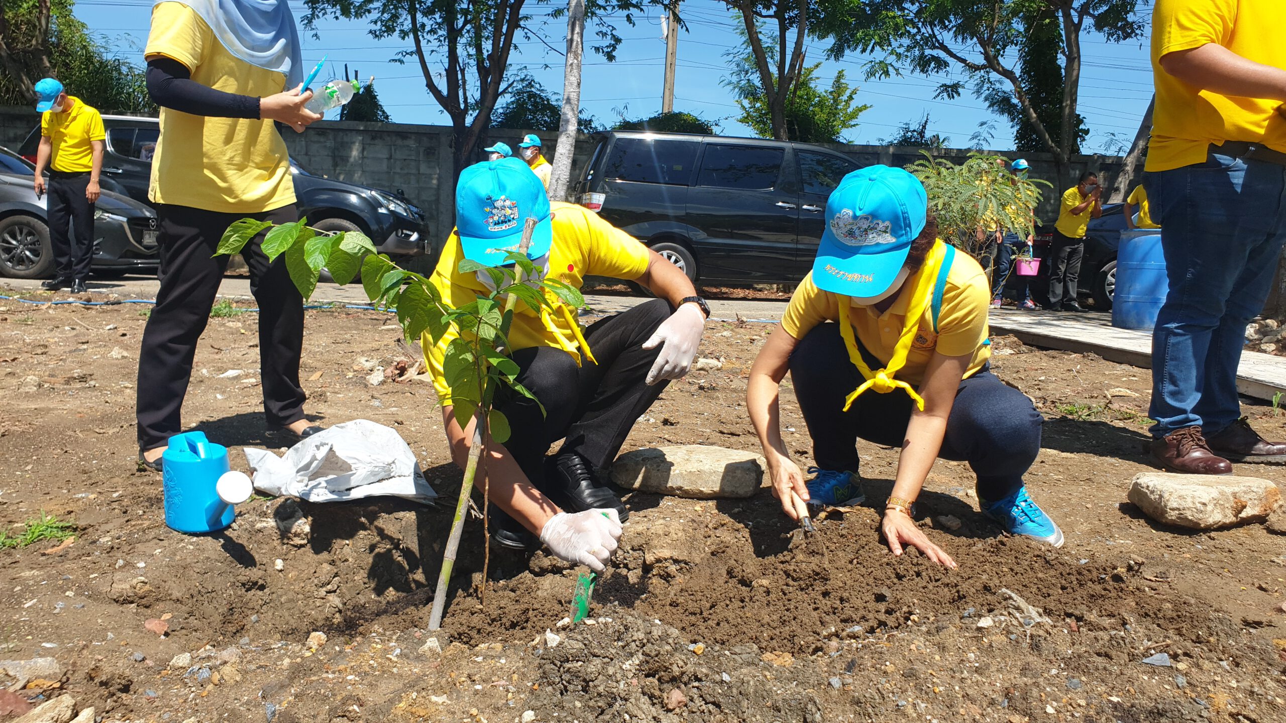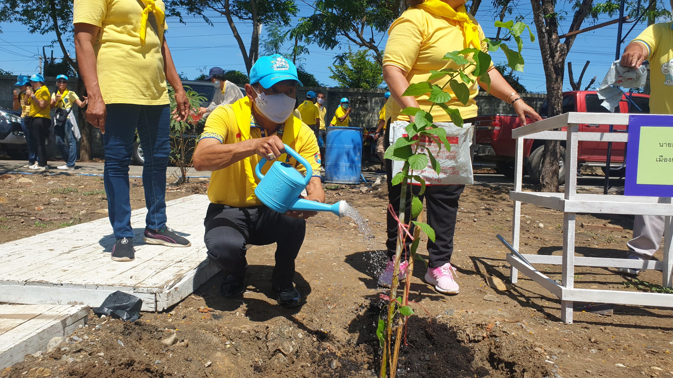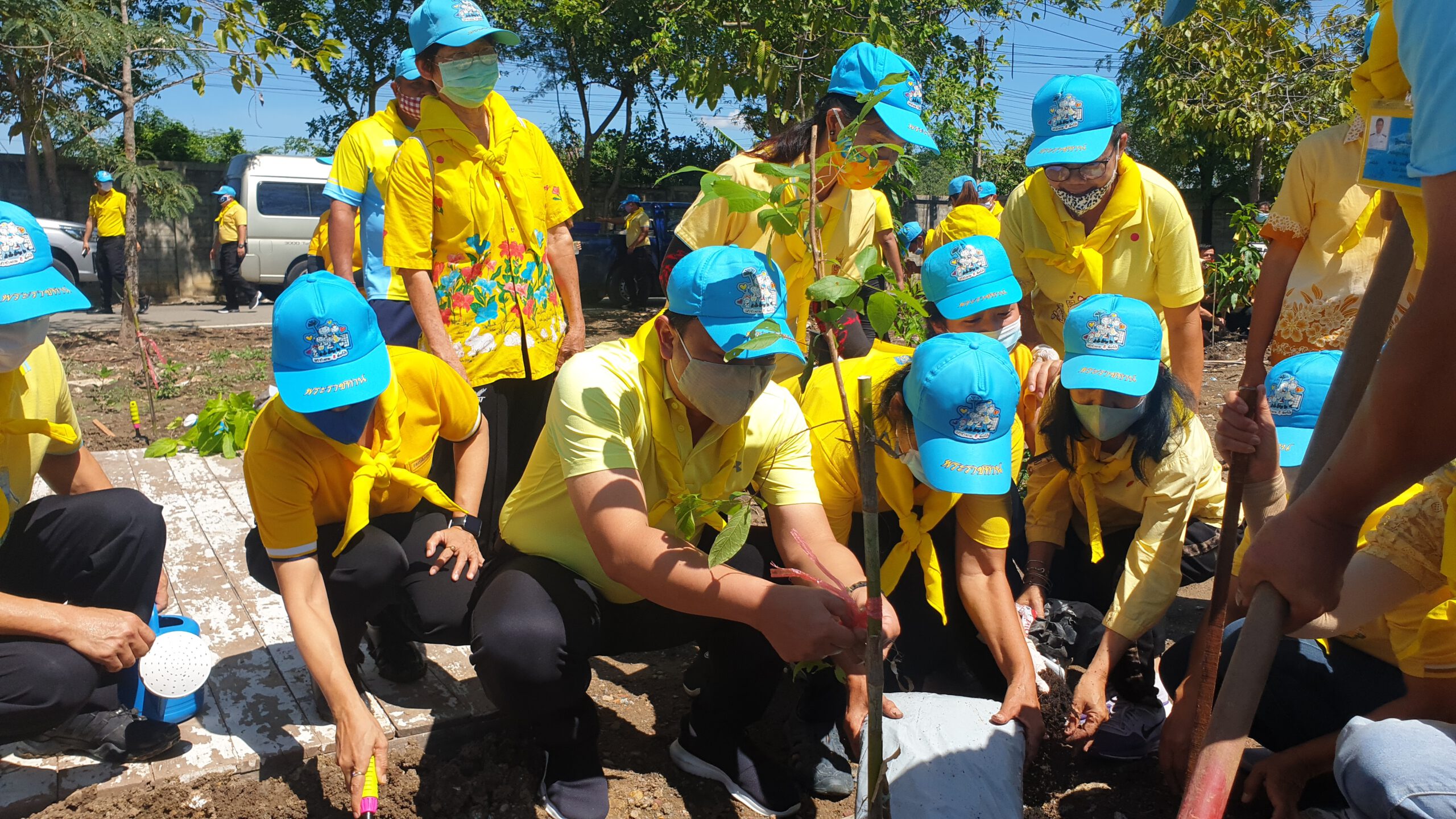 โดยผู้เข้าร่วมพิธีทั้งภาครัฐ ภาคเอกชน ทหาร ตำรวจ องค์กรปกครองส่วนท้องถิ่น ผู้นำชุมชน และจิตอาสา ได้ช่วยกันปลูกต้นไม้ที่มีดอกสีม่วง เช่น ต้นจามจุรี ต้นตะแบก ต้นอินทนิล และต้นจามจุรี เป็นต้น