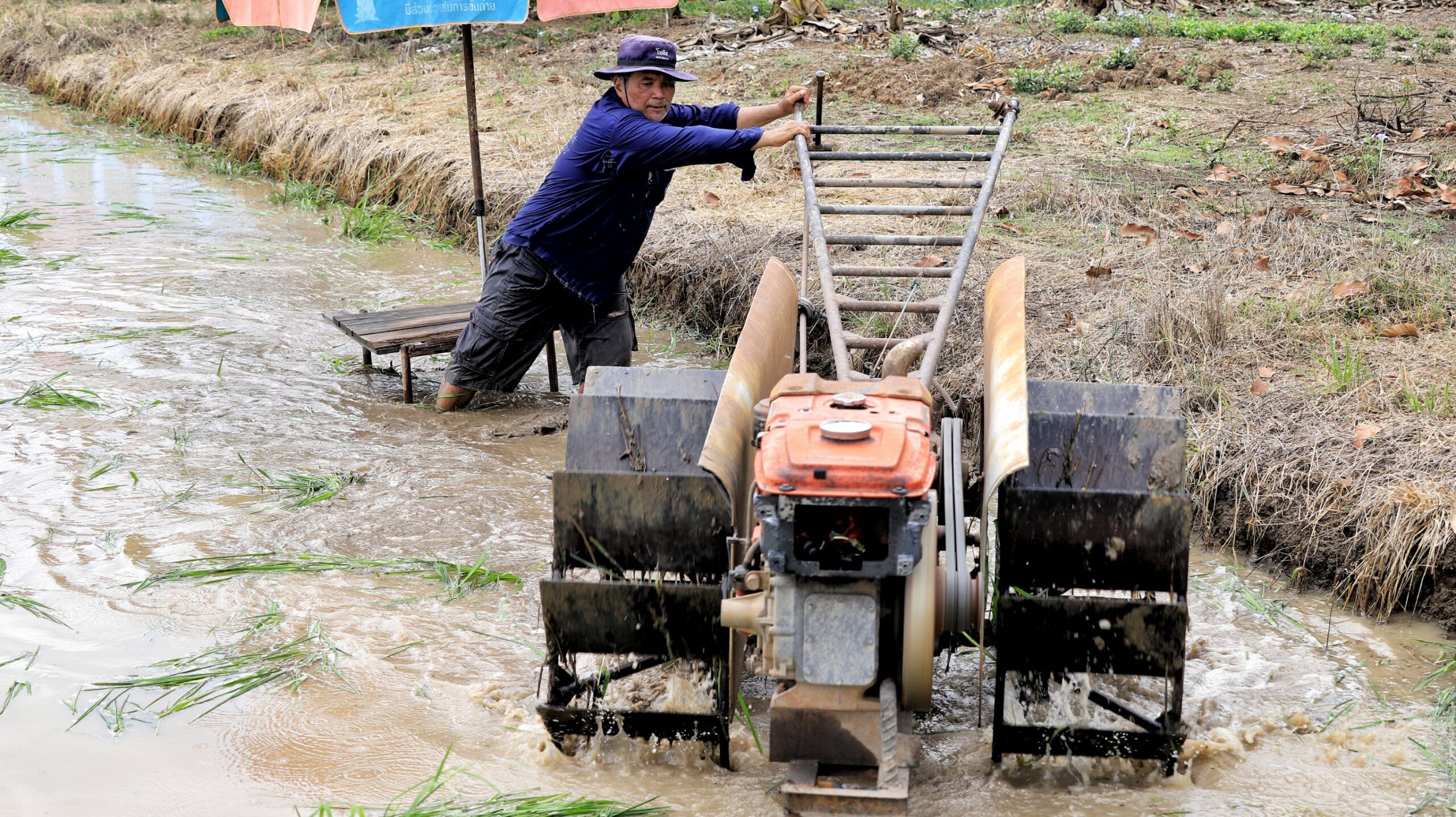 โดยชาวนาในพื้นที่ตำบลคลอง7 อำเภอคลองหลวง จังหวัดปทุมธานี เร่งนำรถไถ เครื่องจักรกลการเกษตร เพื่อมาไถนาย้ำเทือกอย่างขะมักเขม้น เป็นการเตรียมความพร้อมในการทำนาโดยเกษตรกรชาวนา ต้องเร่งลงมือหว่านข้าว ในช่วงต้นฤดูฝน ซึ่งน้ำฝน เป็นปัจจัยหลักของน้ำต้นทุนในการทำนา