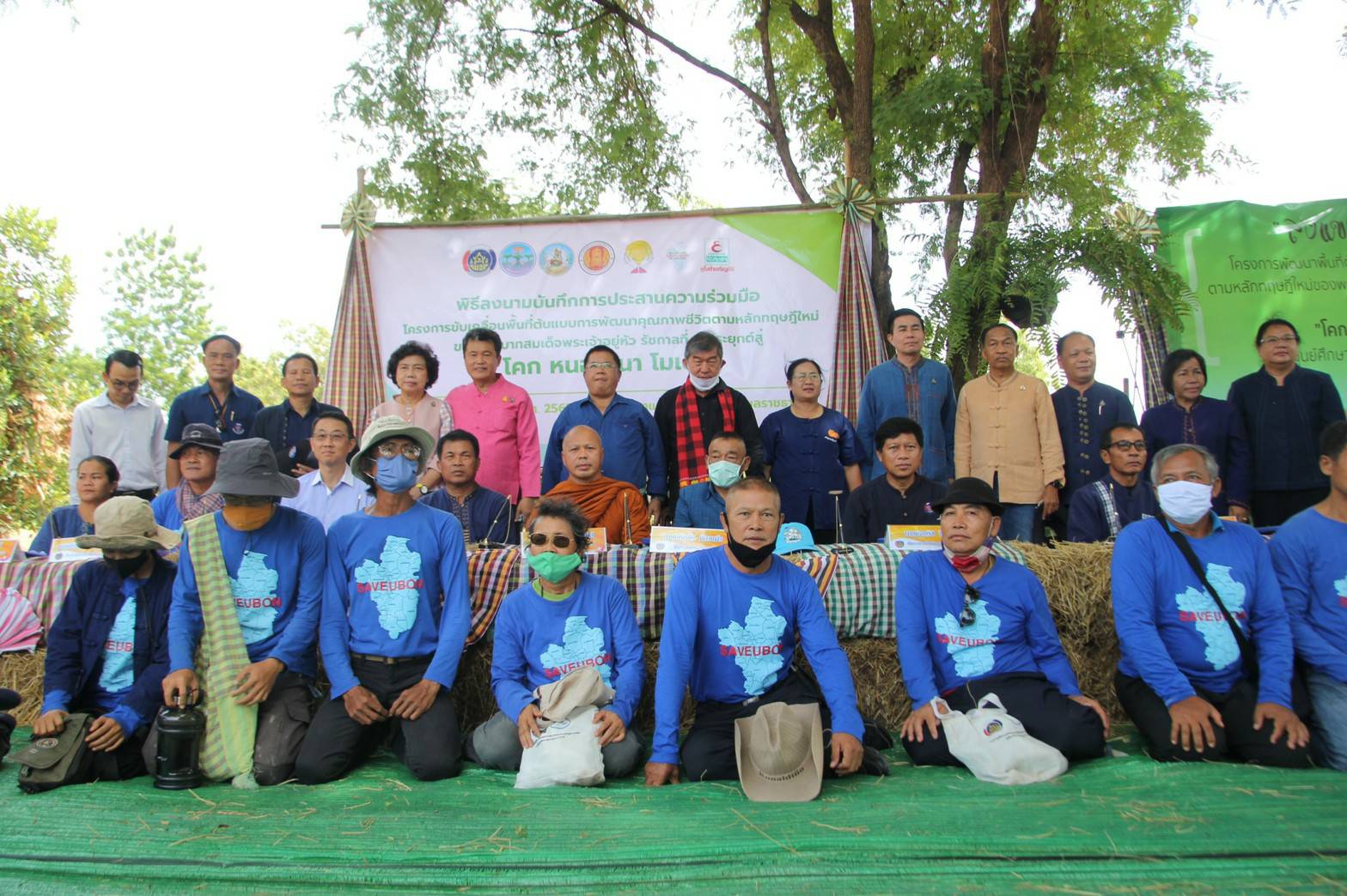 ทั้งนี้ มีการลงนามความร่วมมือ (MOU) ระหว่าง พระครูสุขุมวรรโณภาส เจ้าอาวาสวัดวังอ้อ เจ้าคณะตำบลหัวดอน ในฐานะผอ.ศูนย์พุทธธรรมสมเด็จพระมหาธีราจารย์ จ.อุบลราชธานี นายเกริกชัย ผ่องแผ้ว ปลัดจ.อุบลราชธานี นายพันมหา ทองบ่อ ผอ.พัฒนาที่ดินจ.อุบลราชธานี นางราตรี สะดีวงศ์ รองผอ.วิทยาเกษตรและเทคโนโลยีอุบลราชธานี นายสมชาติ พงคพนาไกร กรรมการผู้จัดการบริษัท คูโบต้าเจริญชัย นายศุกดิ์ชัย บุญญะบาล ประธานเครือข่ายกสิกรรมธรรมชาติอุบลราชธานี เพื่อขับเคลื่อนโครงการฯร่วมกันด้วย