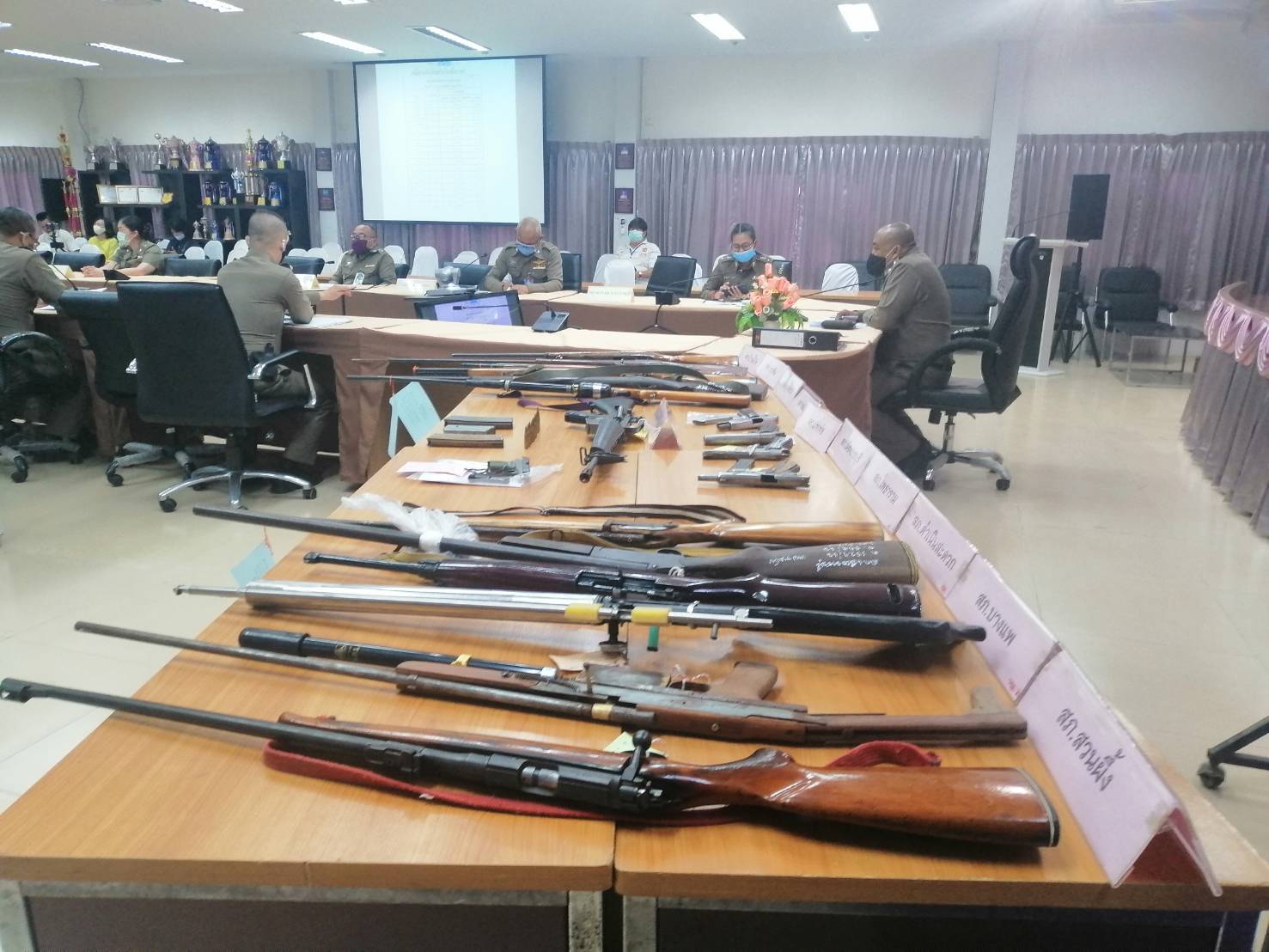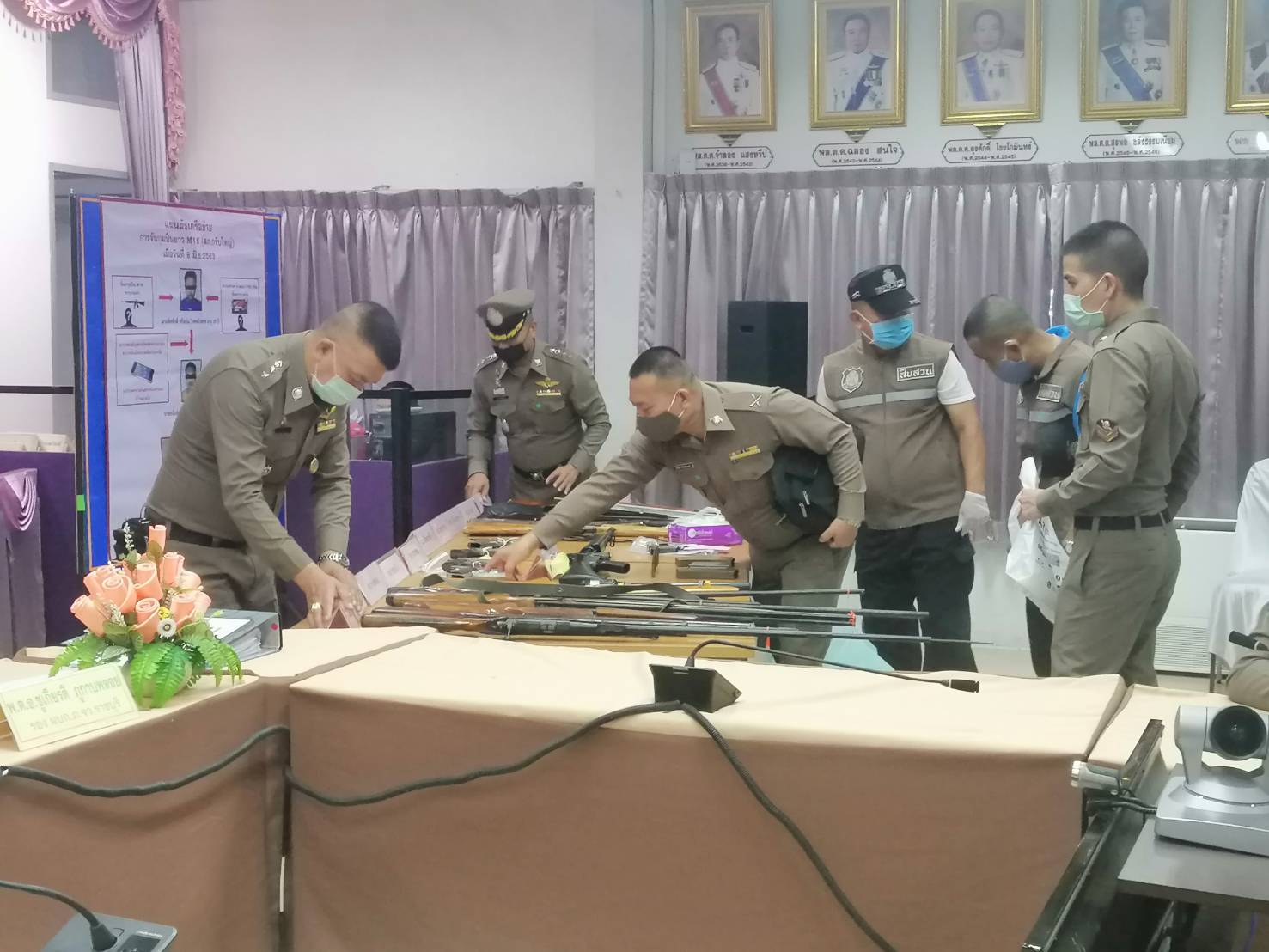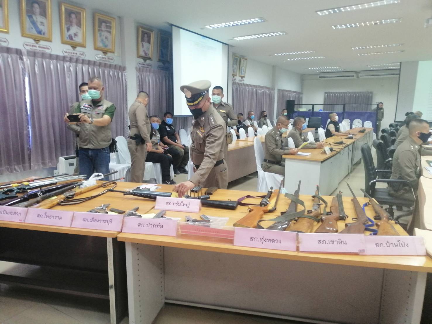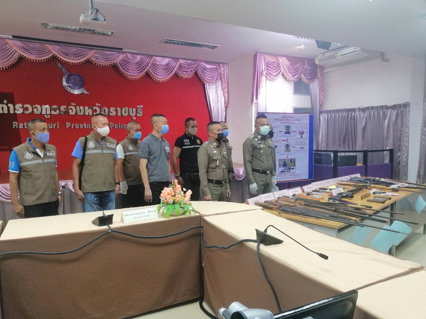 ราชบุรี ตำรวจภูธรจังหวัดแถลงผลการกวาดล้างอาชญากรรม จับกุมยึดของกลางอาวุธสงคราม ช่วงภัยโควิด 19.