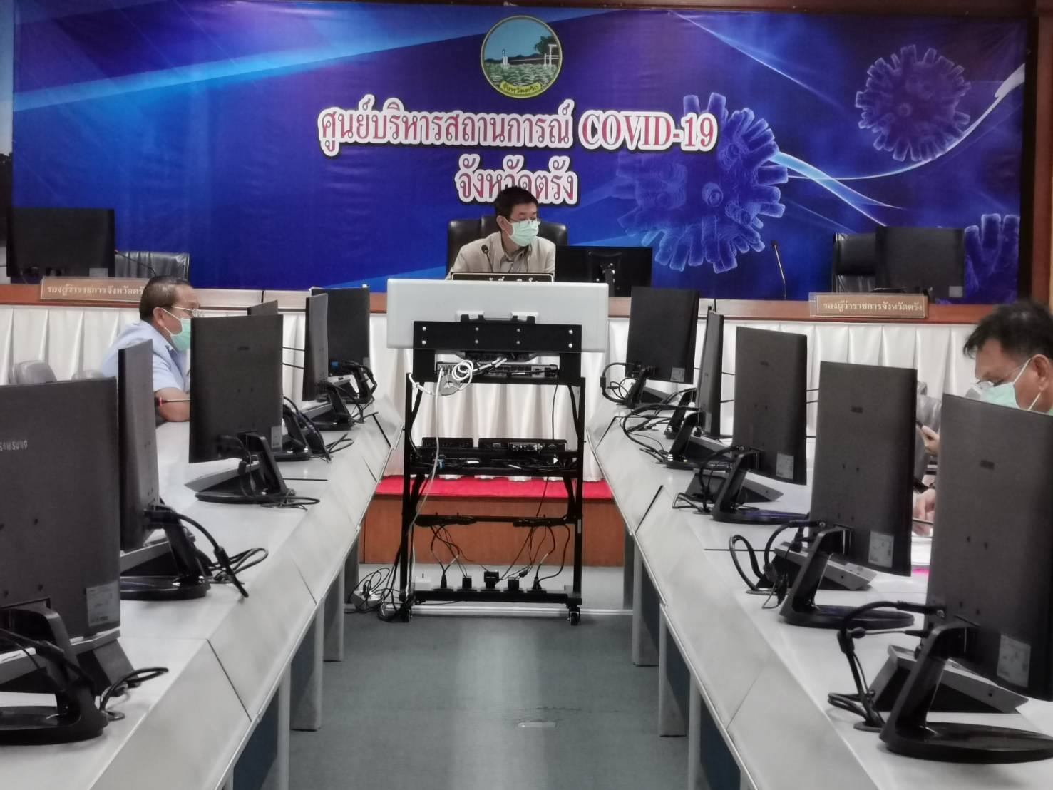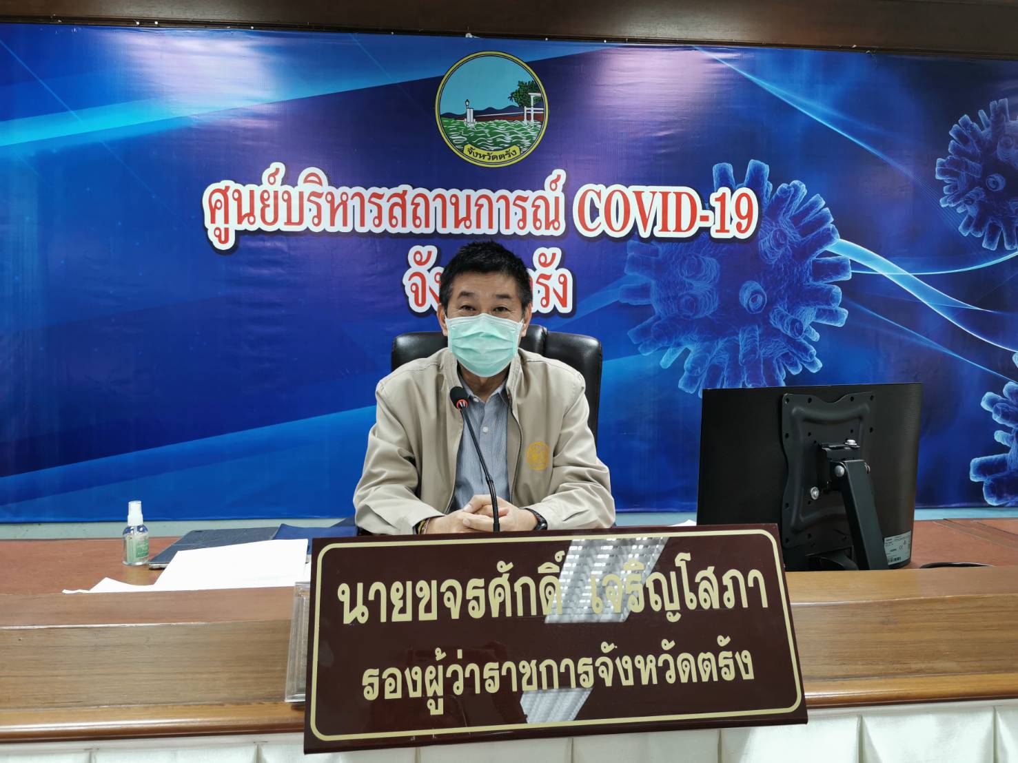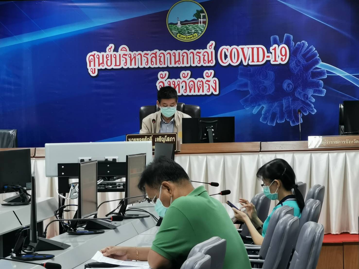 รองผู้ว่าราชการจังหวัดตรัง ประชุมติดตามสถานการณ์โควิด 19 พร้องเน้นย้ำการ์ดอย่าตก ซึ่งวันนี้เป็นวันที่ 64 ที่จังหวัดตรังไม่พบผู้ติดเชื้อ