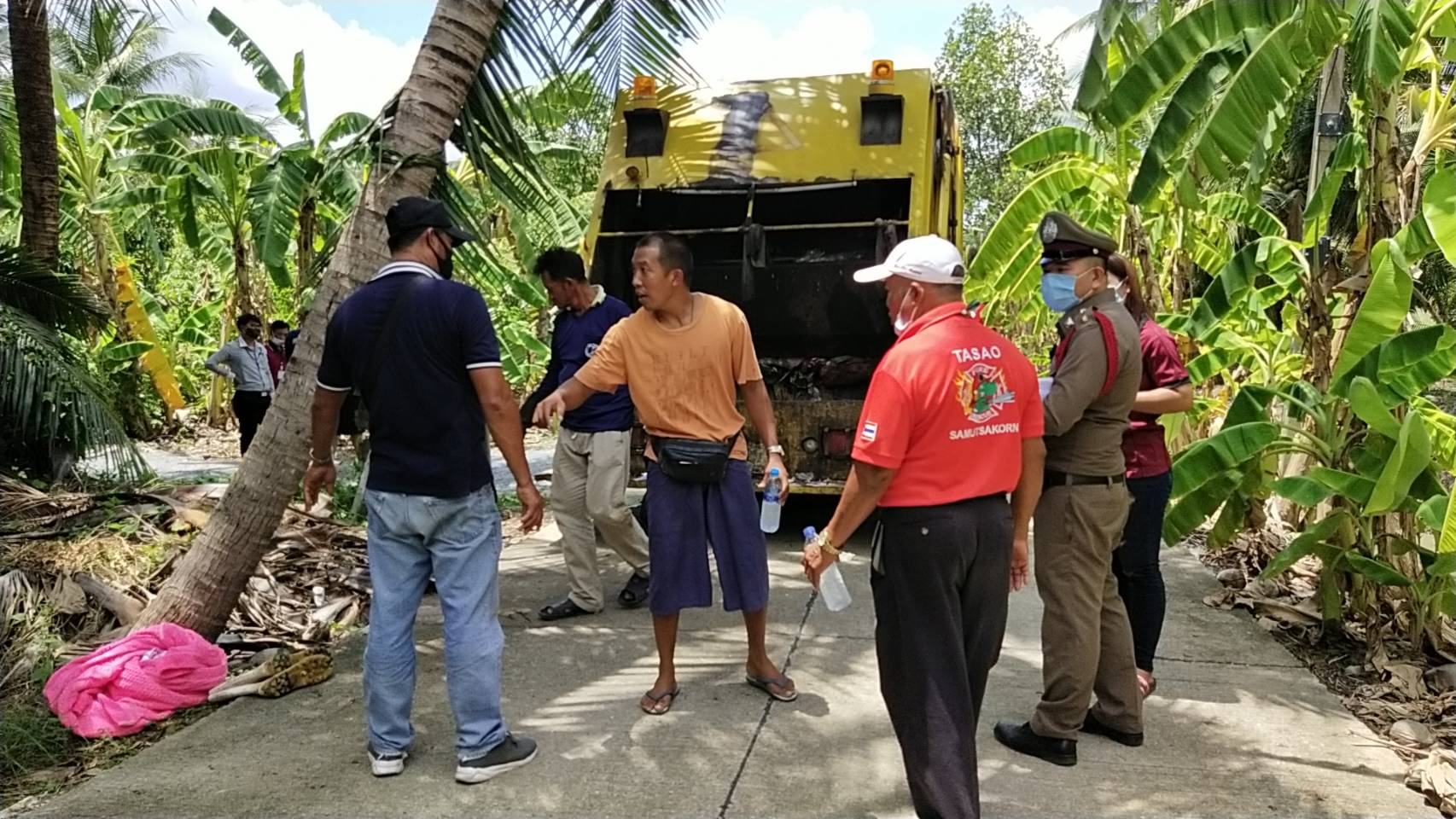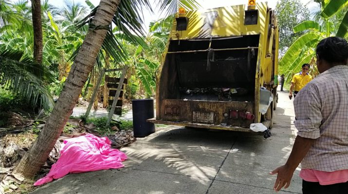 คนขับรถเก็บขยะอบต.ถอยรถชนต้นมะพร้าวทำให้คนงานเสียชีวิตคาที่