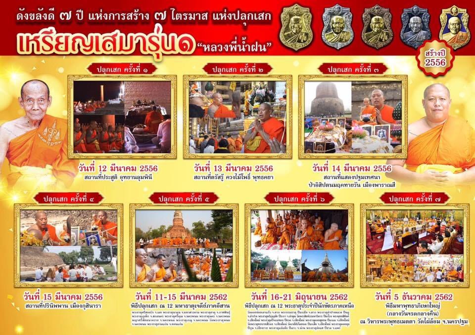 ปลุกเสกครั้งที่เจ็ดวันที่ 5 ธันวาคม 2562 พิธีมหาพุทธาภิเษกใหญ่ กลางวันจรดกลางคืน ณ วิหารพระพุทธะเมตตาวัดไผ่ล้อมจังหวัดนครปฐมและในวาระสุดท้าย การเจริญพระพุทธมนต์สมโภชวัตถุมงคลเหรียญเสมารุ่นหนึ่งหลวงพี่น้ำฝน