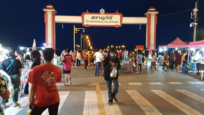 โดยจากการสังเกตพบว่าส่วนใหญ่ประชาชนและนักท่องเที่ยวให้ความร่วมมือเป็นอย่างดี มีการลงชื่อในสมุด ตรวจวัดอุณหภูมิร่างกาย พร้อมกับล้างมือด้วยเจลแอลกอฮอล์ก่อนทุกครั้งที่จะเดินเข้าตลาดทุกคน อีกทั้งยังสังเกตพบว่าได้มีการจัดวาง ระยะห่างระหว่างร้านค้าโดยมีเครื่องกั้น การสวมใส่หน้ากากอนามัยขณะขายสินค้า และที่บริเวณสะพานสราญวิถีมีประชาชนและนักท่องเที่ยวเข้าไปออกกำลังกาย และนั่งพักผ่อนดื่มด่ำกับบรรยากาศยามเย็นบนสะพานสราญวิถีจำนวนมาก เช่นกัน