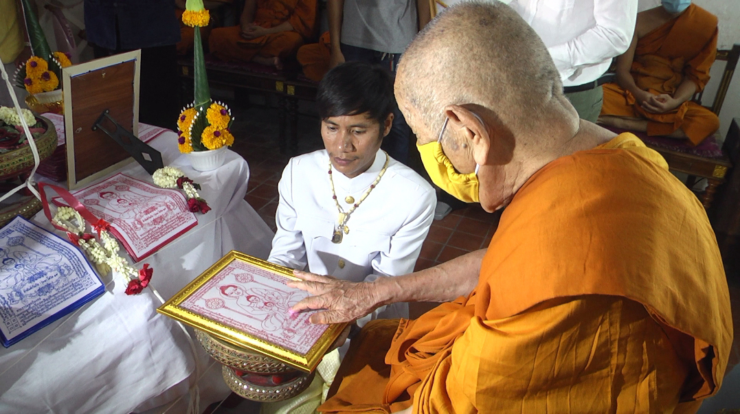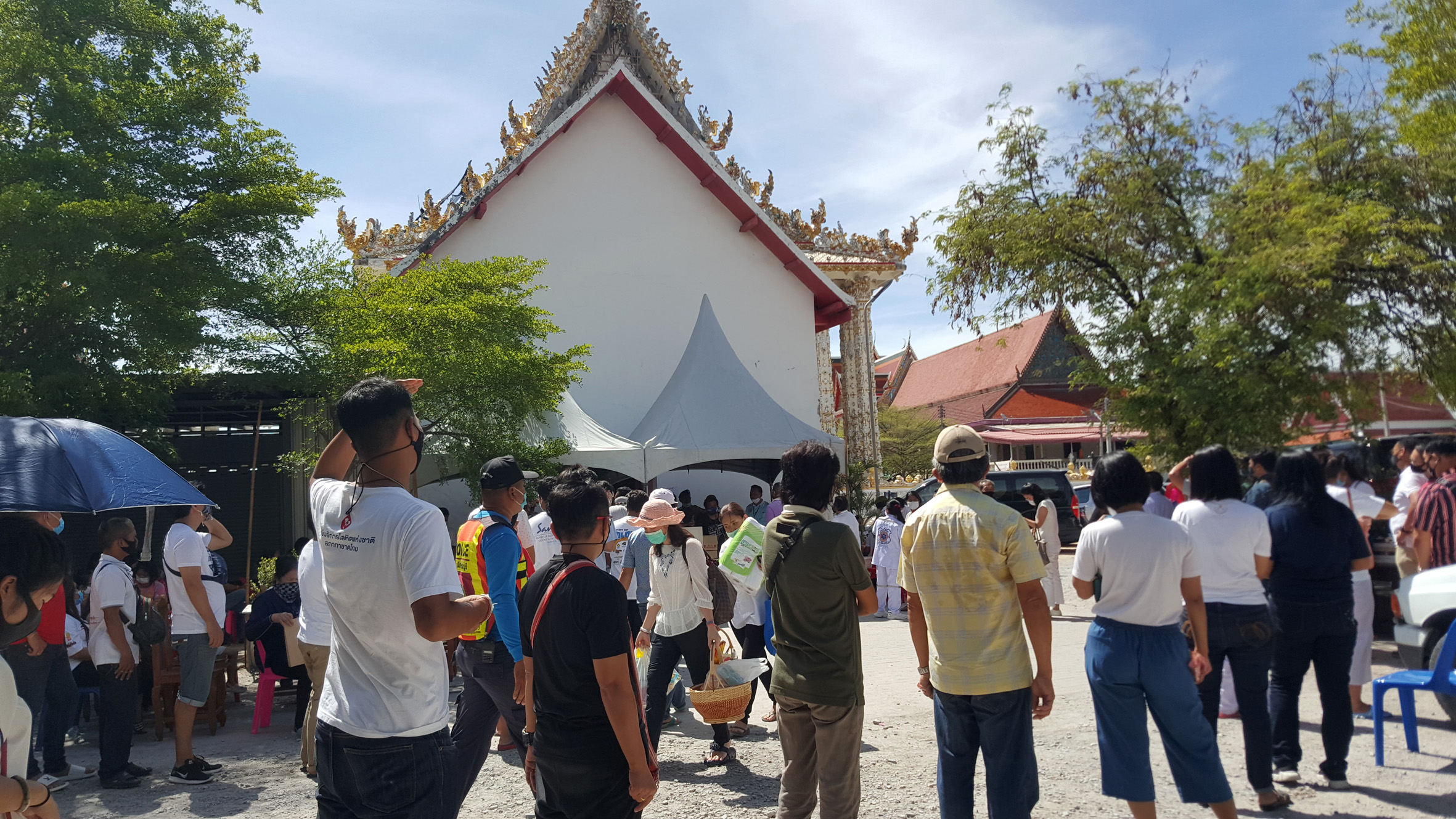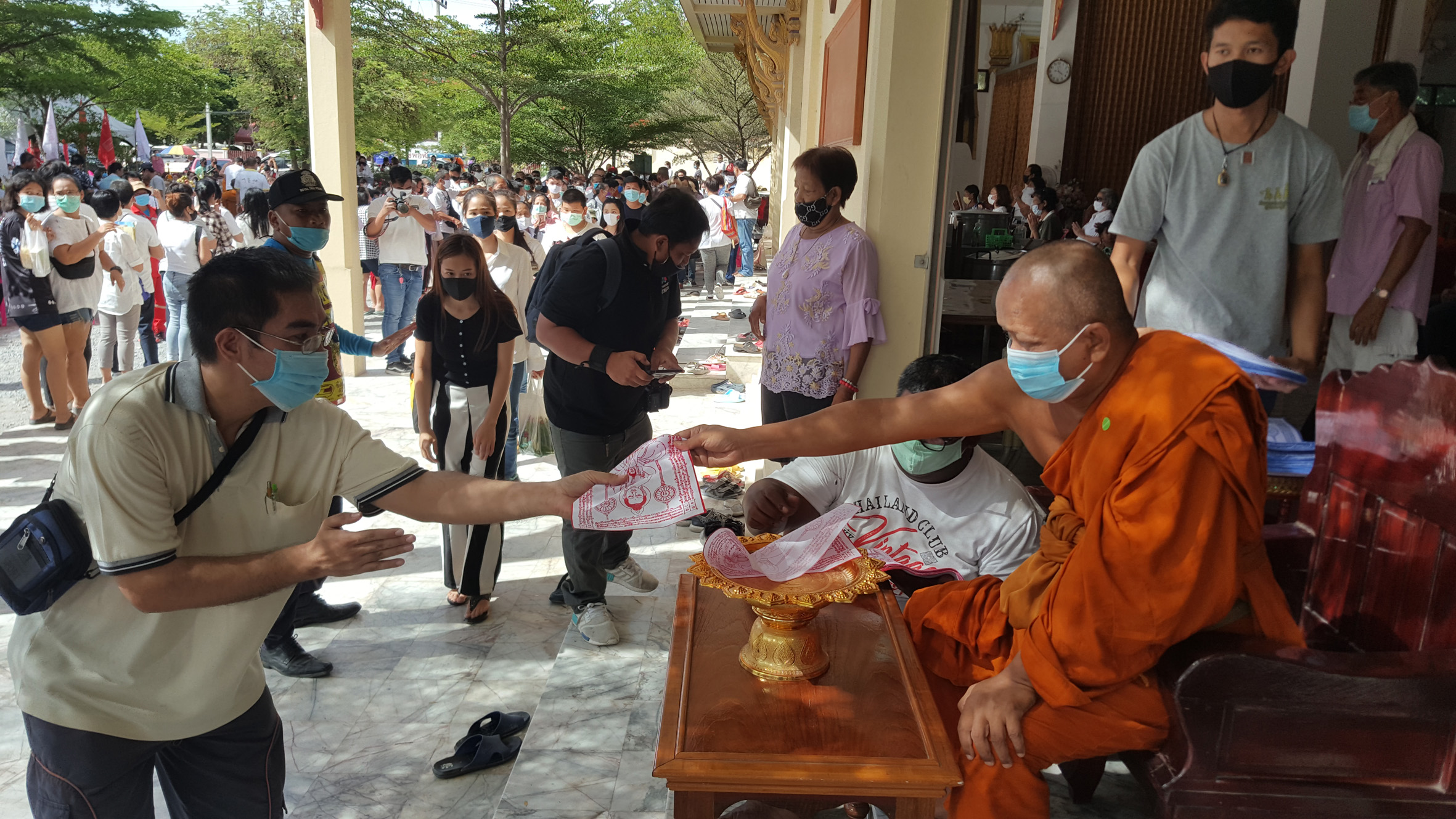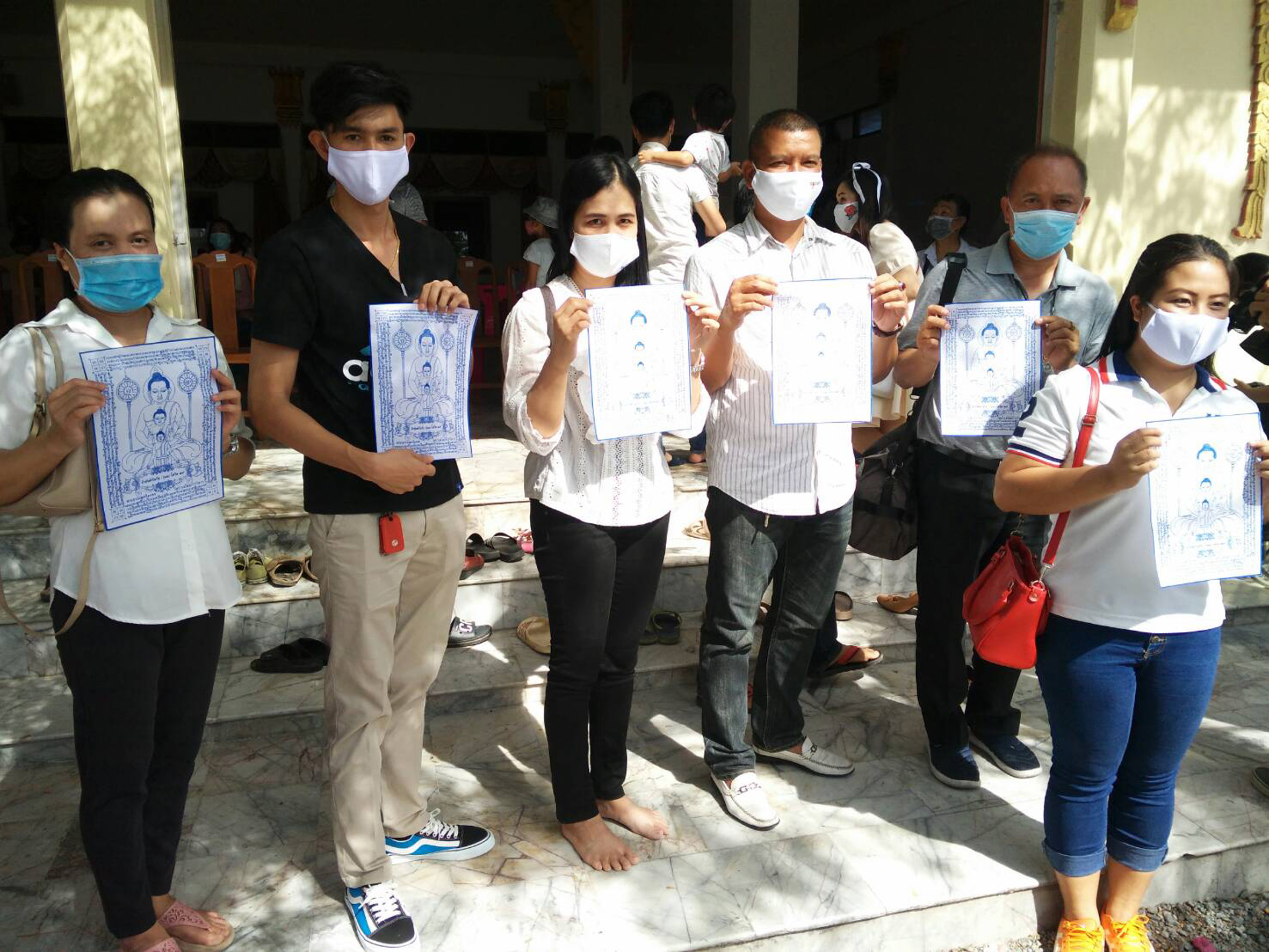 สุพรรณบุรี ประชาชนแห่รับแจกผ้ายันต์ปลุกเสกในโบสถ์มหาอุตม์วัดป่ากันโควิด-19