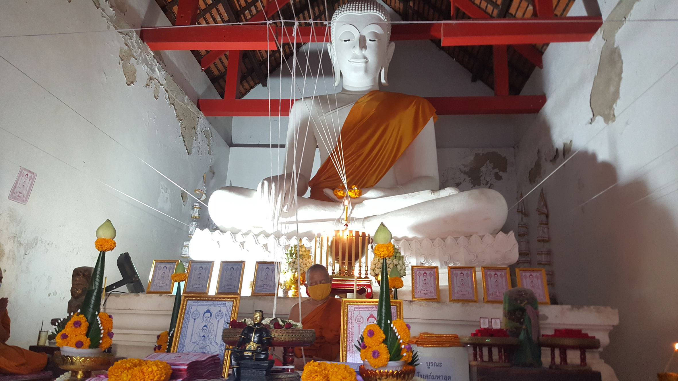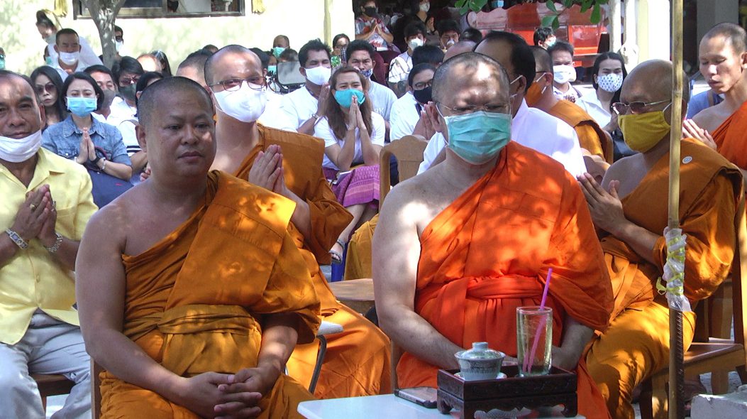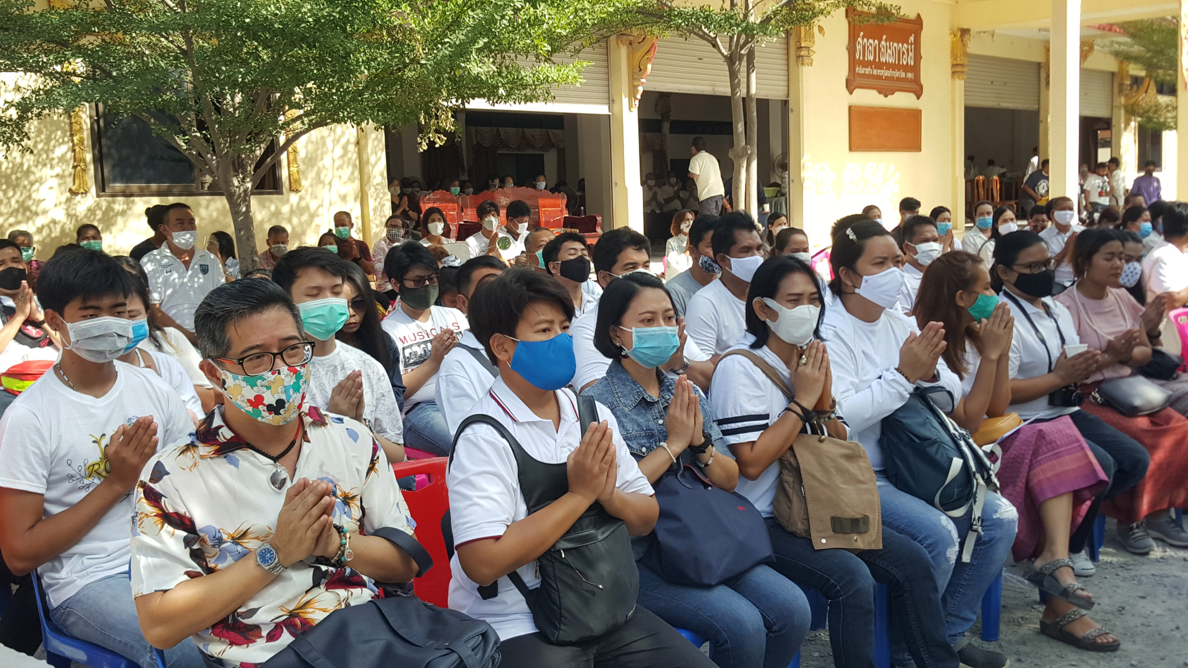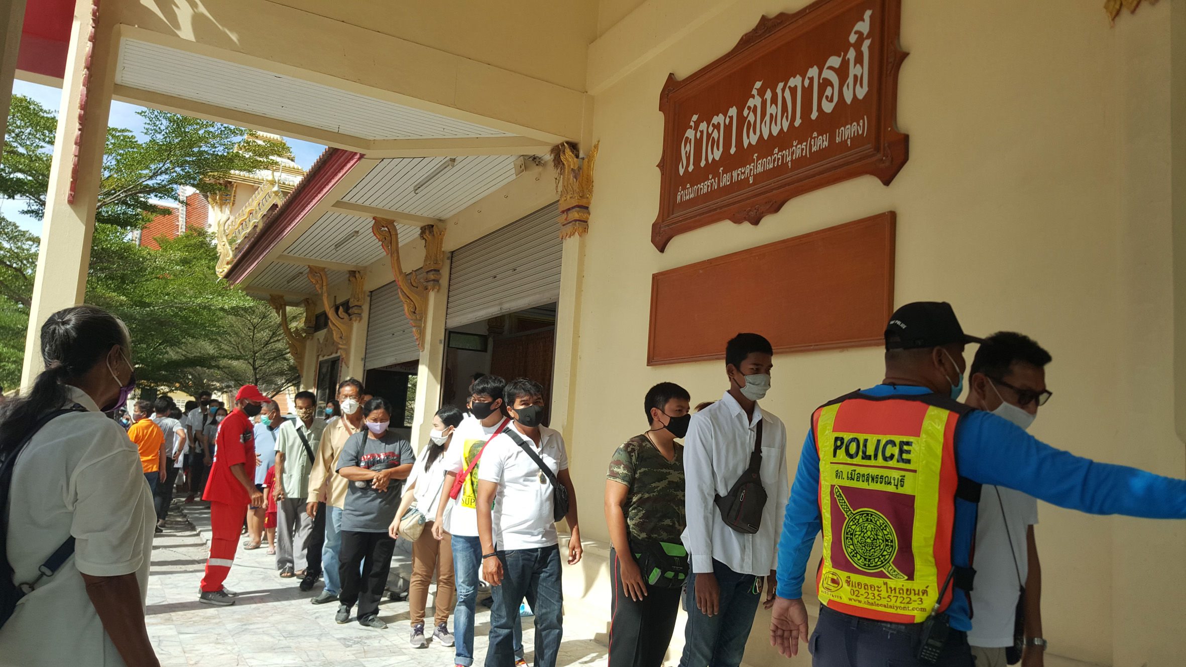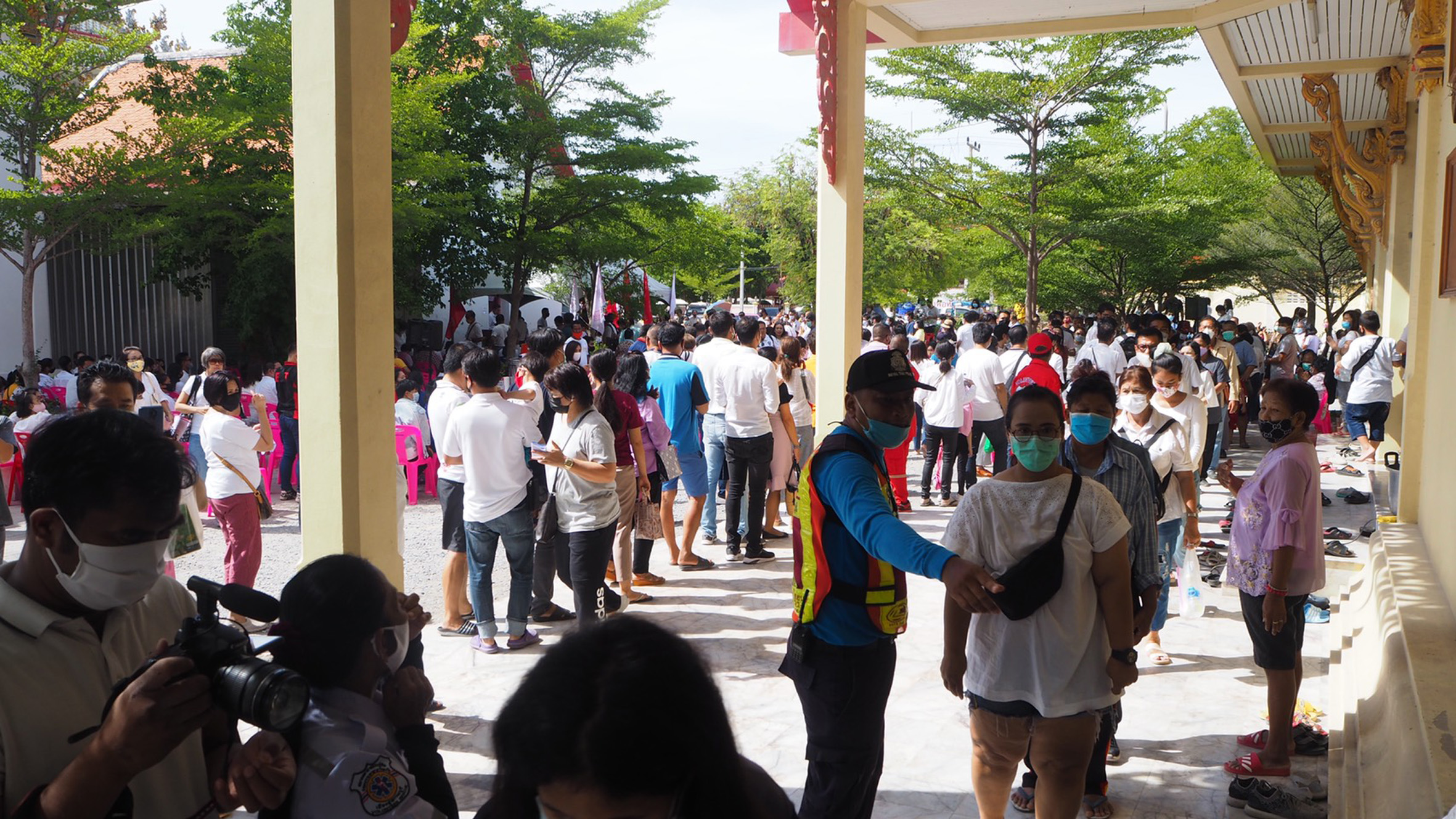 สุพรรณบุรี ประชาชนแห่รับแจกผ้ายันต์ปลุกเสกในโบสถ์มหาอุตม์วัดป่ากันโควิด-19