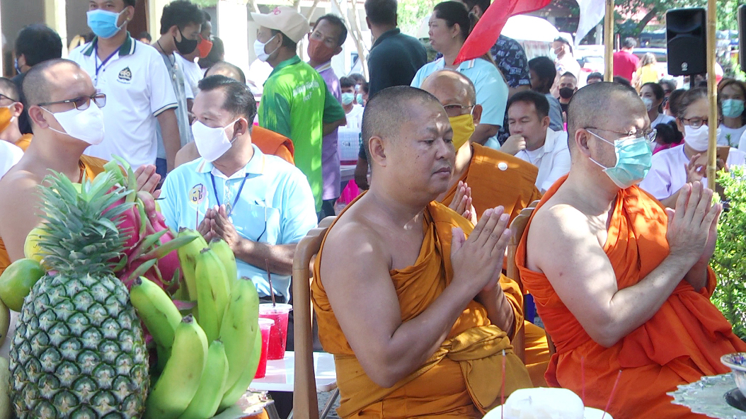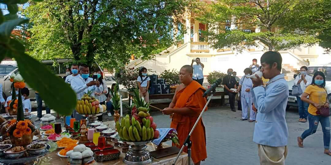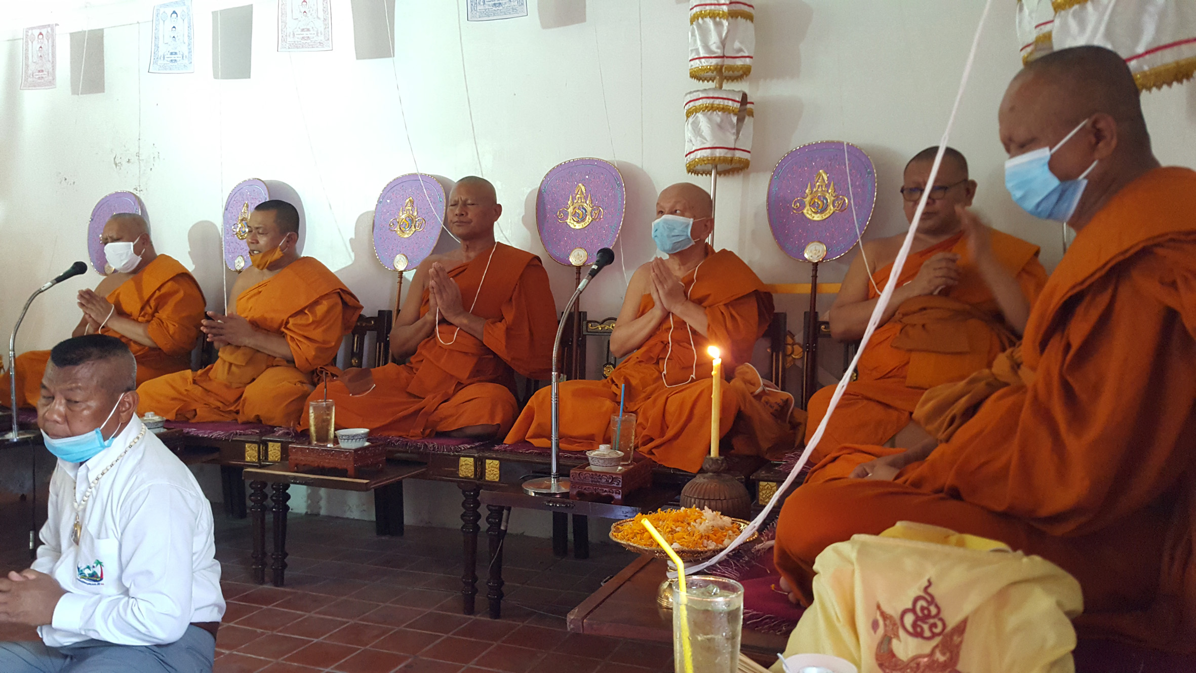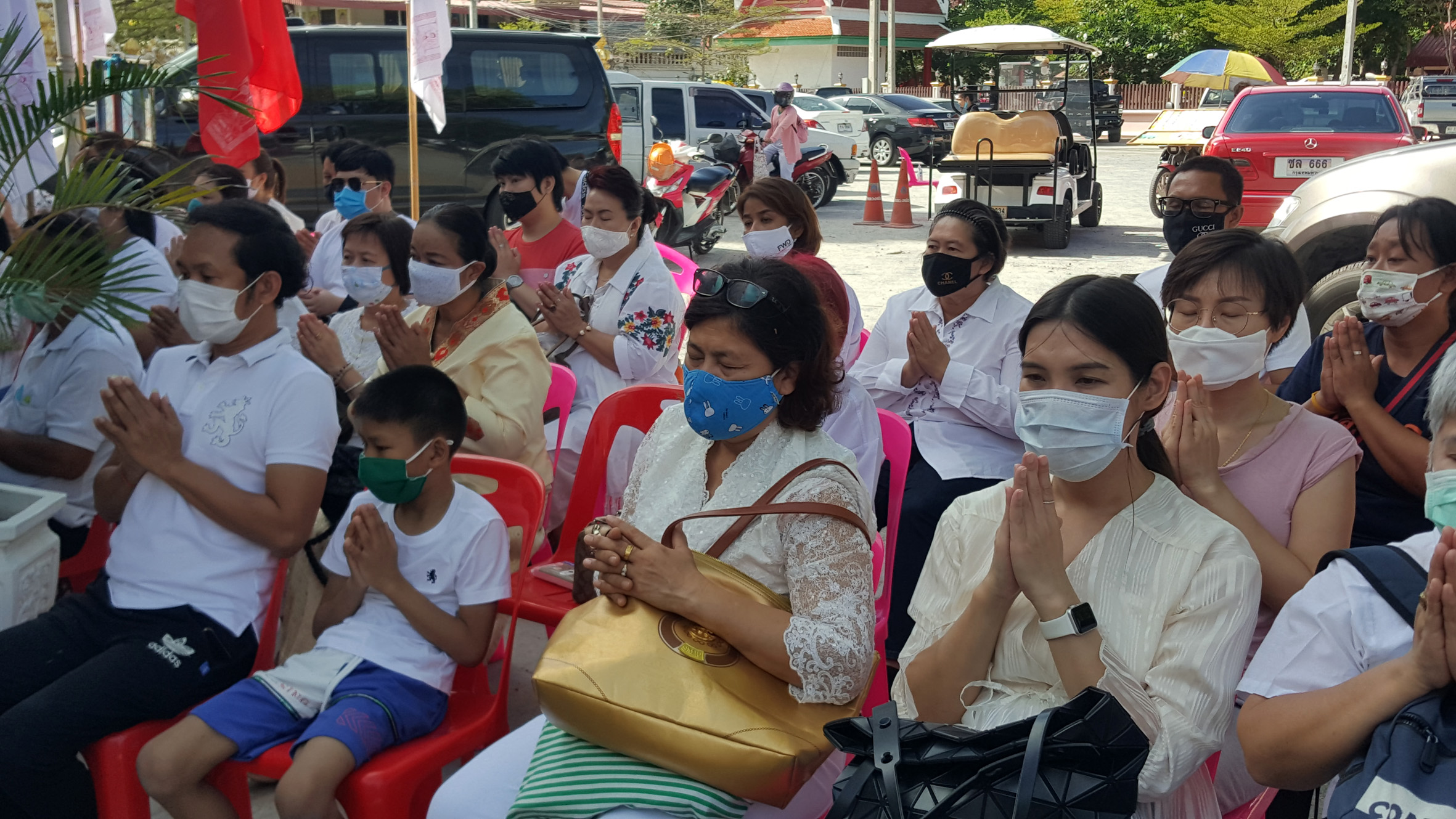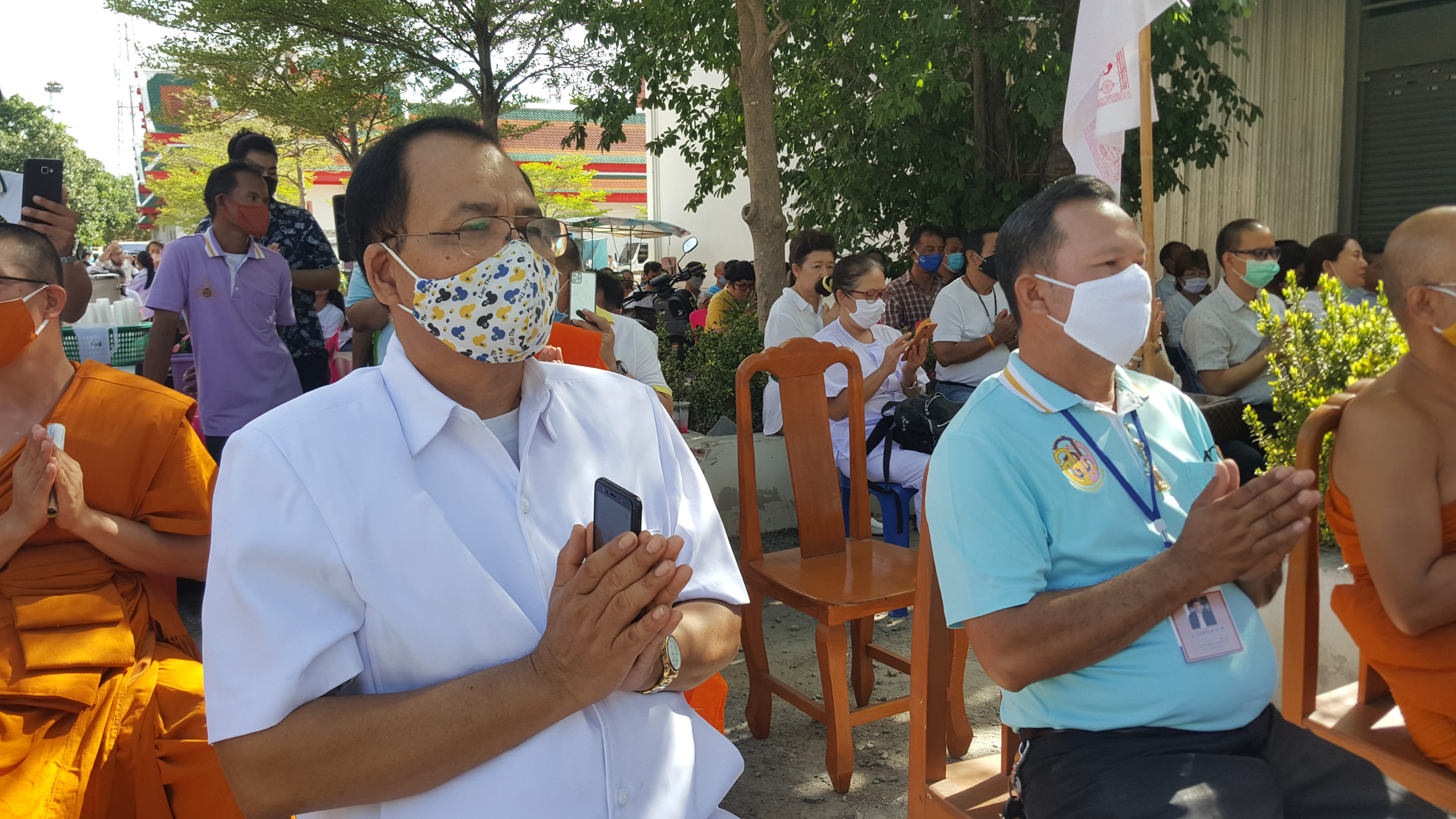 สุพรรณบุรี ประชาชนแห่รับแจกผ้ายันต์ปลุกเสกในโบสถ์มหาอุตม์วัดป่ากันโควิด-19