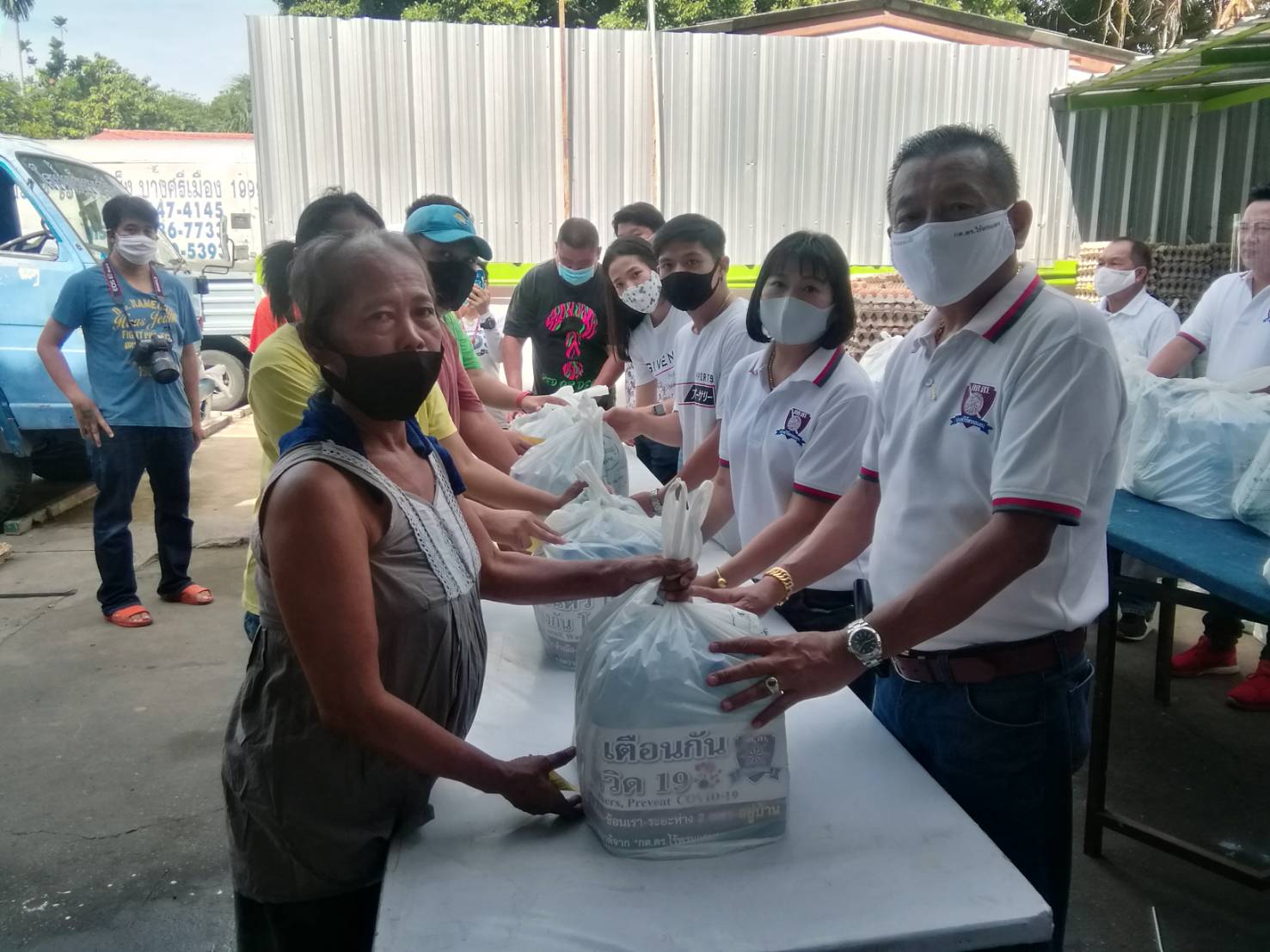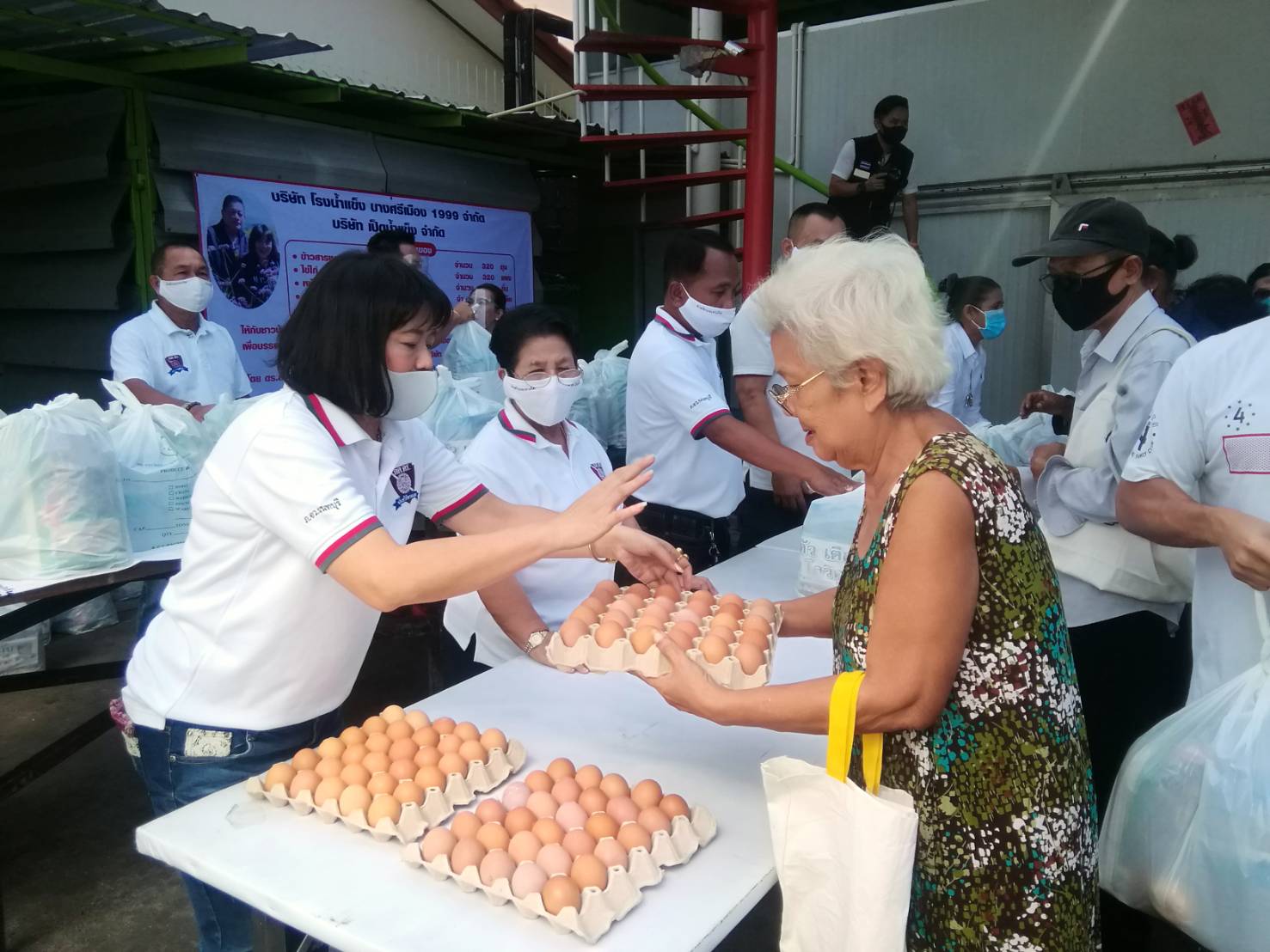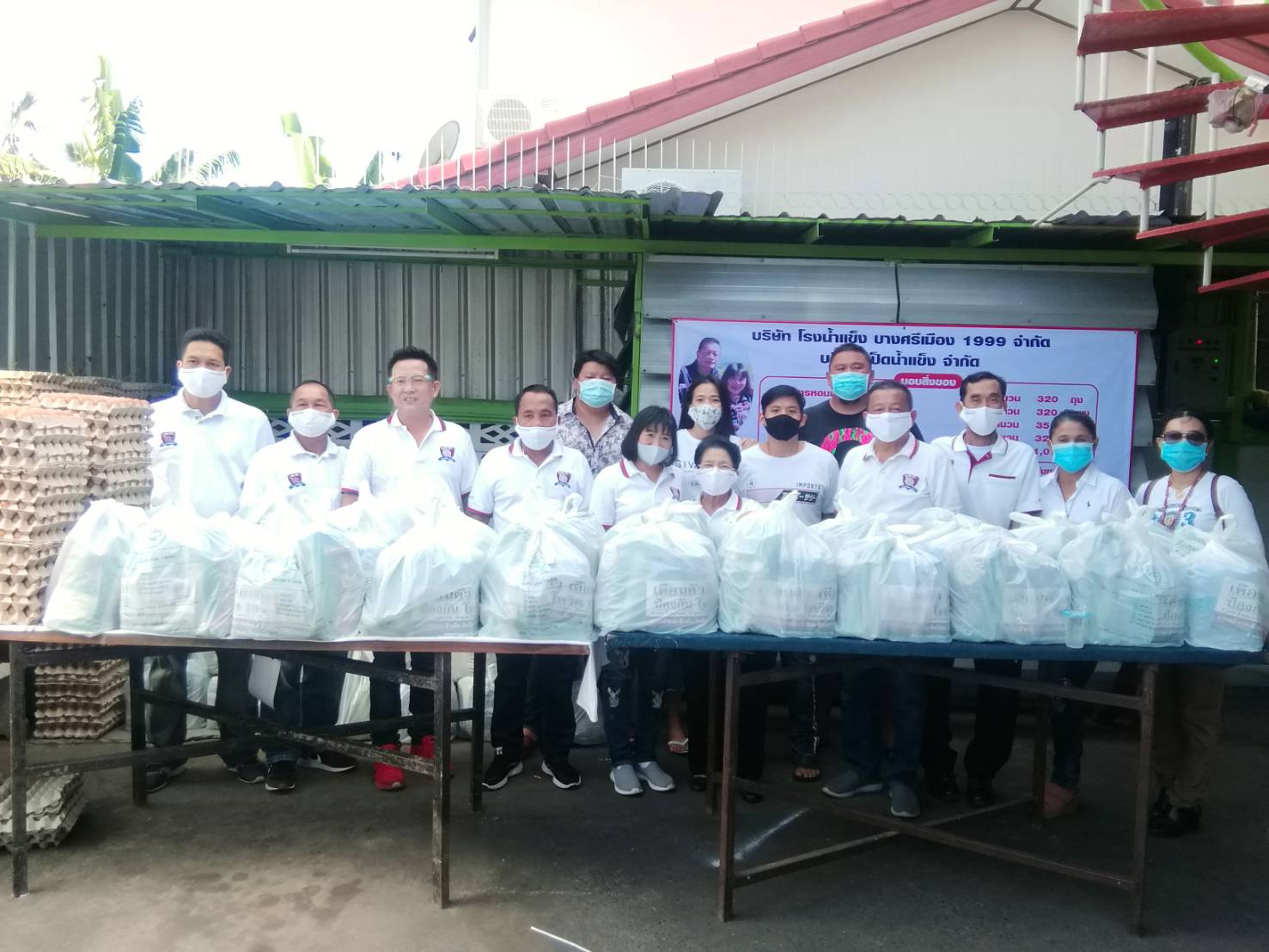 เสี่ยโรงน้ำแข็งย่านบางศรีเมือง แจกถุงยังชีพให้กับชุมชนใกล้เคียง