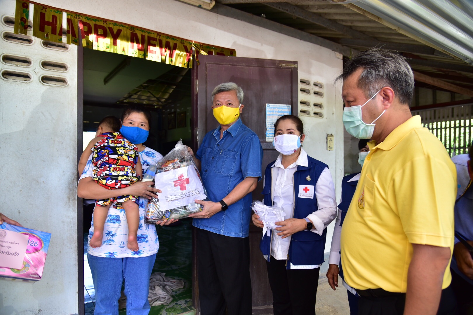 โอกาสเดียวกันนี้ ผู้ว่าราชการจังหวัดนครปฐมได้มอบหมายให้รองผู้ว่าราชการจังหวัดทั้ง 3 ท่าน หัวหน้าส่วนราชการ และคณะกรรมการเหล่ากาชาด แบ่งสายลงพื้นที่เยี่ยมเยียนประชาชน ครบทั้ง 7 อำเภอ โดยมอบเครื่องอุปโภคบริโภค ชุดนมผงสำหรับเด็ก และเงินสงเคราะห์ให้กับครอบครัวเด็กที่ได้รับผลกระทบจากสถานการณ์โควิด-19 ซึ่งการมอบเครื่องอุปโภคบริโภคในครั้งนี้ได้รับการสนับสนุนจากเหล่ากาชาดจังหวัดนครปฐม จำนวน 500 ชุด มอบให้กับประชาชนที่ได้รับผลกระทบ เพื่อสนับสนุนช่วยเหลือ และให้กำลังใจประชาชนที่ได้รับผลกระทบจากการแพร่ระบาดของโควิด-19