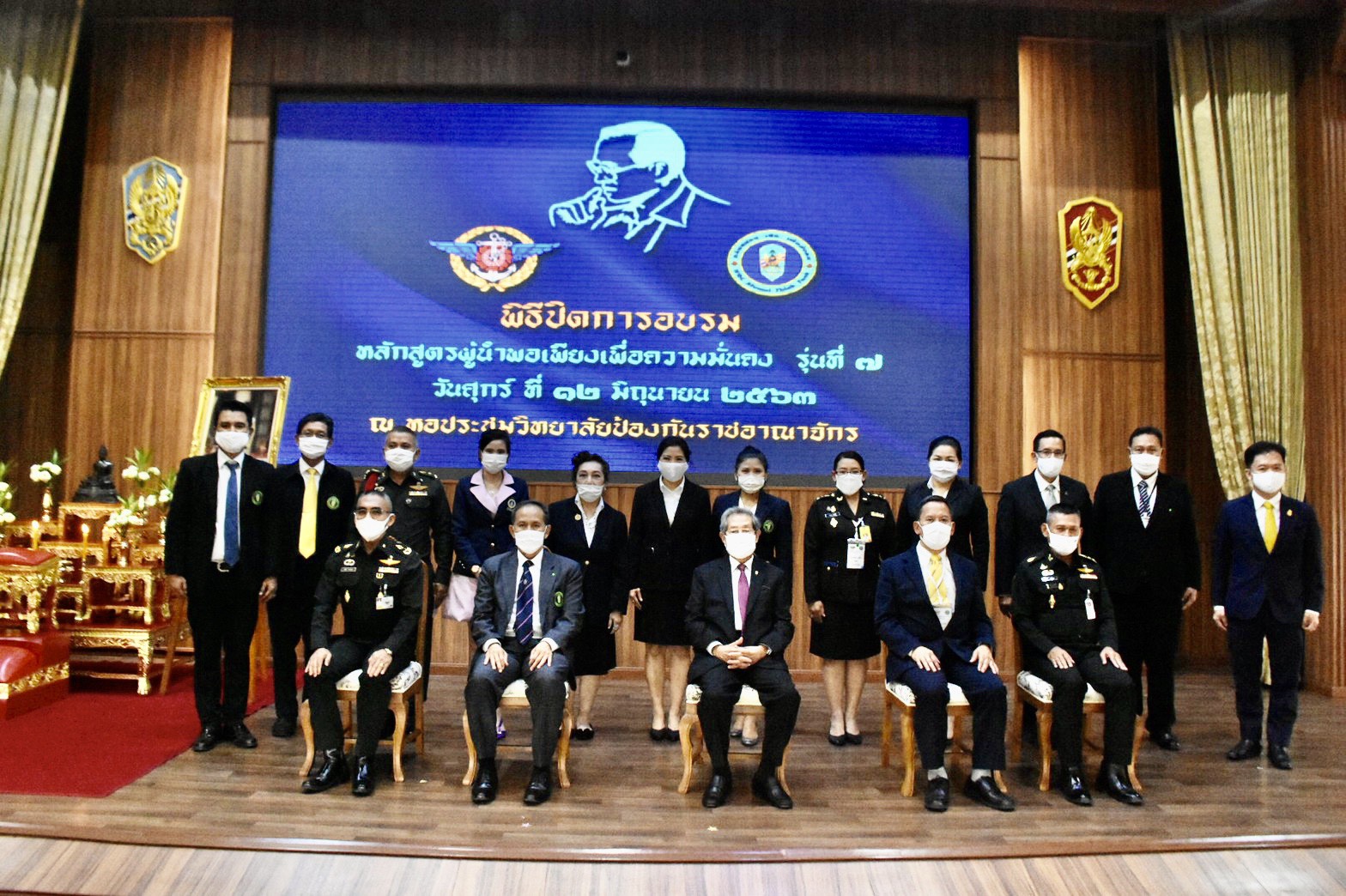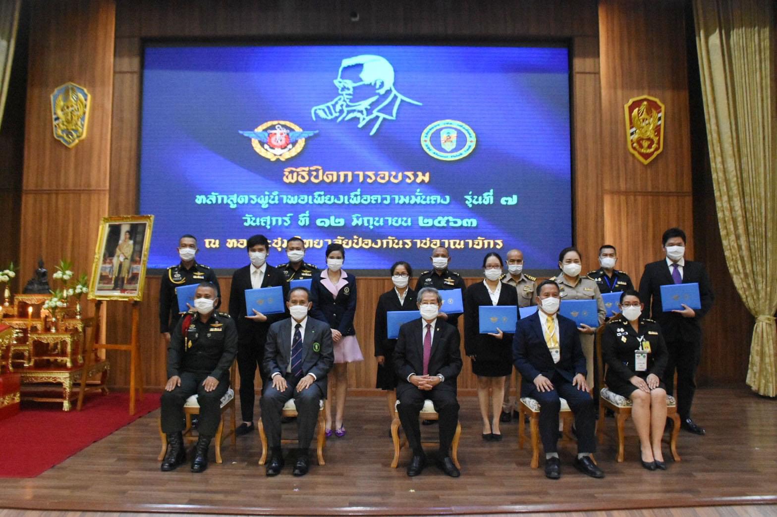 พลเอก บุญสร้าง เนียมประดิษฐ์ ประธานมูลนิธิ คลังสมอง วปอ. เพื่อสังคม ให้โอวาทแก่ผู้เข้าอบรมหลักสูตรผู้นำพอเพียงเพื่อความมั่นคง รุ่นที่ 7 เนื่องในโอกาสสำเร็จการศึกษา และได้รับเกียรติจาก พลเอก นเรนทร์ สิริภูบาล ผู้บัญชาการสถาบันวิชาการป้องกันประเทศ ผู้แทนผู้บัญชาการทหารสูงสุด เป็นประธานในพิธีปิดการอบรมหลักสูตรผู้นำพอเพียงเพื่อความมั่นคง