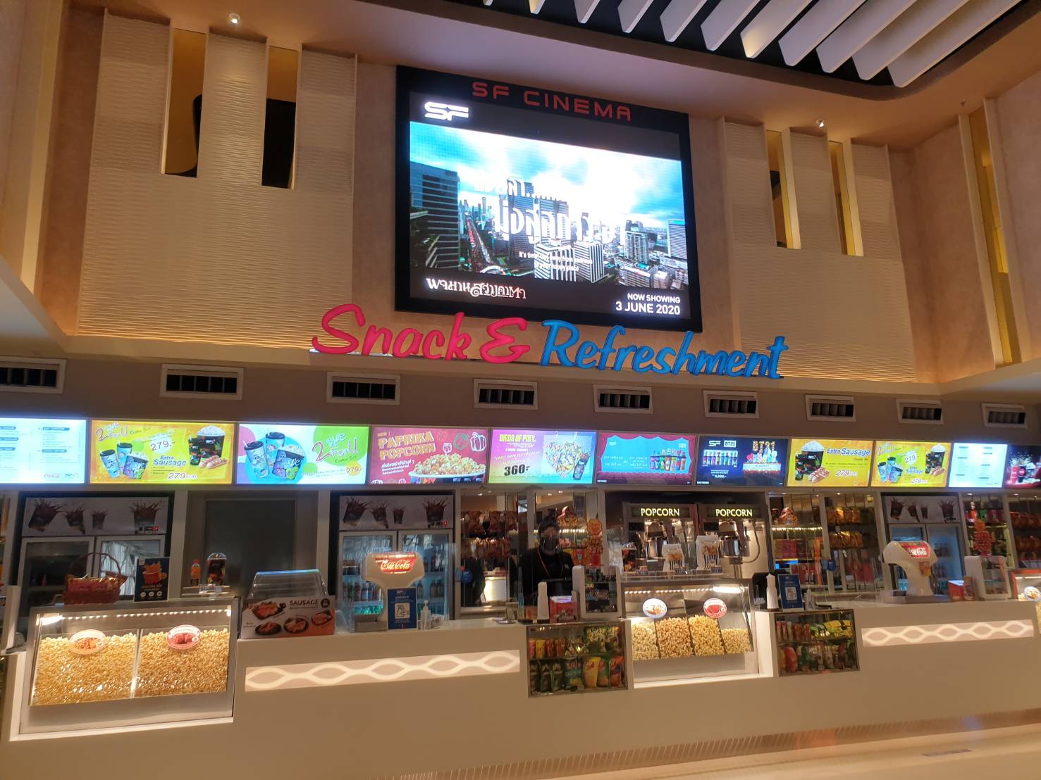 - การจำหน่ายบัตรชมภาพยนตร์ ป๊อบคอร์น และเครื่องดื่ม – ส่งเสริมการซื้อบัตรชมภาพยนตร์ผ่านทางเว็บไซต์ และแอปพลิเคชัน เพื่อลดการสัมผัส – เครื่องจำหน่ายอัตโนมัติ (Kiosk) บริเวณหน้าโรงภาพยนตร์ จะเปิดให้บริการตู้เว้นตู้ เพื่อเพิ่มระยะห่างระหว่างบุคคล – รับชำระเงินด้วยบัตรเครดิต บัตร SF+ และ E-Payment เพื่อลดการสัมผัส กรณีชำระเงินด้วยเงินสดจะต้องใช้ถาดรับและทอนเงิน