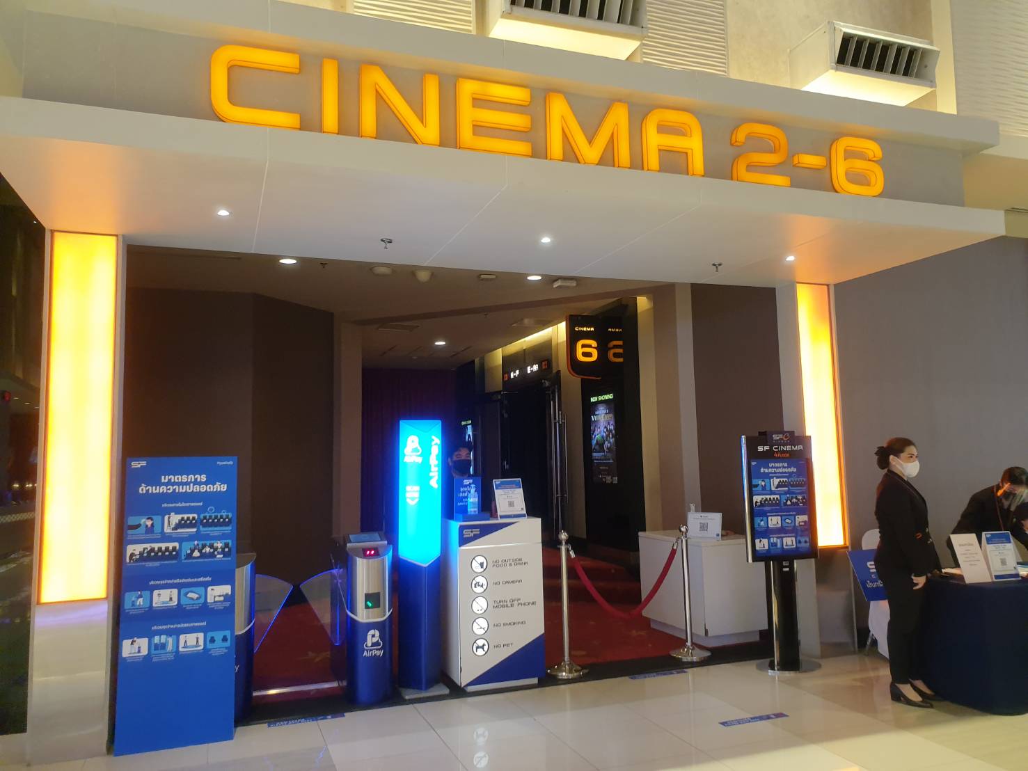 - การดูแลความสะอาดและความปลอดภัย ภายในโรงภาพยนตร์ – ตรวจวัดอุณหภูมิผู้ใช้บริการก่อนเข้าชมภาพยนตร์ ต้องไม่เกิน 37.5 องศาเซลเซียส – กำหนดทางเข้าออกที่ชัดเจน และให้ทยอยเข้าโรงภาพยนตร์ เพื่อรักษาระยะห่างที่เหมาะสม – กำหนดระยะห่างของการนั่งชมภาพยนตร์ โดยมีการเว้นที่นั่ง และมีแผงกั้นระหว่างที่นั่งชมภาพยนตร์ – พนักงานดูแลระบบปรับอากาศภายในโรงภาพยนตร์ เพื่อตรวจสอบให้มีอากาศถ่ายเทอยู่เสมอ – ทำการอบฆ่าเชื้อด้วยโอโซนภายในโรงภาพยนตร์ หลังปิดให้บริการทุกวัน – พนักงานทำความสะอาดพื้นที่ อุปกรณ์ ทุกจุดสัมผัสด้วยน้ำยาฆ่าเชื้อ และเปลี่ยนผ้ารองศีรษะที่เก้าอี้ ก่อนรอบฉาย ทุกรอบ