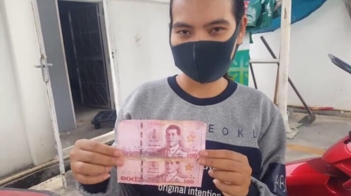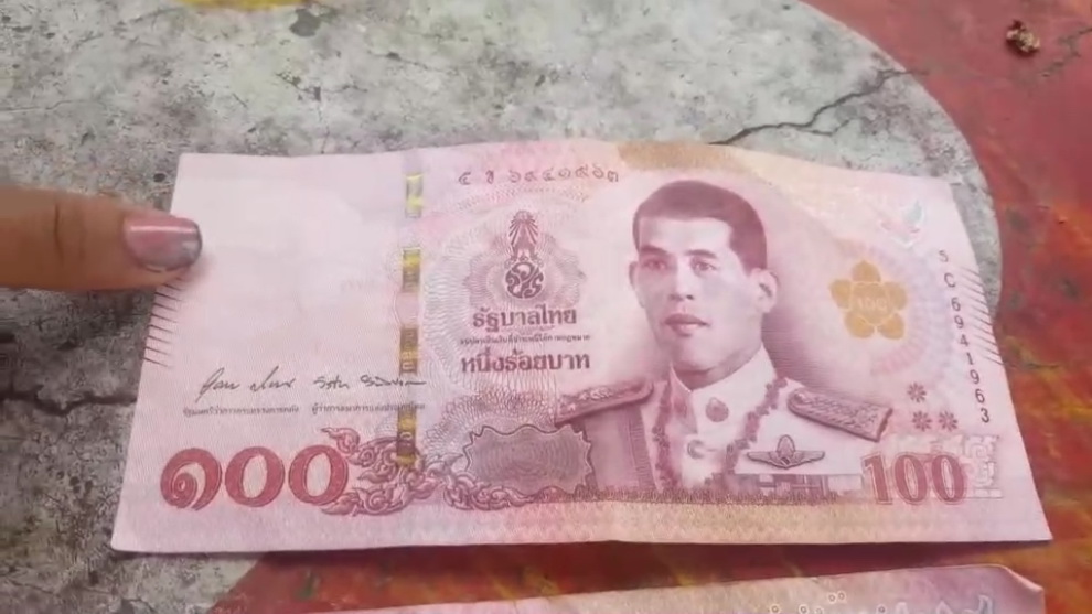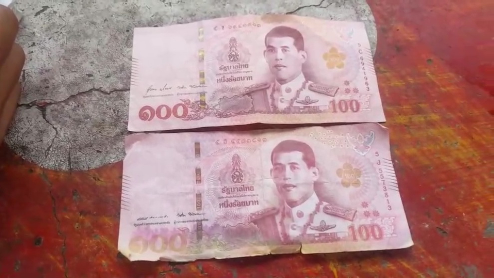 หากเป็นธนบัตรจริง จะเป็นกระดาษมีเส้นใยฝ้าย มีความแกร่ง ทนทาน ไม่ยุ่ยง่าย เมื่อจับสัมผัสจะให้ความรู้สึกแตกต่างจากกระดาษทั่วไป ของแท้ง มีลายน้ำจะส่องเห็นทั้งด้านหน้าด้านหลัง คำว่ารัฐบาลไทย เป็นลายนูน มีความมันแต่แบงค์ปลอมที่ได้มา เชื่อว่า ลักษณะถ่ายเอกกระสารจากเป็นกระดาษ A4 สองดูไม่มีลายน้ำ ลายพิมพ์ไม่มัน ไม่นูน ริมกระดาษยุ่ยด่างมีซีดจางออกเหลือง หมายเลขธนบัตร ฉบับ ที่ 5 ธ 5573813 ใช้กระดาษ A4 ถ่ายมา แล้วนำมาปะปนเสียดใสรวมกับฉบับจริง พับซ้อนกันทอนให้ลูกค้า ลูกค้าไม่มีโอกาสจะดูด้วยตาเปล่า เพราะเป็นช่วงเช้ามืด จึงอยากจะเตือนผู้คนทั่วไป ให้ระวัง ดูว่าเป็นแค่แบงค์ 100 เท่านั้น