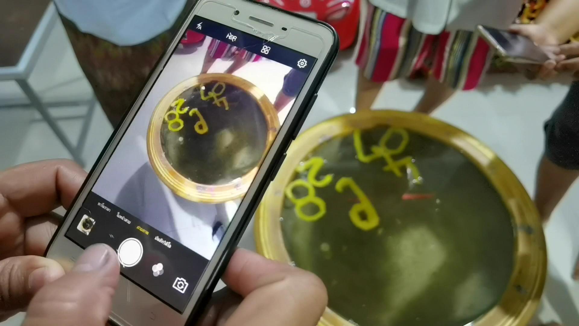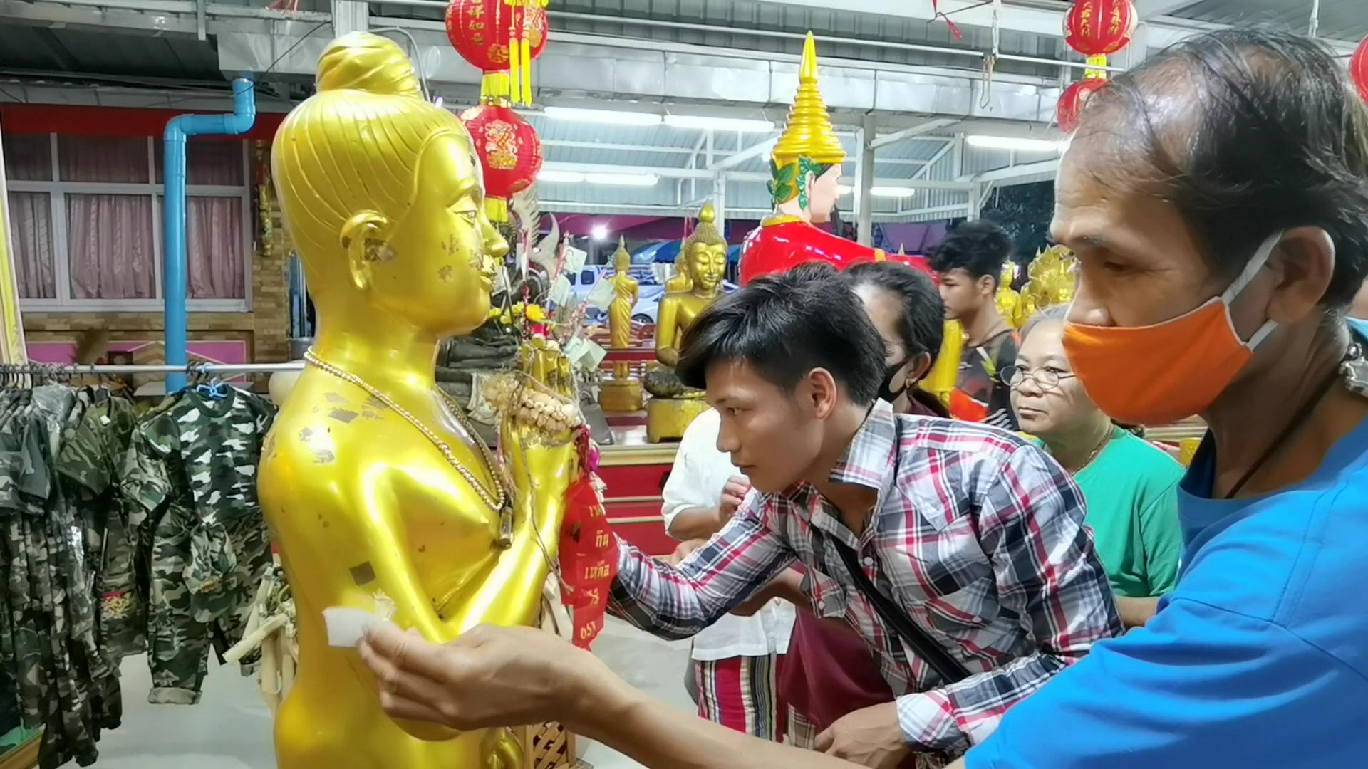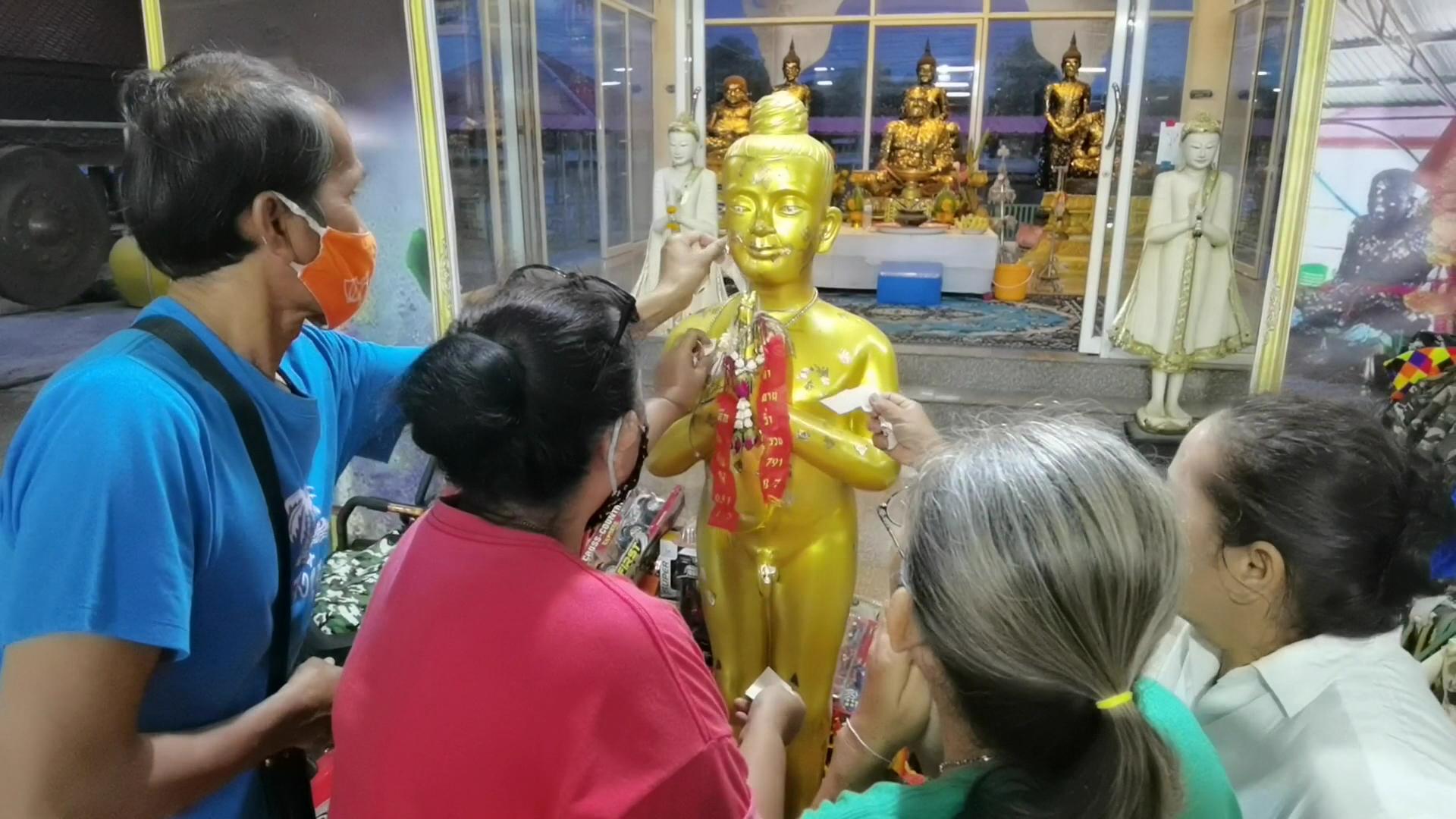 นายภวัต กล่าวว่า วันนี้ตนและเพื่อนๆ มาช่วยทำบุญที่วัด และ นำอาหารมาเลี้ยงเด็กๆ และเดินทางมาทำกันอยู่ตลอดเวลา ซึ่งจะมากราบไหว้สิ่งศักดิ์สิทธิ์ภายศาลา อาตี๋สำเภาทอง และ ไอ้ไข่เด็กวัดเจดีย์ เพื่อทำการแก้บนกับอาตี๋สำเภาทอง เพราะในงวดที่ผ่านมา วันที่ 1 มิ.ย. 63 ตนกับเพื่อนๆ ได้ถูกรางวัลเลขท้าย 3 ตัว เลข 567 และ เลขท้าย 2 ตัว รับเงินไปจำนวนหนึ่ง ตนจึงได้พากันมาขอพรและส่องดูเลขเด็ดจากอ่างน้ำมนต์ อาตี๋สำเภาทอง และ ไอ้ไข่เด็กวัดเจดีย์ เพื่อนำไปเสี่ยงโชคในงวดที่ 16 มิ.ย. 63 นี้อีก และที่ผ่านมาก็ถูกหลายๆ งวดติด เชื่อว่าเป็นเพราะการทำความดี ช่วยเหลือผู้ที่ตกทุกข์ได้ยากโดยไม่แสวงหาผลตอบแทน อาตี๋สำเภาทองจึงให้โชคลาภแก่ตนและเพื่อนๆที่มาด้วยกัน และจากที่เข้าส่องดูตัวเลขในอ่างน้ำมนต์ เห็นเลข เลข 6 ตัว คือ 0, 2, 4, 7, 8, 9 หรือ 6 ลอยเด่นชัดมาก ซึ่งตนอยากให้ดูเลขในอ่างน้ำมนต์กันเอง มันลอยจับเป็นคู่ เป็นชุดกันชัดเจน