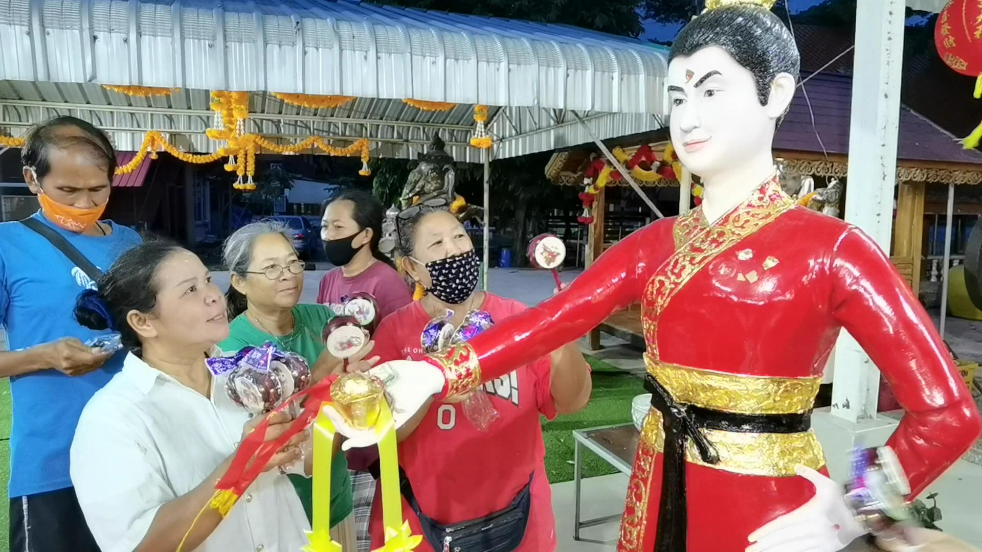 โดยนายภวัต ประมงค์กิจ นักธุรกิจชาวอำเภอปราณบุรี จังหวัดประจวบคีรีขันธ์ หรือ ซินแส สำเภาทอง หมอดูชื่อดัง ได้นำสิ่งของมากราบไหว้สิ่งศักดิ์สิทธิ์ เช่น พระพิฆเนศ เทพทันใจ อาตี๋สำเภาทอง และ ไอ้ไข่เด็กวัดเจดีย์ พร้อมนำประทัด น้ำแดง ป๋องแป๋ง ไก่คู่ ของเล่นเด็ก ดอกไม้ ธูป เทียน มากราบไหว้เพื่อแก้บนและขอเลขเด็ดตามที่เคยขอมาตลอด พร้อมทั้งร่วมทำบุญบูรณปฏิสังขรณ์วัด เพื่อความเป็นสิริมงคลกับตนเองกับคนสมาชิกและคนใกล้ชิด เพื่อจะได้มีงานทำ หน้าที่การงานไม่ติดขัด ค้าขายคล่องและมีโชคมีลาภ จากอาตี๋สำเภาทอง และ ไอ้ไข่เด็กวัดเจดีย์ โดยมีชาวบ้าน และ นักแสดงโชคจากจังหวัดต่างๆ ที่เดินทางมาขอโชคลาภกันคึกคัก