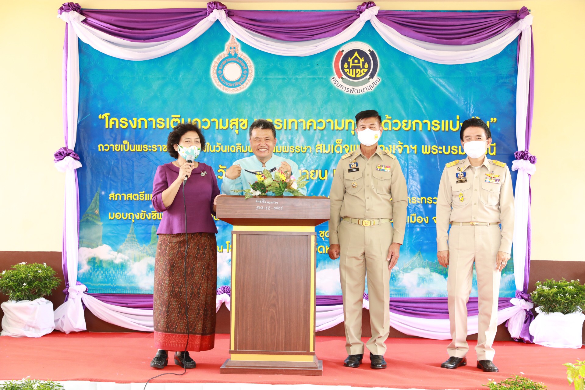 นายสุทธิพงษ์ จุลเจริญ อธิบดีกรมการพัฒนาชุมชน กล่าวว่า ในสภาวะของวิกฤตการณ์โควิด-19 ที่ส่งผลกระทบกับการดำเนินชีวิตของผู้คนจำนวนมาก ถือเป็นวิกฤติที่ยากเกินกว่าหน่วยงานใดหน่วยงานหนึ่งจะแก้ไขได้อย่างเบ็ดเสร็จและทันท่วงที กรมการพัฒนาชุมชนจึงได้ร่วมมือกับสภาสตรีแห่งชาติฯ จัดทำโครงการ “เติมความสุข บรรเทาความทุกข์ ด้วยการแบ่งปัน” เพื่อเป็นส่วนหนึ่งของการมีส่วนร่วม ในการผ่อนคลายความเดือดร้อนดังกล่าว ให้แก่ผู้ที่ได้รับผลกระทบ ผู้เดือดร้อน ผู้ยากไร้ ที่ต้องได้รับการเยียวยาจากสถานการณ์การแพร่ระบาดของโรคติดเชื้อไวรัสโควิด-19