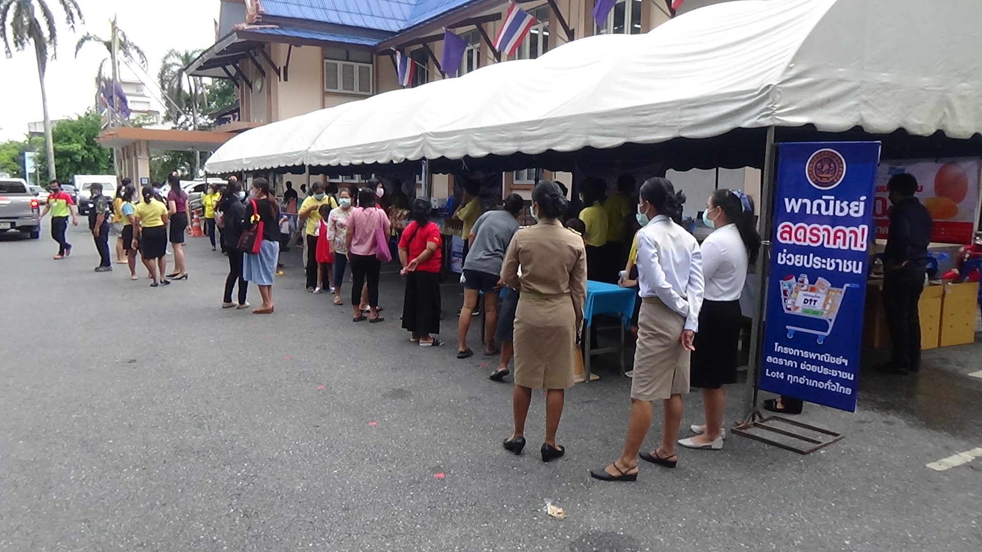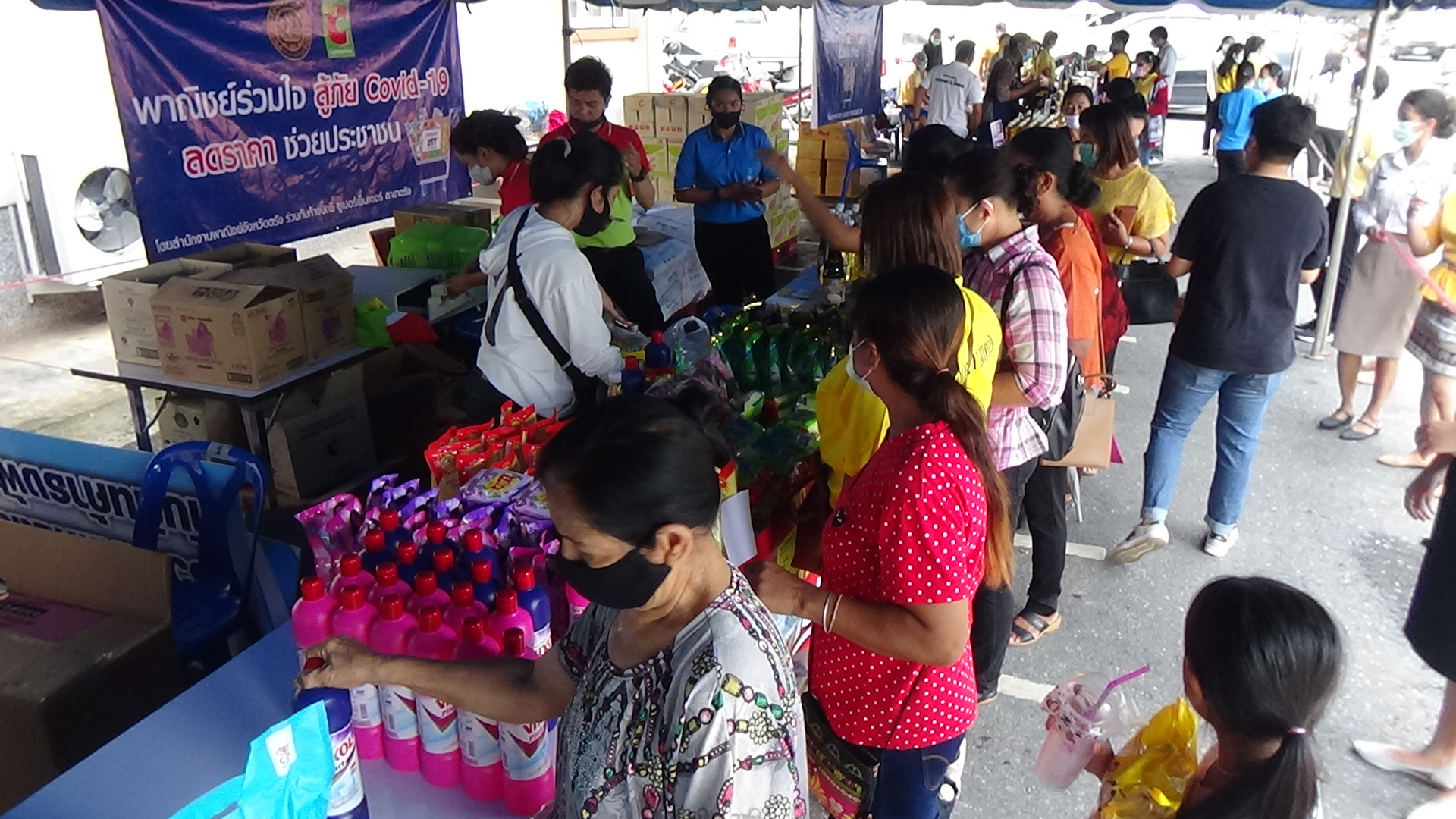 นางรวีพรรณ ช้างเย็นฉ่ำ พาณิชย์จังหวัดตรัง กล่าวว่า การนำสินค้าราคาถูกกว่าท้องตลาดมาจำหน่ายให้กับประชาชนนั้นเป็นไปตามโครงการพาณิชย์ลดราคาช่วยเหลือประชาชน ตามนโยบายของกระทรวงพาณิชย์ ที่ต้องการช่วยเหลือประชาชนและลดรายจ่ายให้กับประชาชนที่ได้รับผลกระทบจากการแพร่ระบาดของเชื้อไวรัสโคโรนา 2019(โควิด -19) โดยจะจัดจำหน่ายสินค้าราคาถูกให้กับประชาชนใน 10 อำเภอของจังหวัดตรัง ที่ผ่านมาจัดไปแล้ว 3 อำเภอ และอำเภอเมืองตรัง เป็นอำเภอที่ 4 ซึ่งจำหน่ายที่บริเวณหน้าที่ว่าการอำเภอ อำเภอละ 2 วัน เพื่อช่วยเหลือประชาชน และให้ประชาชนได้ซื้อสินค้าอุปโภค บริโภค ราคาถูกกว่าท้องตลาด ที่ผ่านมาประชาชนให้ความสนใจมาซื้อจำนวนมาก โดยได้รับความร่วมมือจากผู้ประกอบการค้าส่งในจังหวัดตรัง นำสินค้ามาจำหน่ายให้กับประชาชน