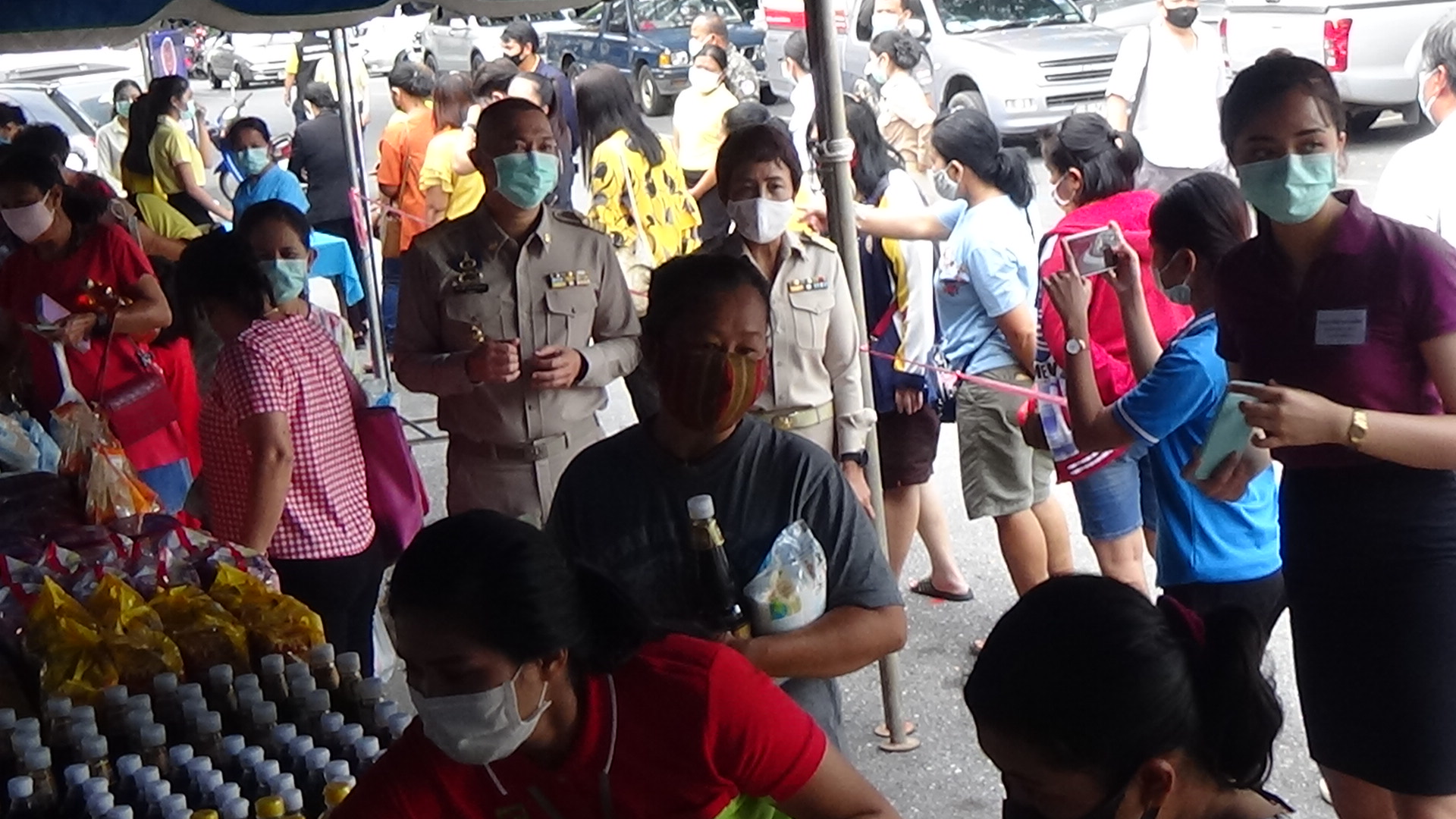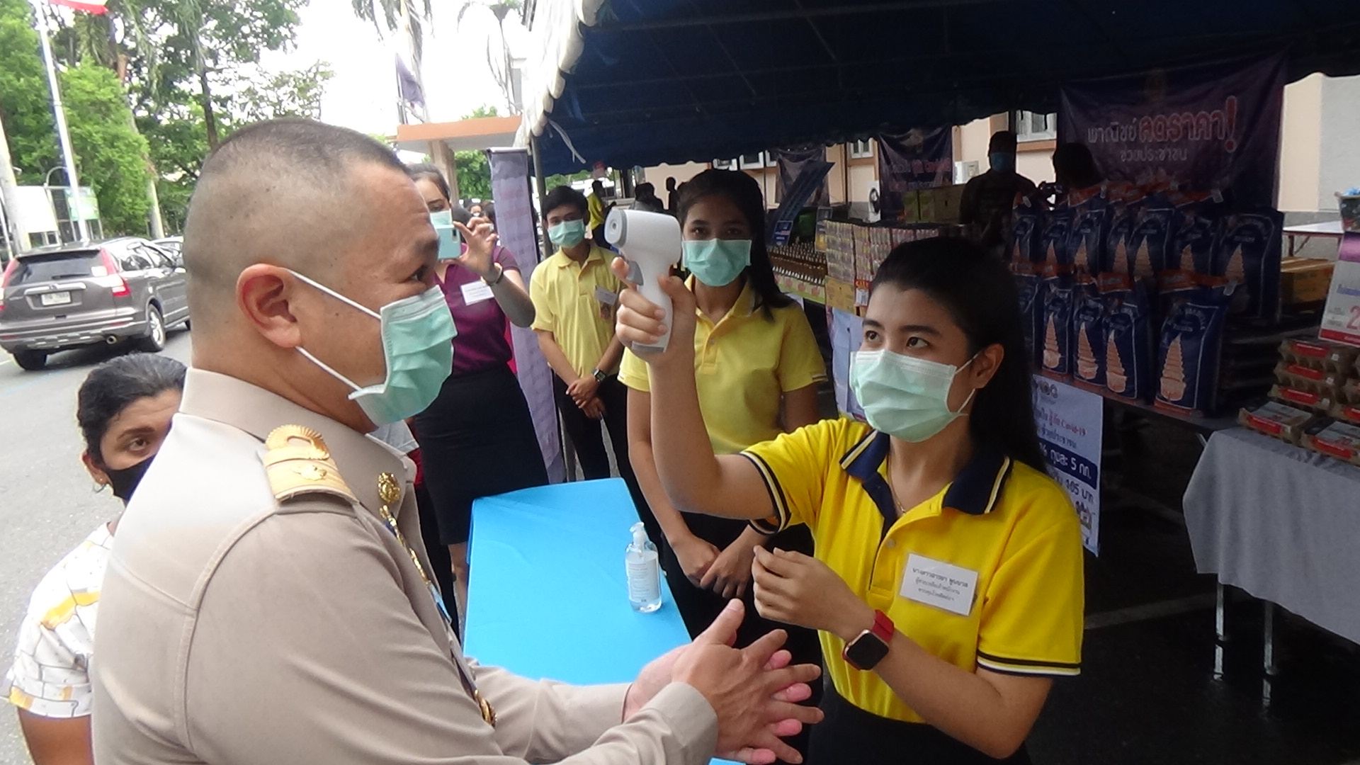 ที่บริเวณหน้าที่ว่าการอำเภอเมืองตรัง จังหวัดตรัง นายสราวุฒิ ธนาเจริญสกุล นายอำเภอเมืองตรัง และ นางรวีพรรณ ช้างเย็นฉ่ำ พาณิชย์จังหวัดตรัง ร่วมกับผู้ประกอบการค้าส่งในจังหวัดตรัง นำสินค้าอุปโภคและบริโภคมาจำหน่ายให้กับประชาชน เช่น มาม่า ข้าวสาร น้ำปลา น้ำมันพืช นำตาล ปลากระป๋อง ไข่ไก่ และอื่นๆ โดยเฉพาะไข่ไก่ ได้รับความสนใจจากประชาชนเป็นอย่างมาก เนื่องจากขายในราคา 10 ฟอง 20 บาท ซึ่งกำหนดให้คนละ 20 ฟอง น้ำมันพืช คนละไม่เกิน 3 ขวด น้ำตาลไม่เกิน 3 กิโลกรัมต่อคน ทั้งนี้การนำสินค้ามาจำหน่ายมีราคาถูกกว่าท้องตลาด 5-10 บาท ได้รับความสนใจจากประชาชนเป็นอย่างมาก โดยเจ้าหน้าที่มีการจัดระห่างทางสังคม การตรวจวัดอุณหภูมิ และ เจลล้างมือก่อนเข้าไปซื้อสินค้า